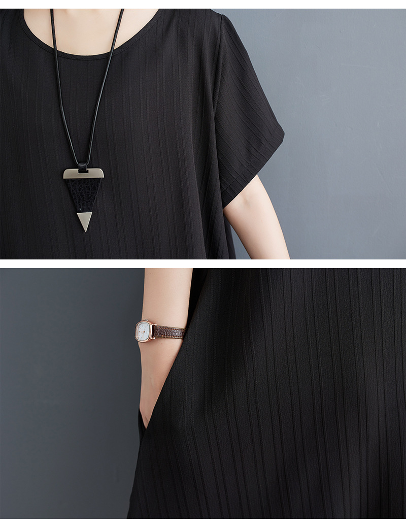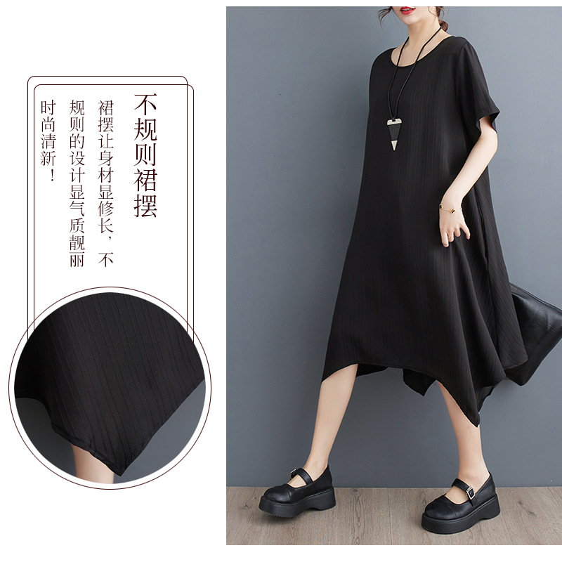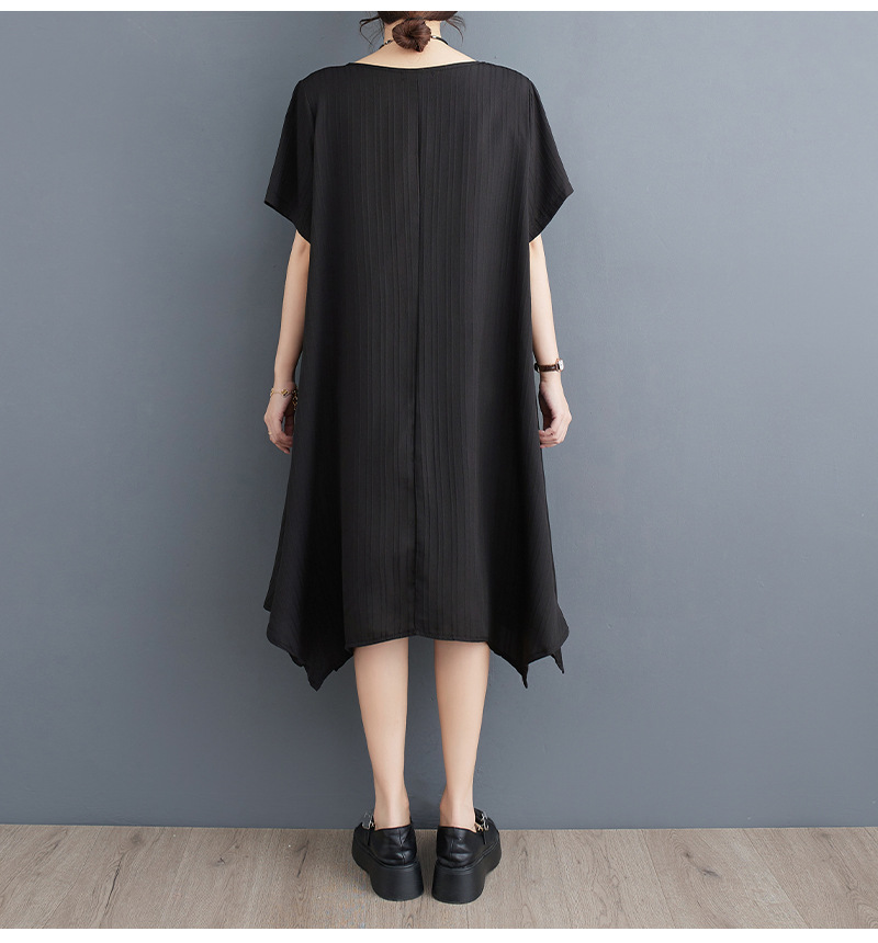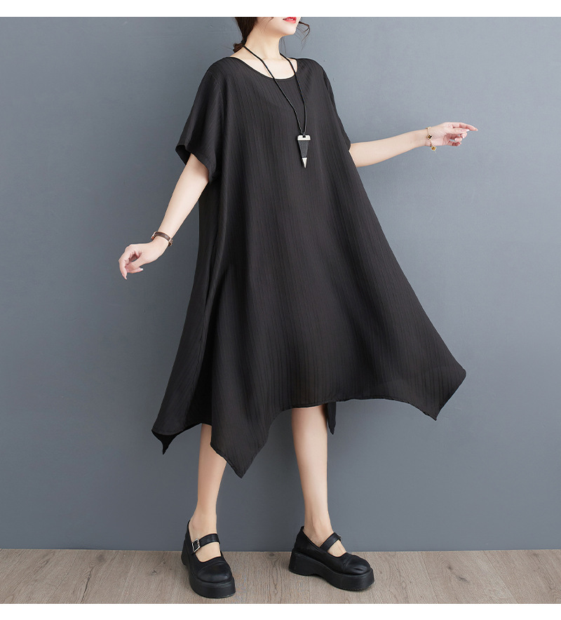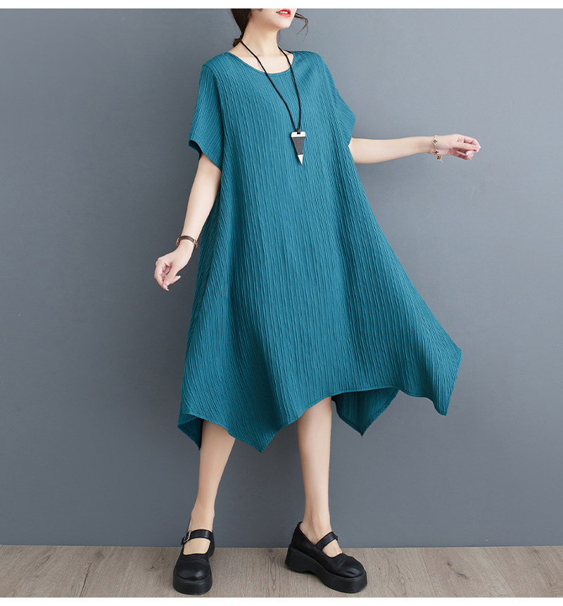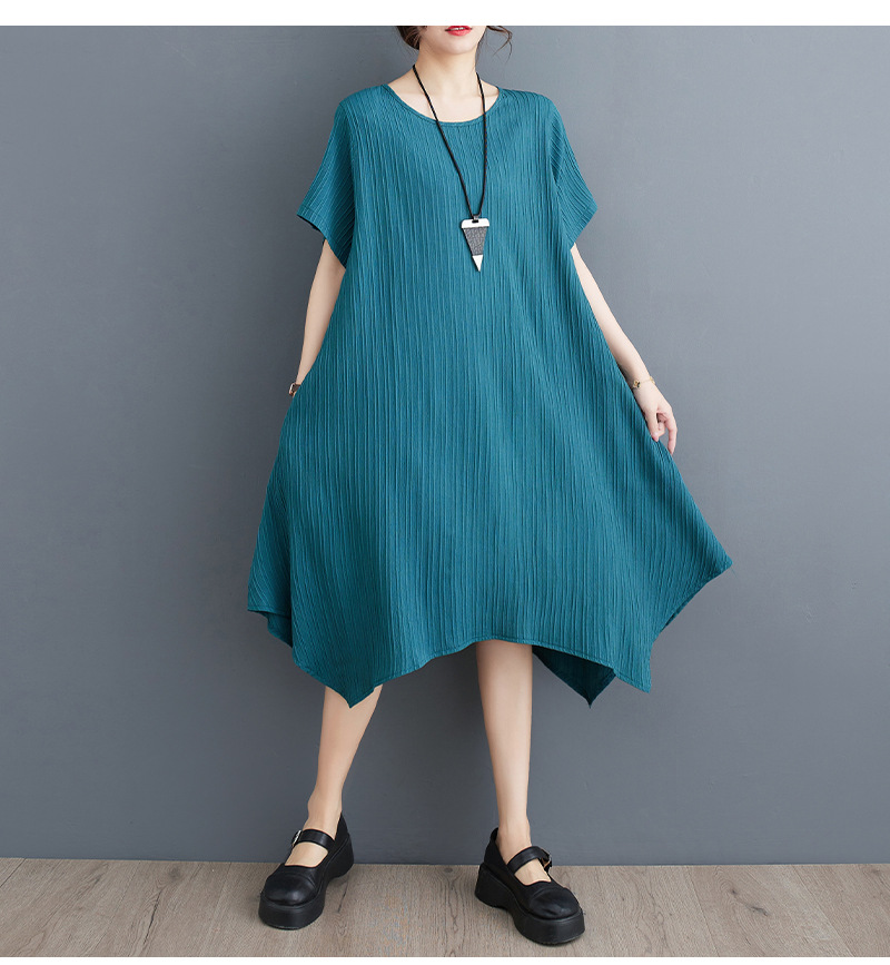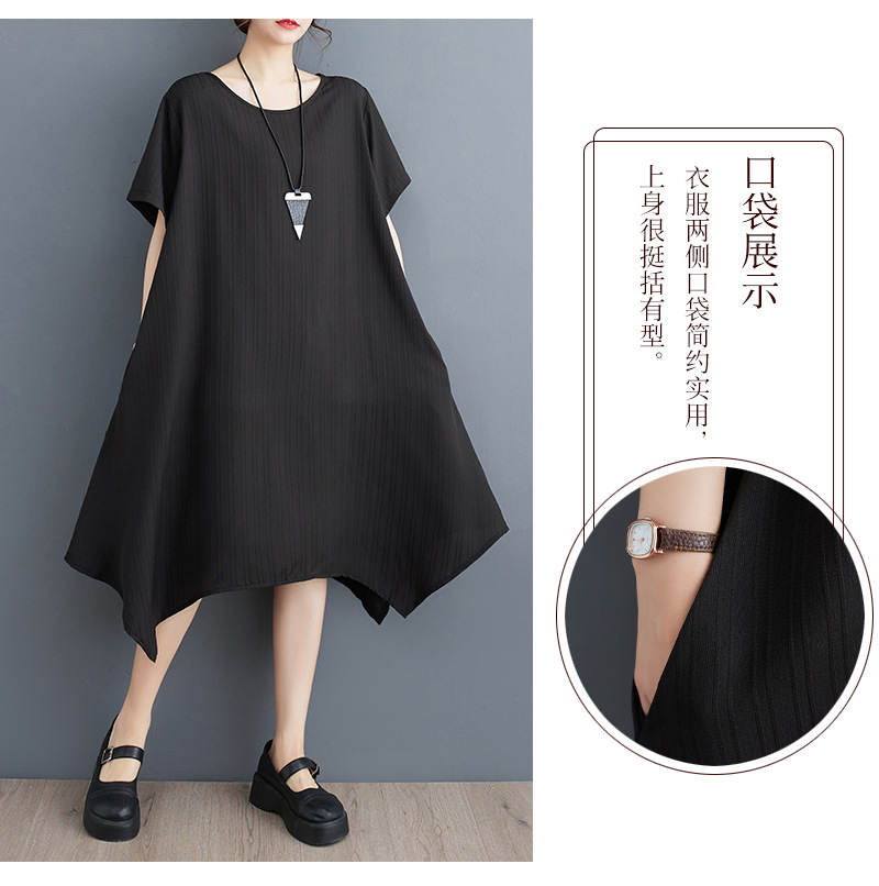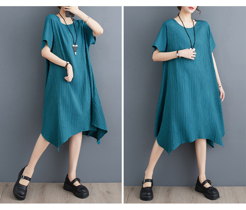 标题:夏の新型の純色の丸首は頭をかぶせて不規則です。
