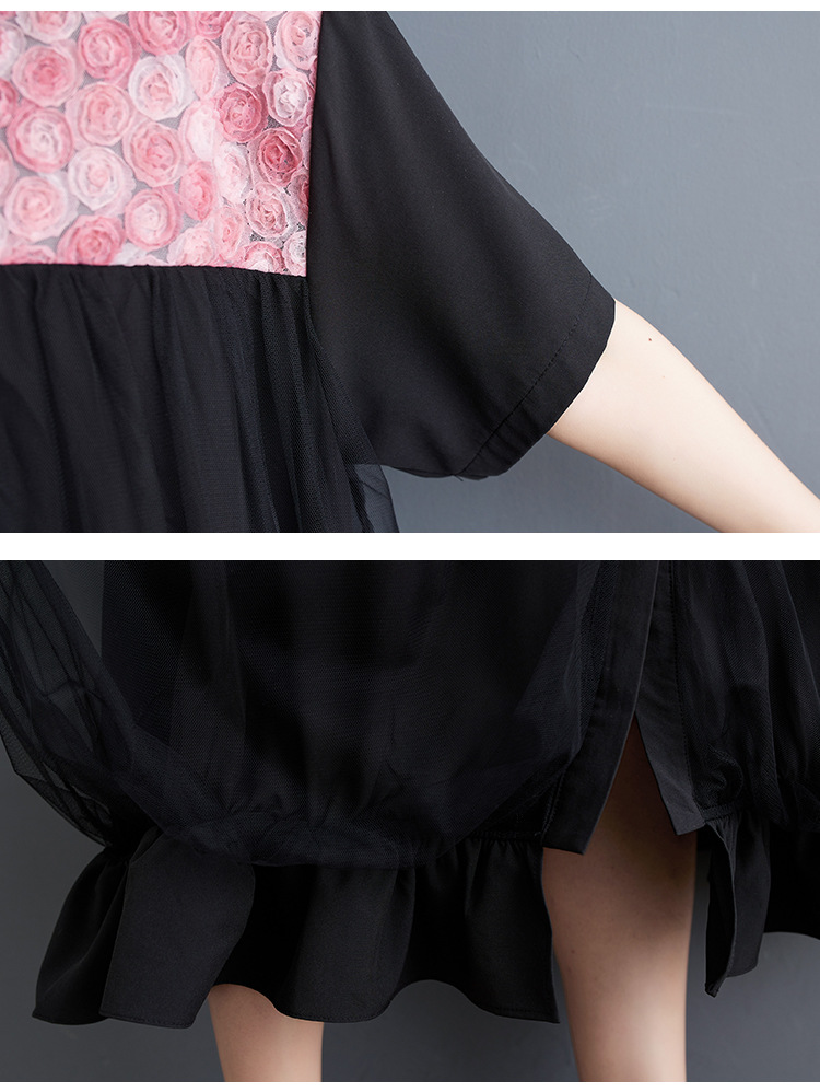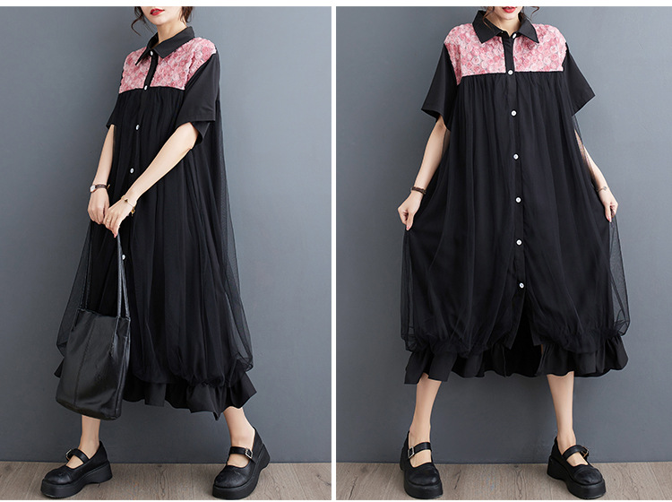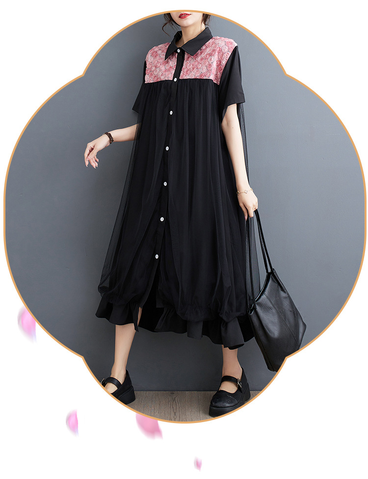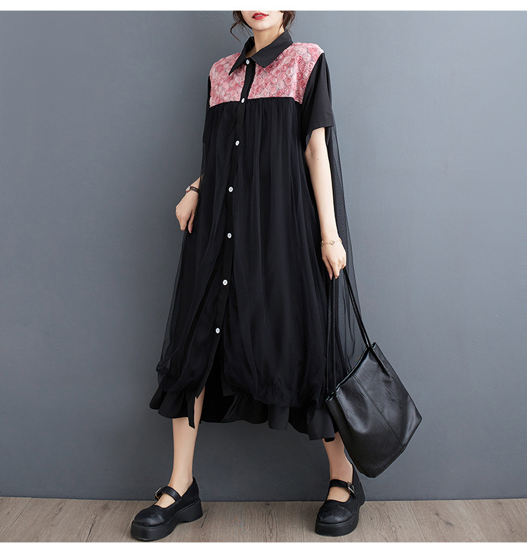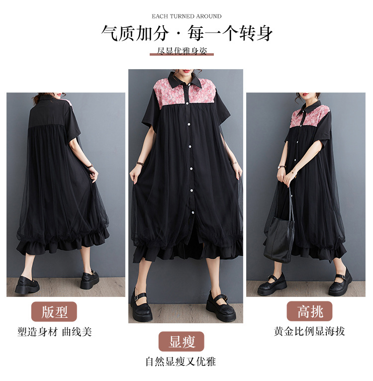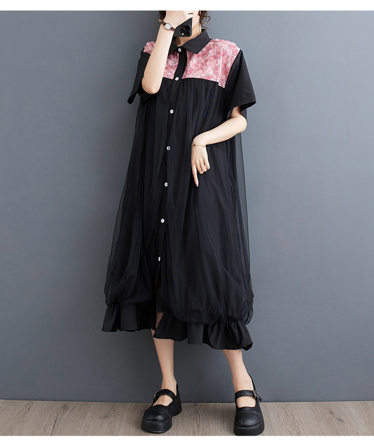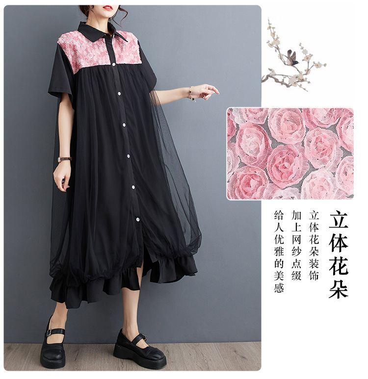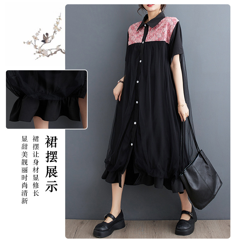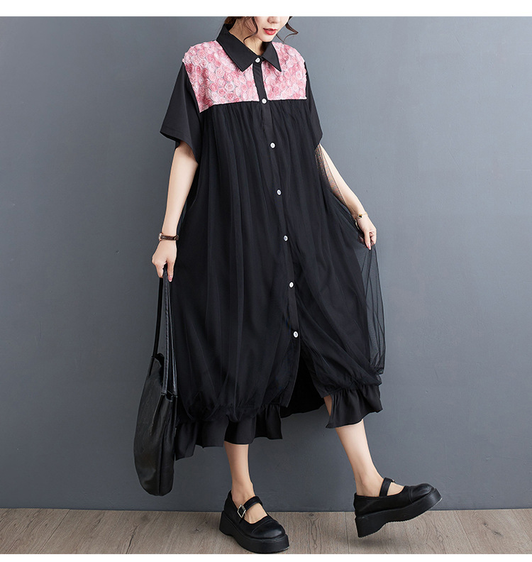 标题:夏の新作ファッションシングルブレスト蕾紗ゆったりシャツスカート小さな花気質減齢ミドルスカート