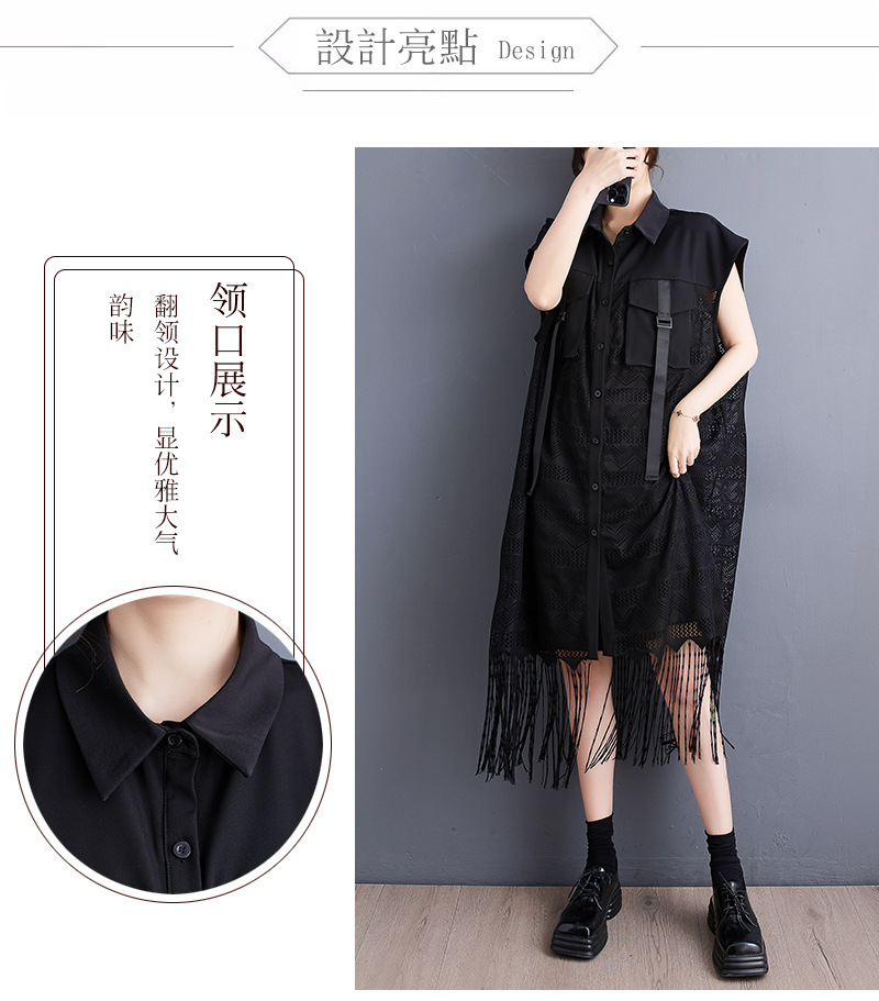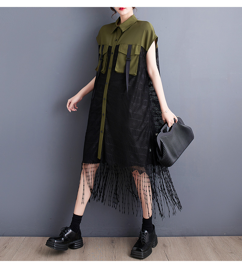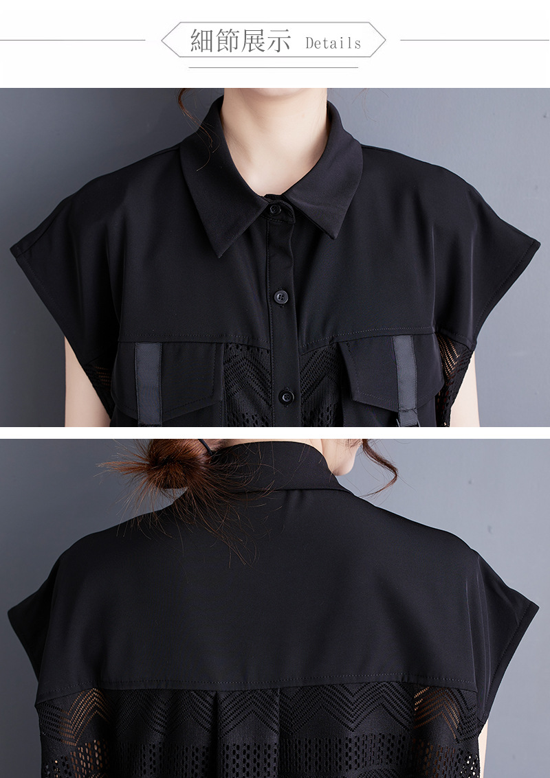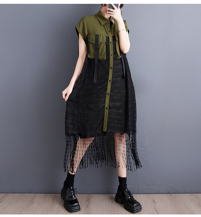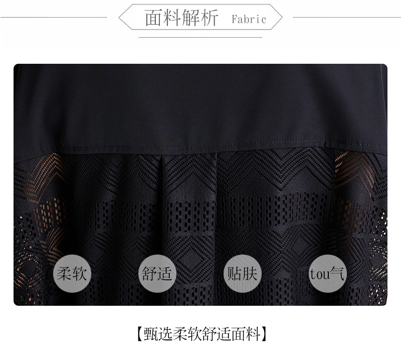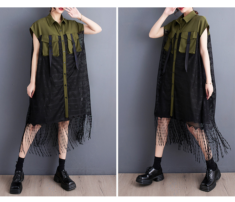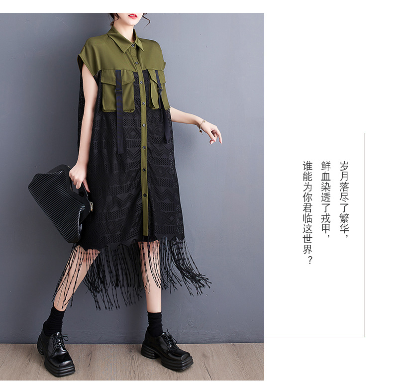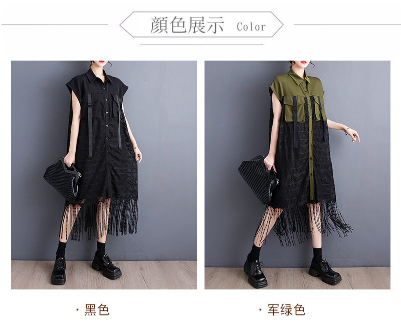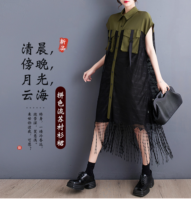 标题:夏服の新しい港風ワンピースファッション個性的なベスト衝突色のキルティングメッシュレースのシャツスカート