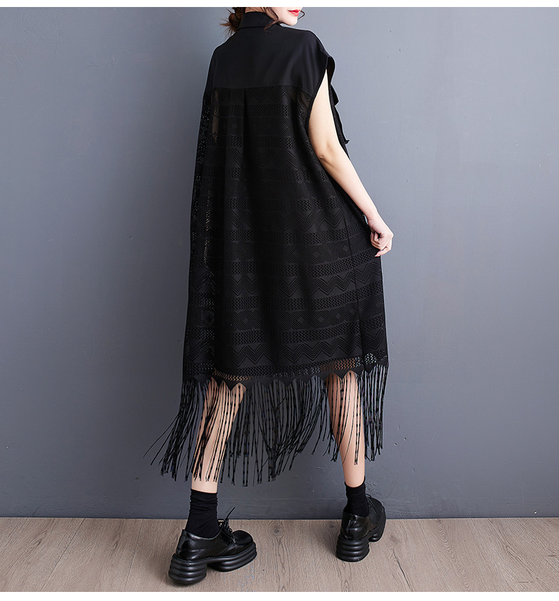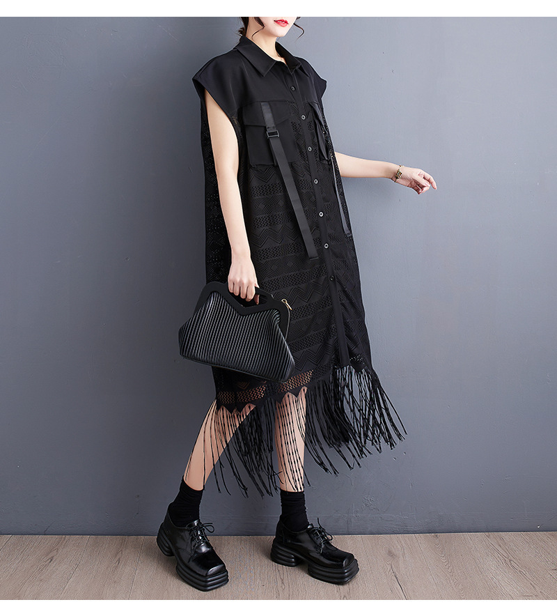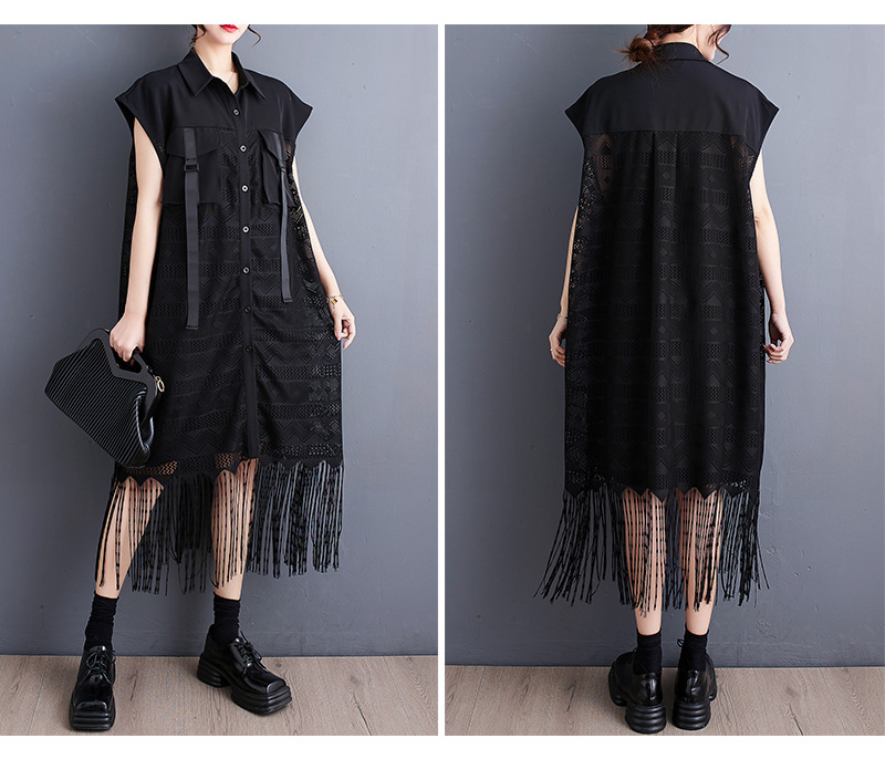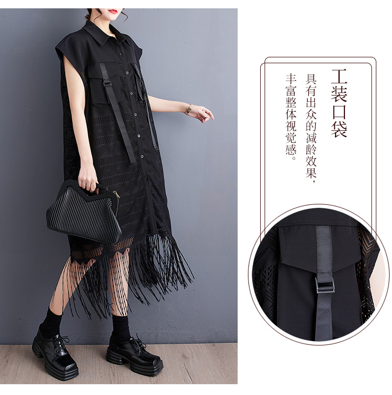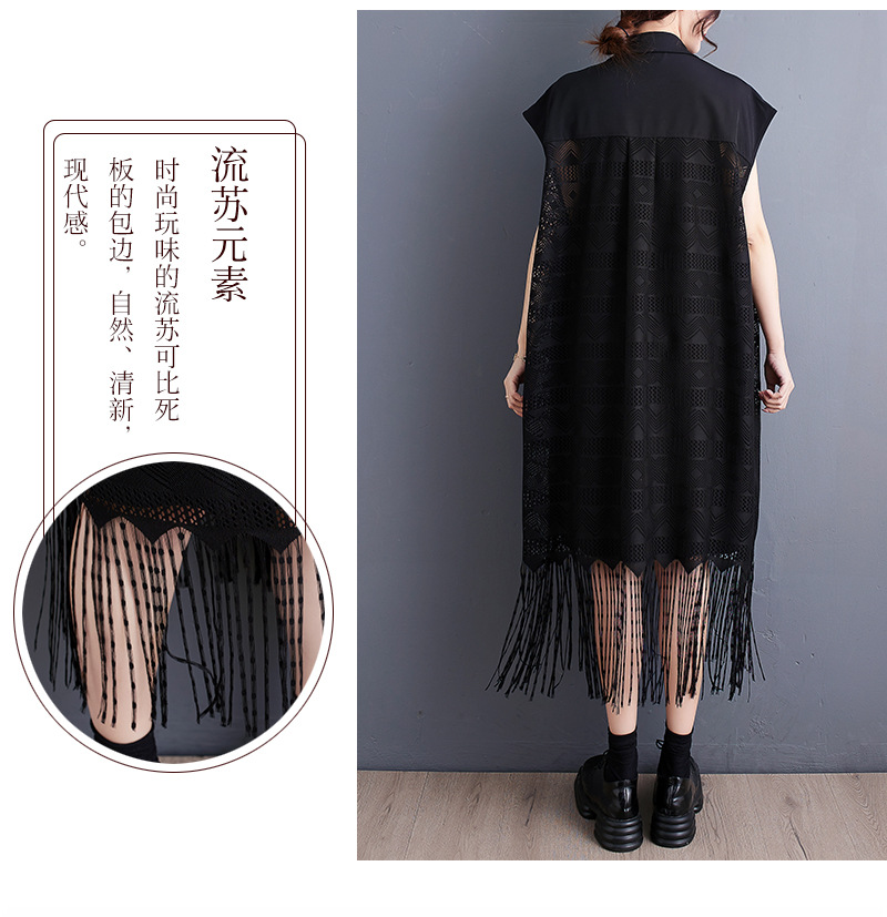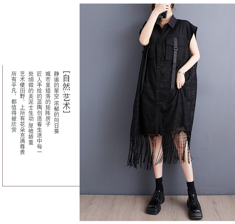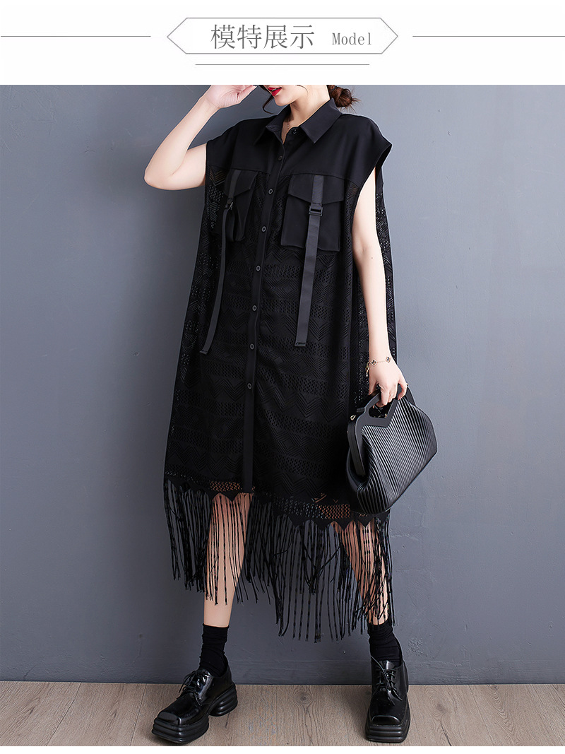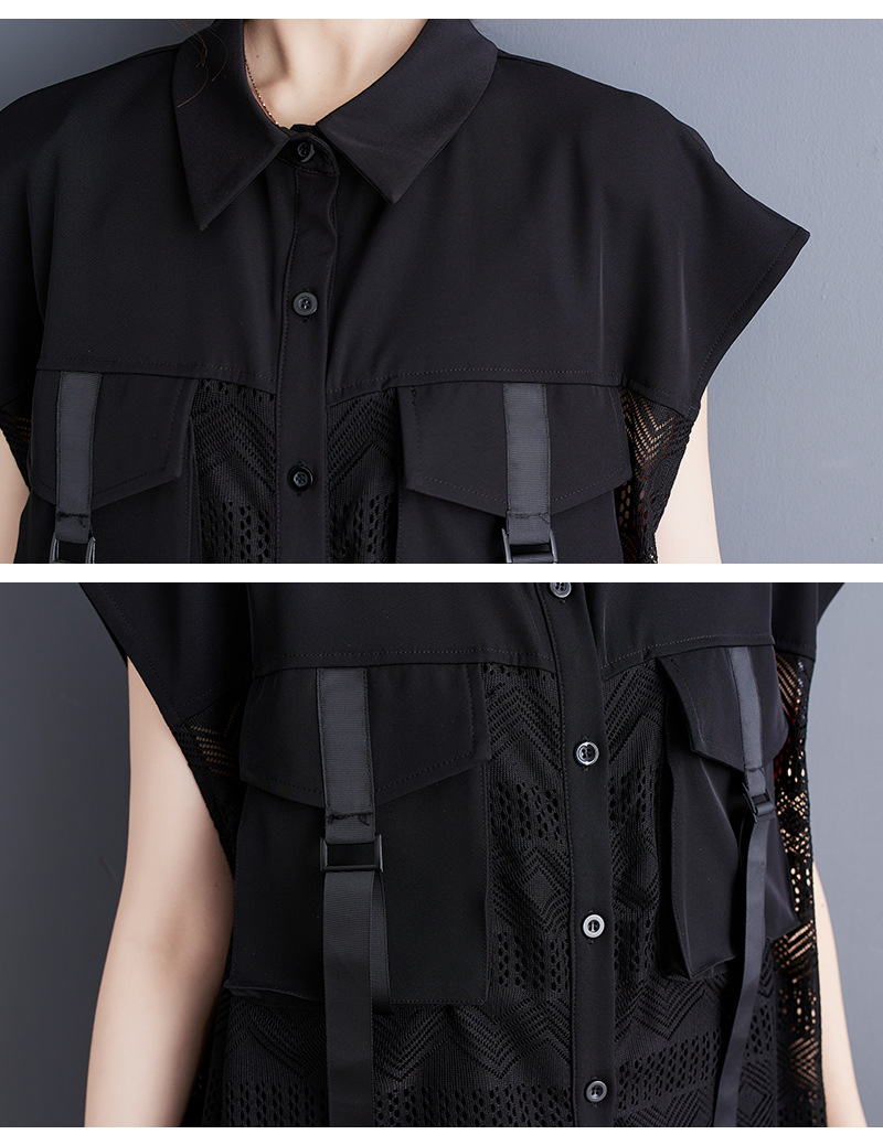 标题:夏服の新しい港風ワンピースファッション個性的なベスト衝突色のキルティングメッシュレースのシャツスカート