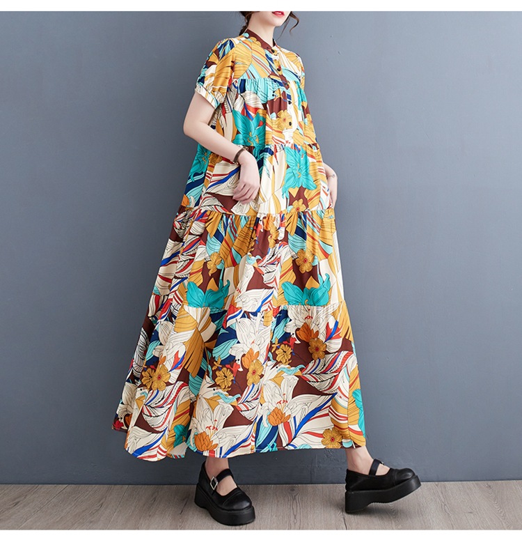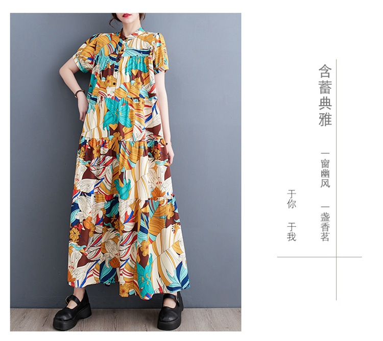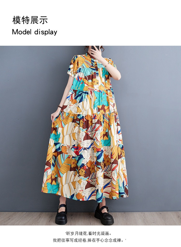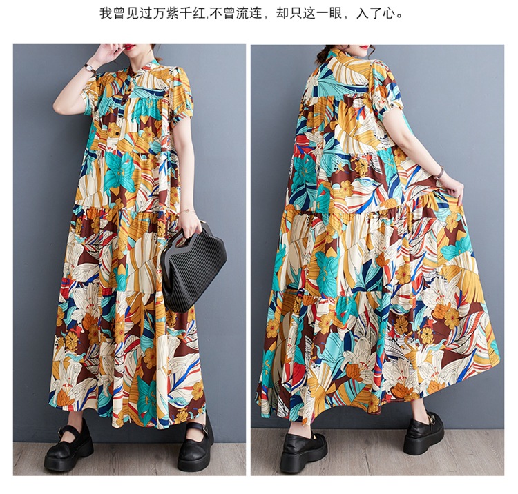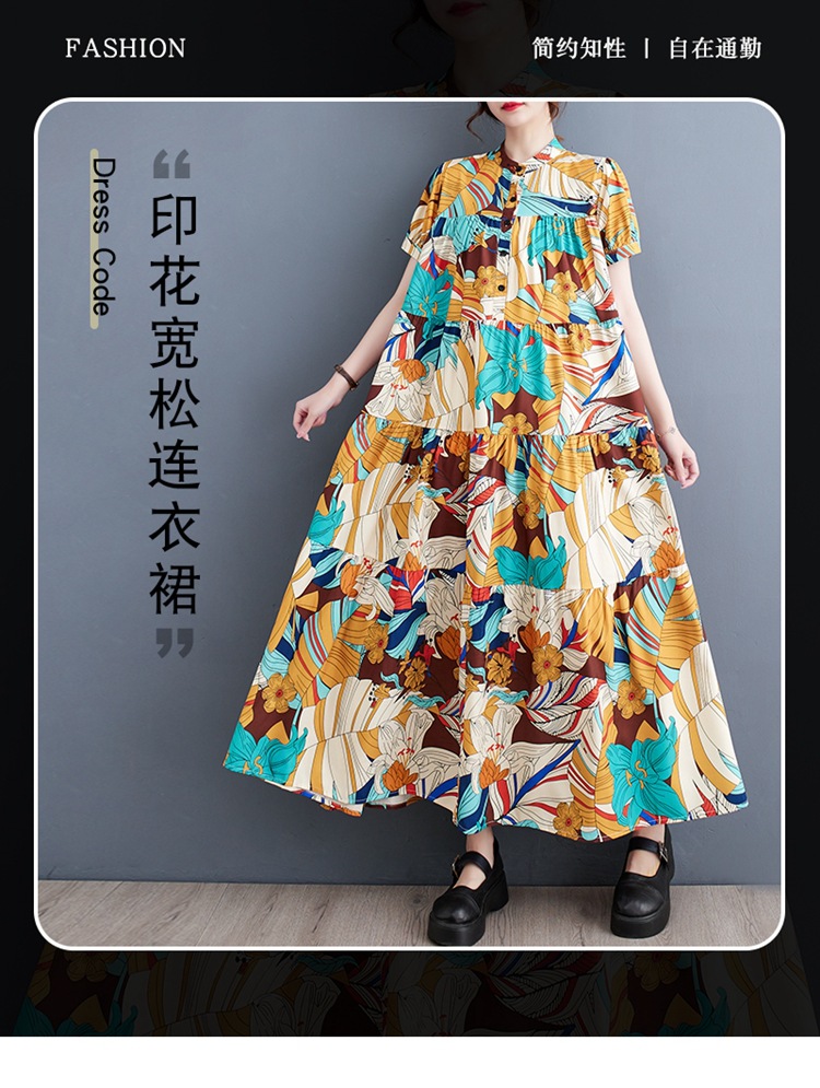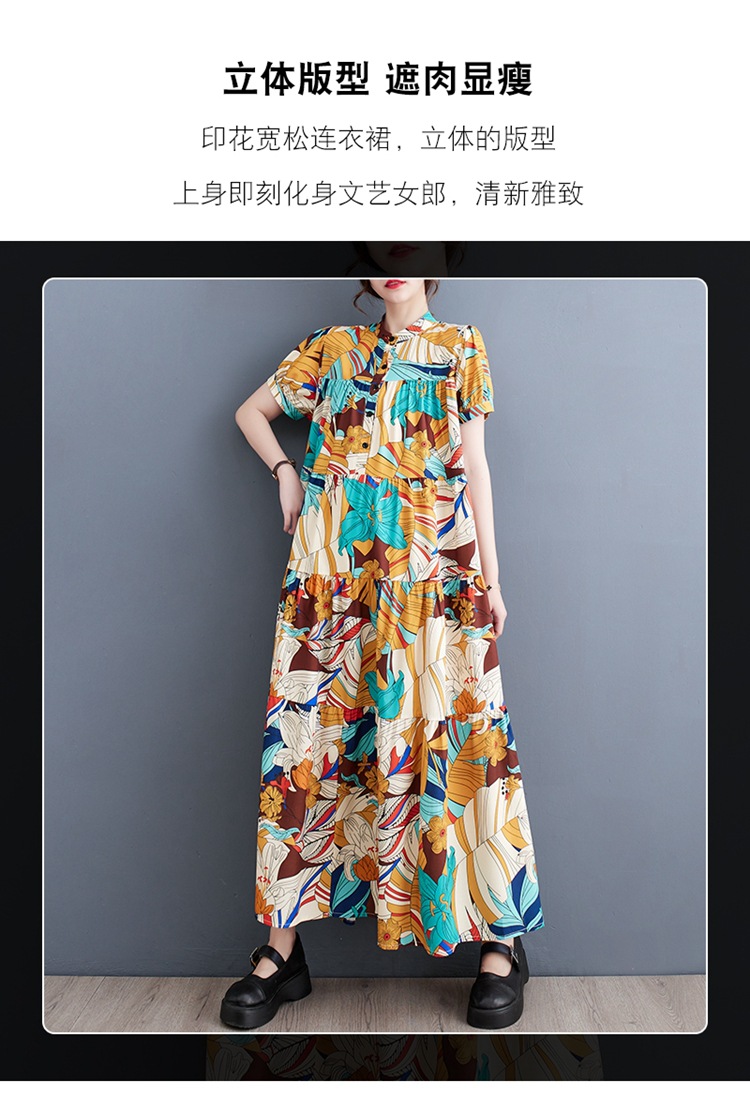 标题:韓国版夏の新サイズゆったり着やせファッション半袖プリントミディアムワンピース