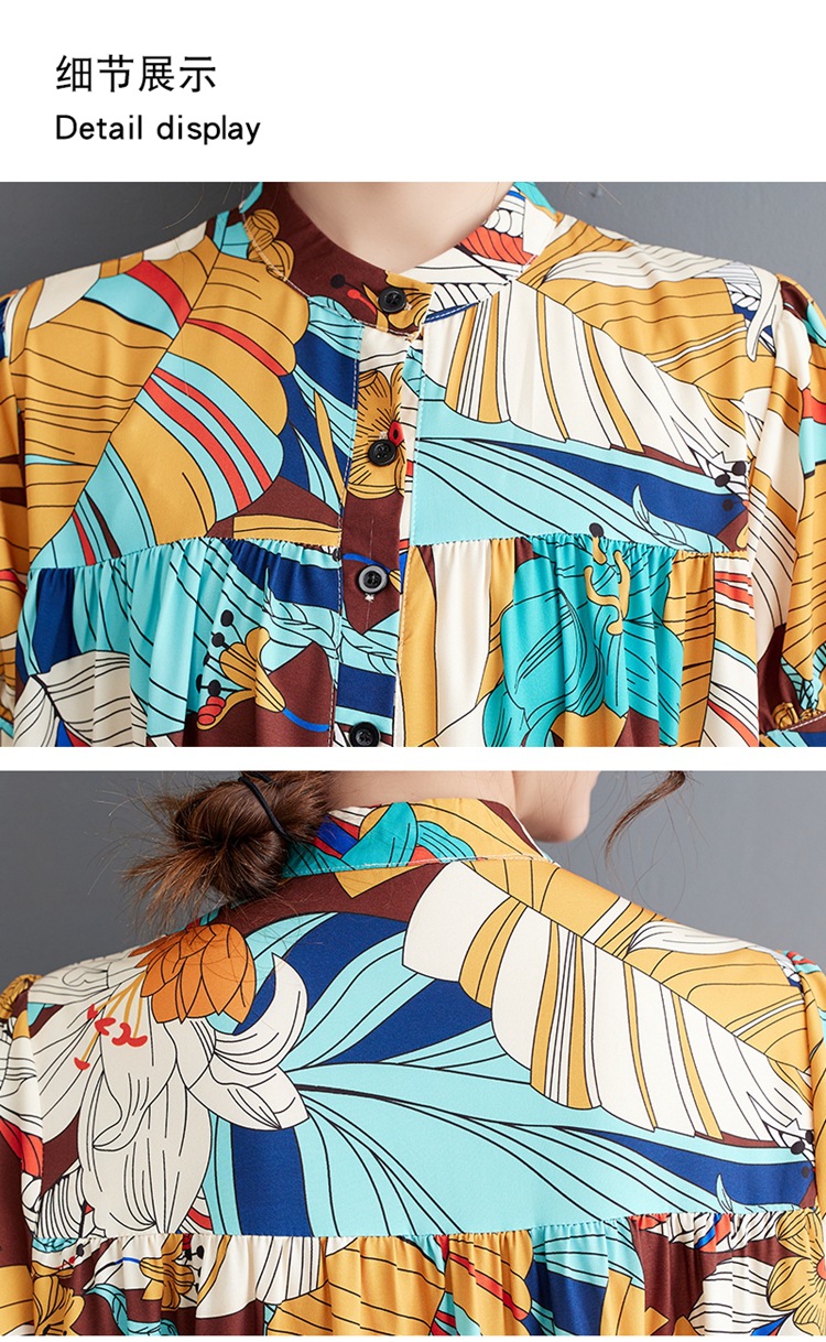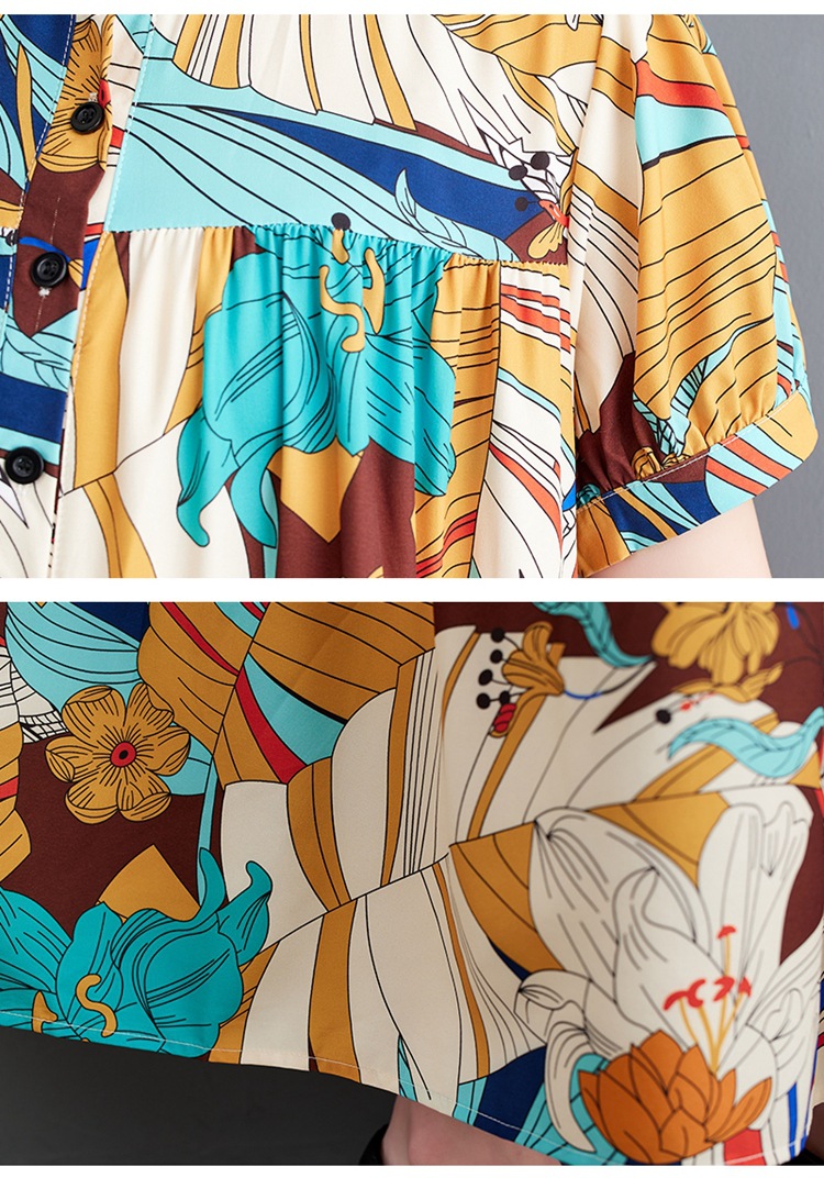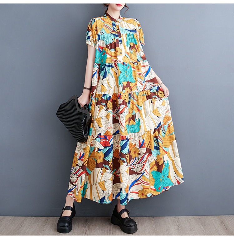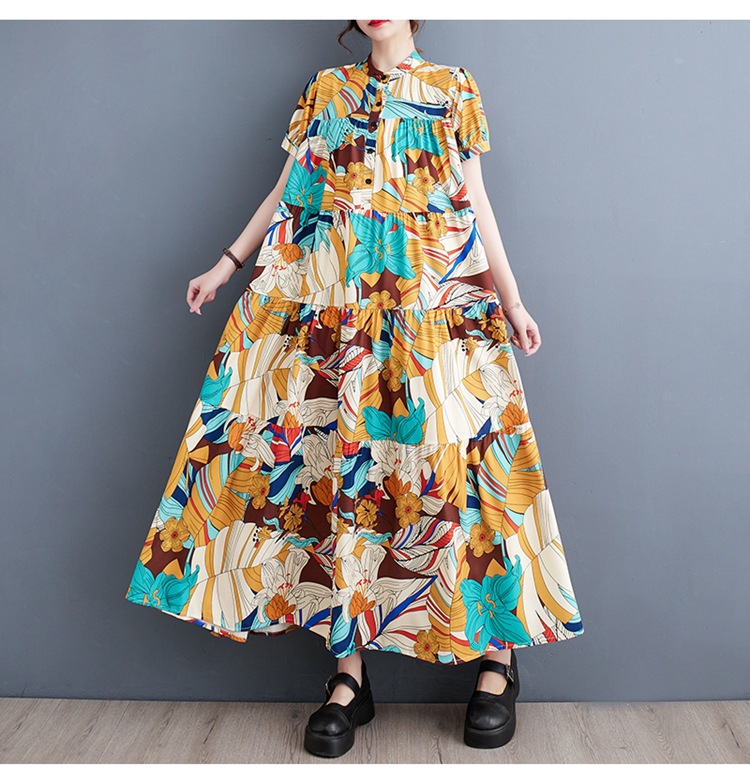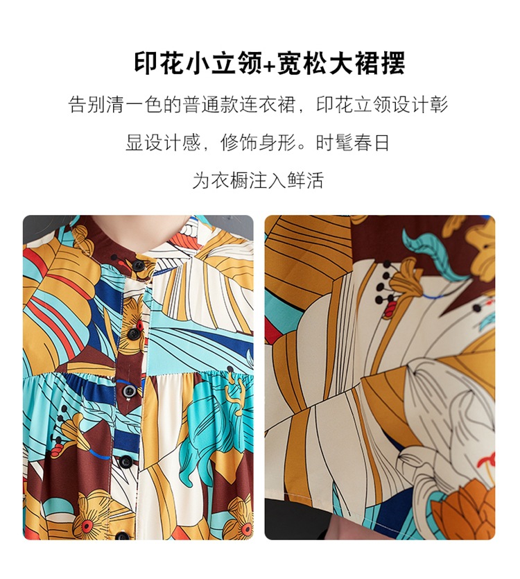 标题:韓国版夏の新サイズゆったり着やせファッション半袖プリントミディアムワンピース