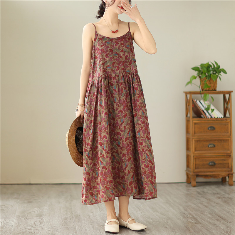 标题:夏の新作文芸甘A字スカート淑女ゆったり型胸拭き型ヘッダーノースリーブキャミソールワンピース女