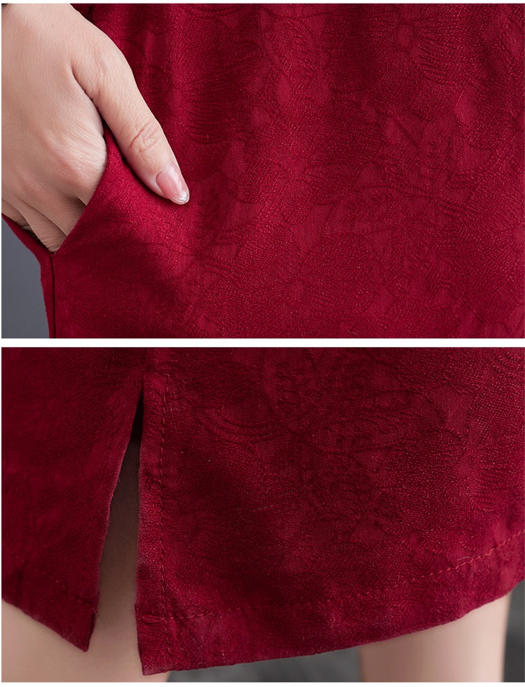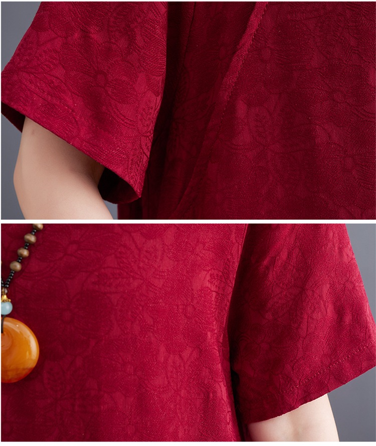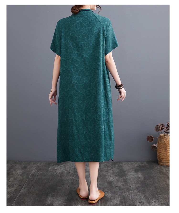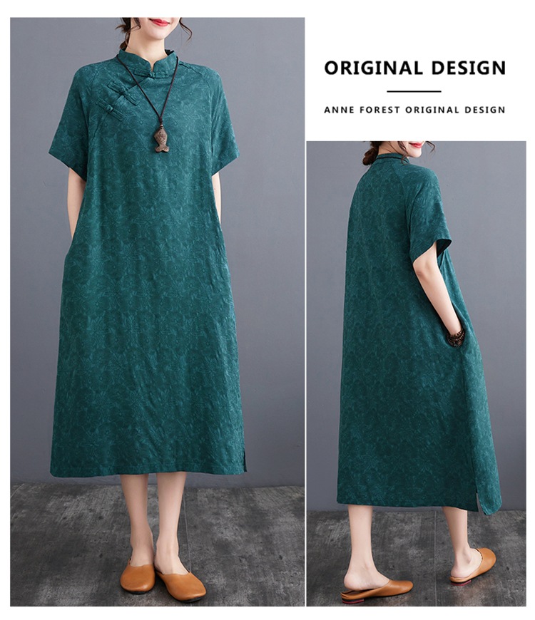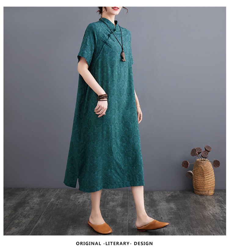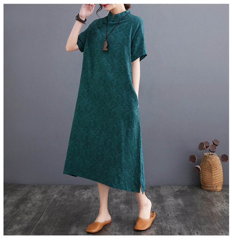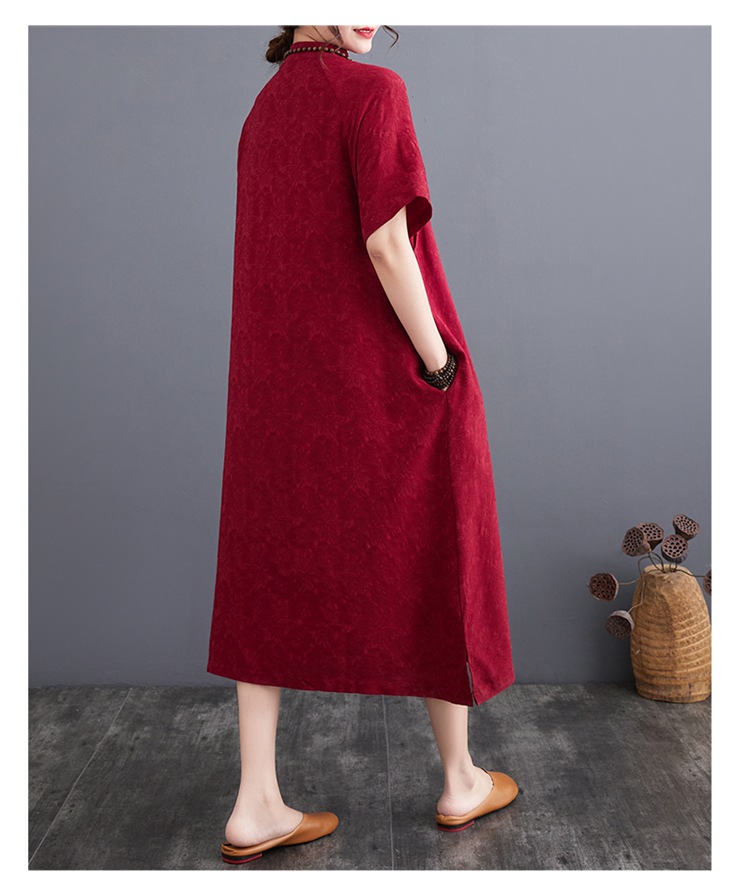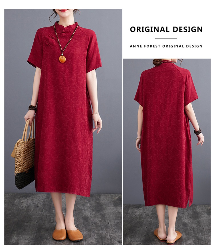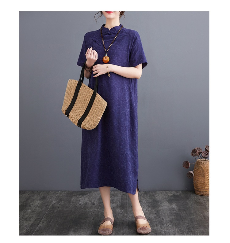 标题:婦人服ファッションビッグサイズゆったりジャカード半袖ワンピースレトロ禅リネンガウン