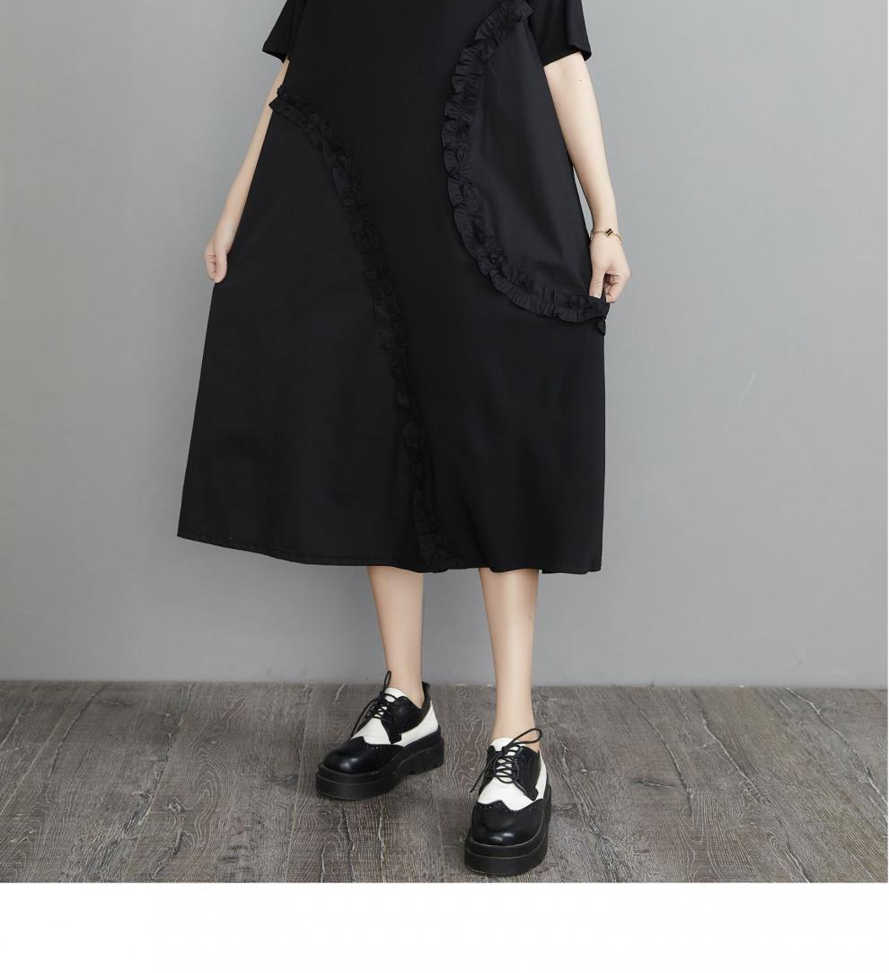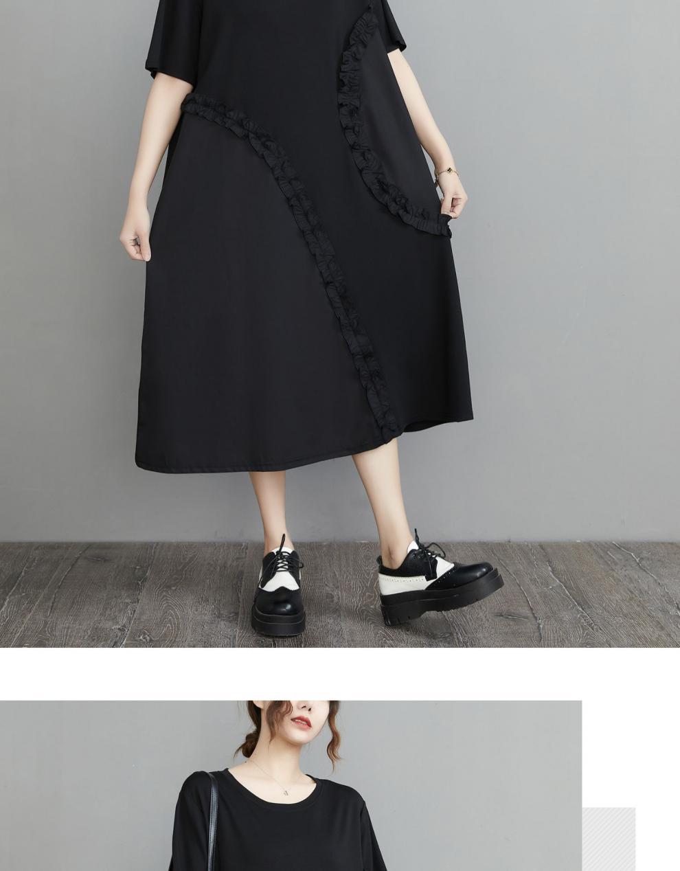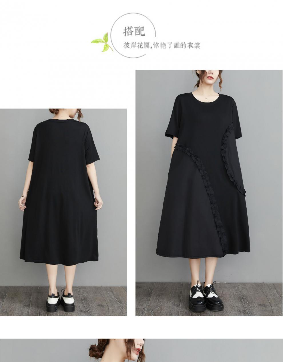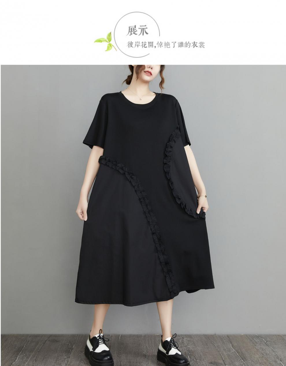 标题:婦人服ファッション夏服新型レトロ風黒パッチワークキクラゲレースワンピース通勤ゆったり着やせa字スカート