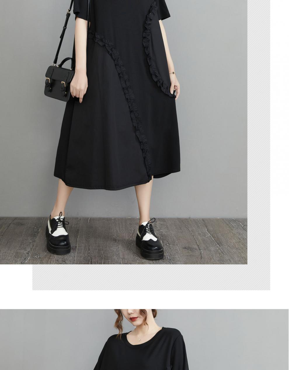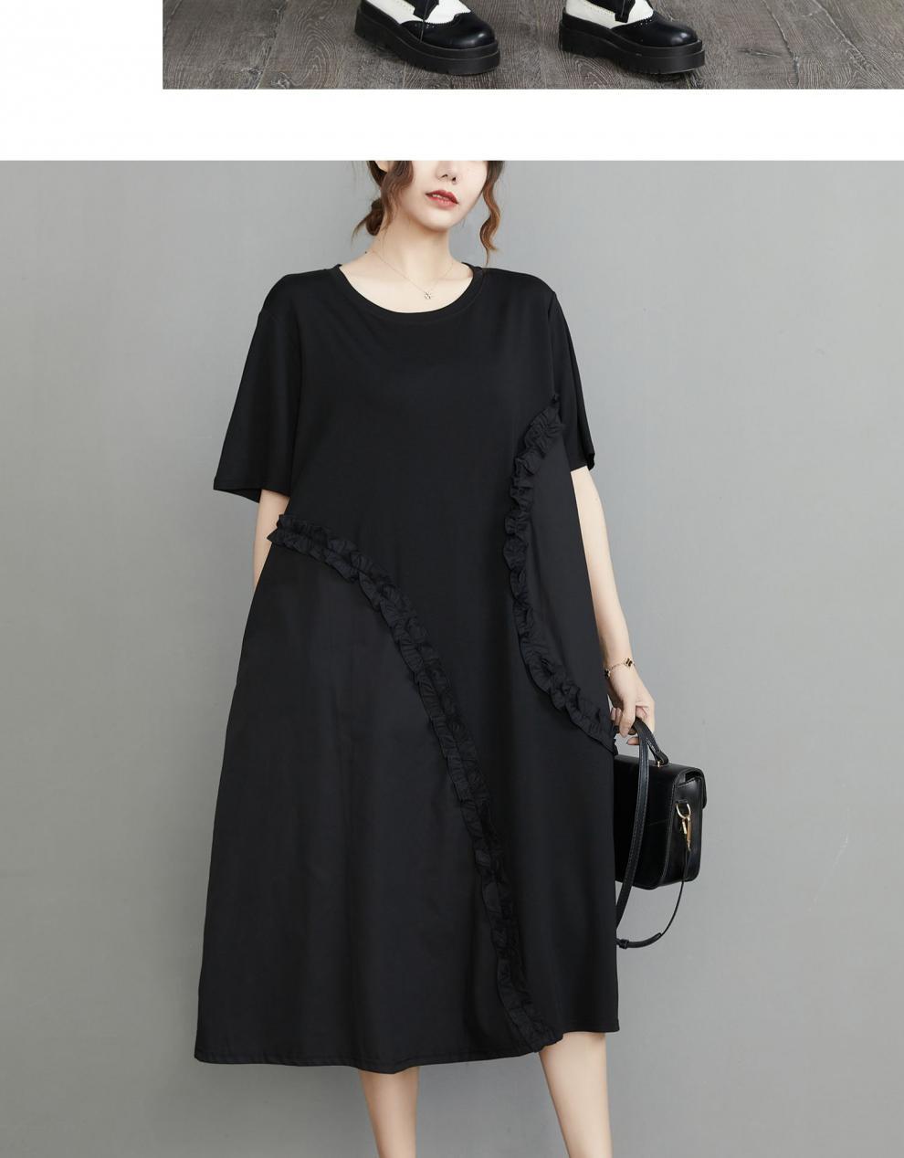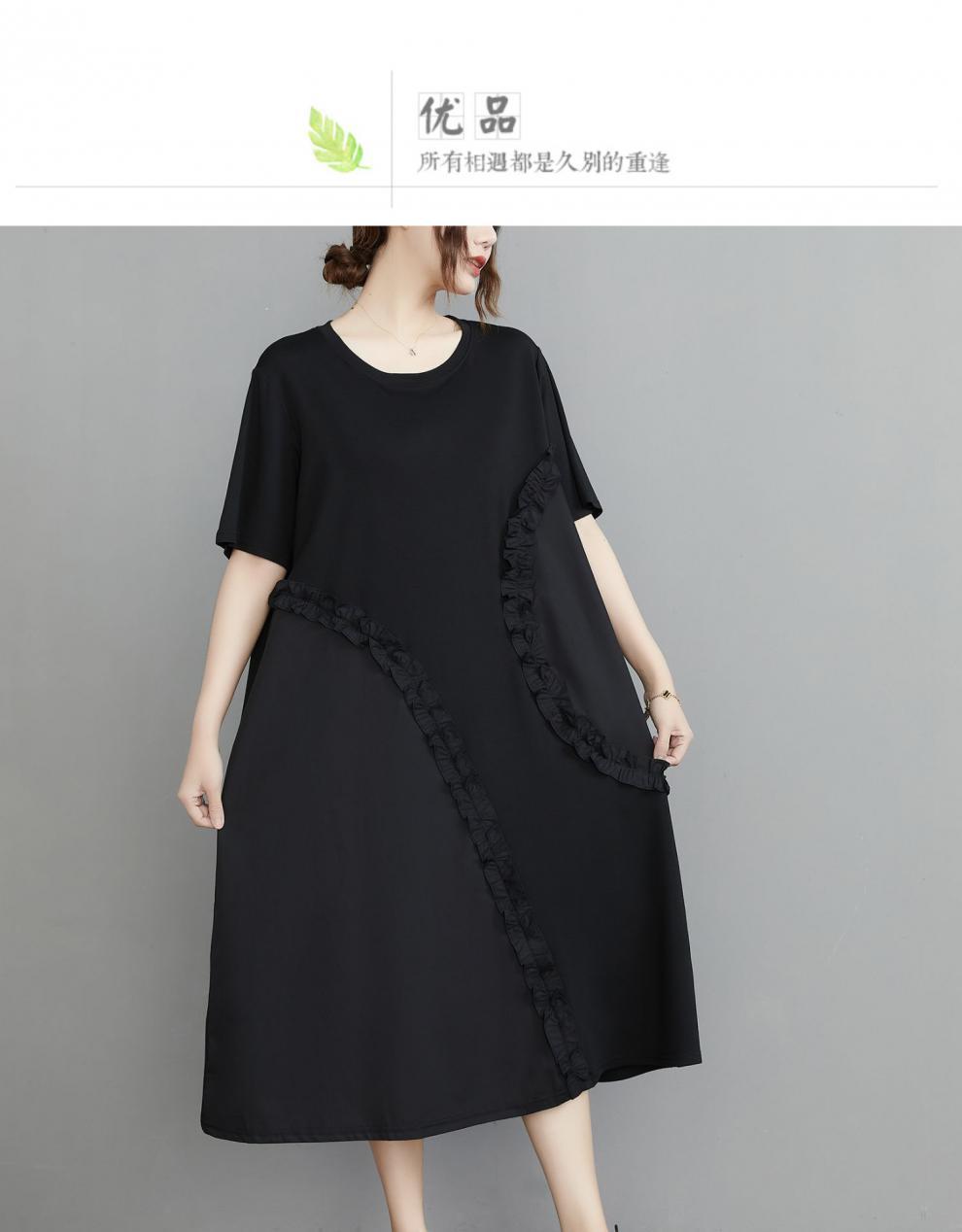 标题:婦人服ファッション夏服新型レトロ風黒パッチワークキクラゲレースワンピース通勤ゆったり着やせa字スカート