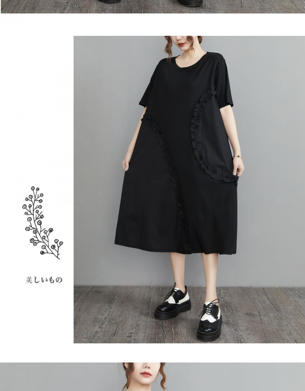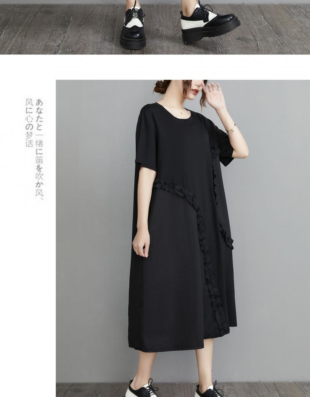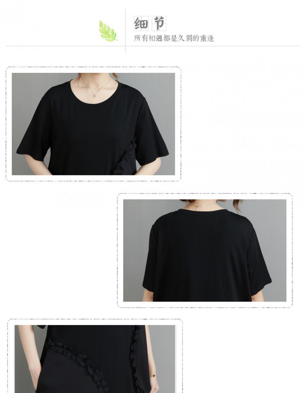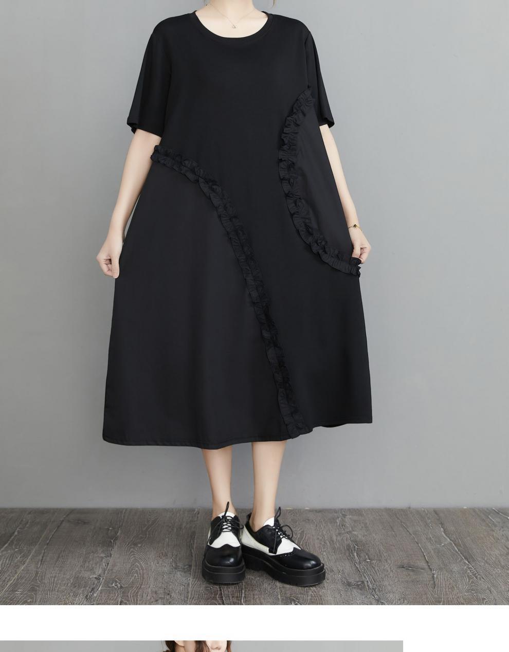 标题:婦人服ファッション夏服新型レトロ風黒パッチワークキクラゲレースワンピース通勤ゆったり着やせa字スカート