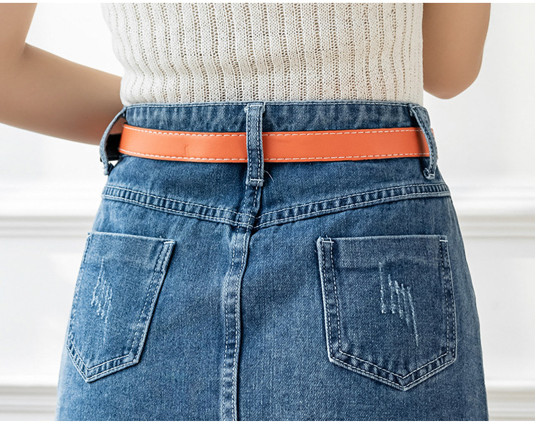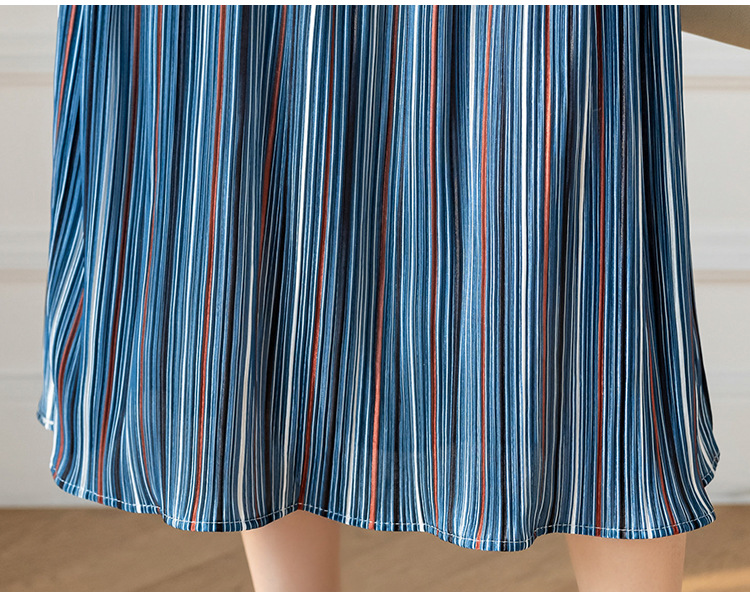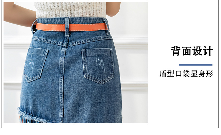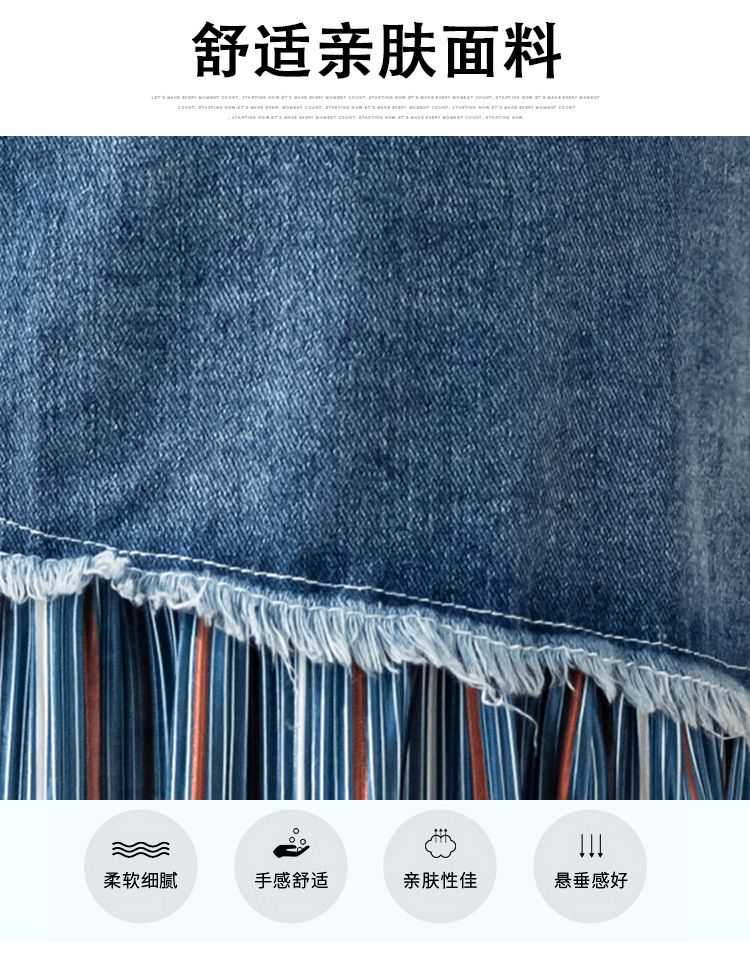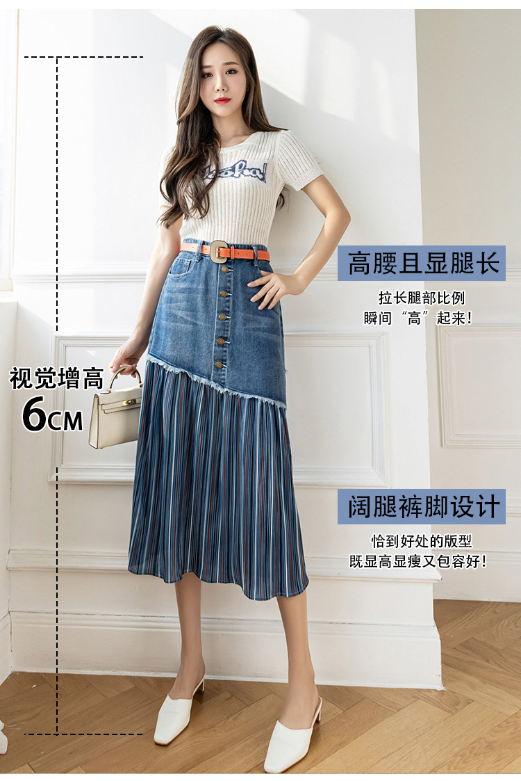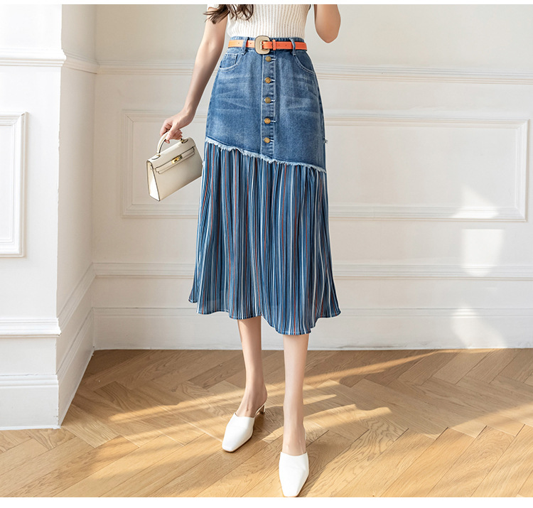 标题:秋冬新款韩版轻熟气质高腰牛仔半身裙女拼接条纹中长裙显瘦a字裙