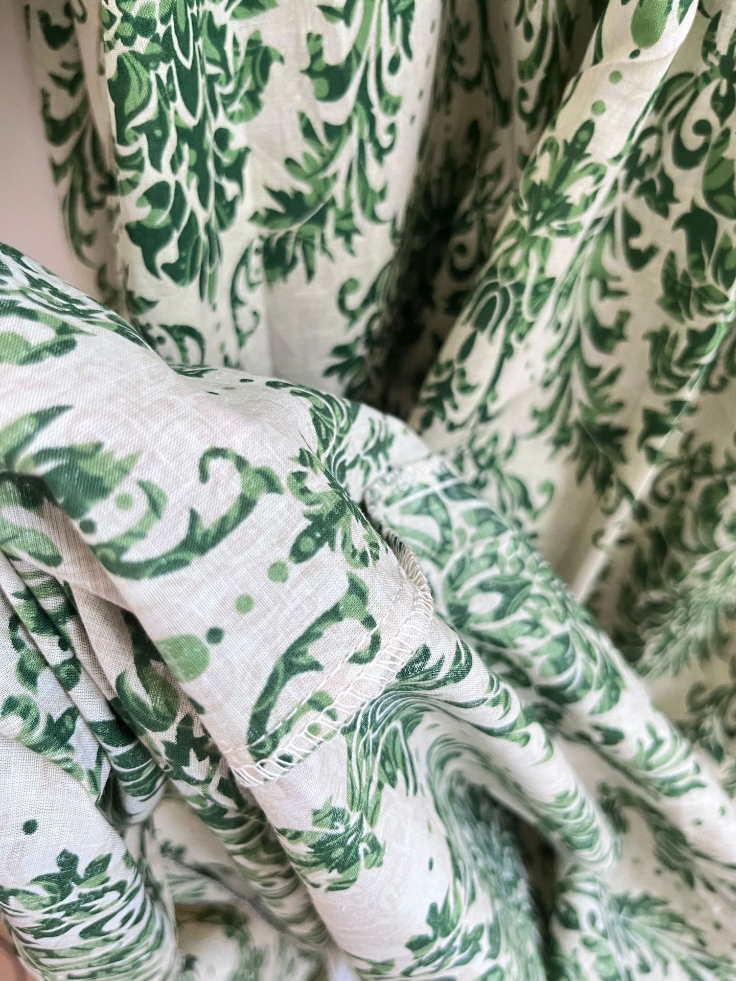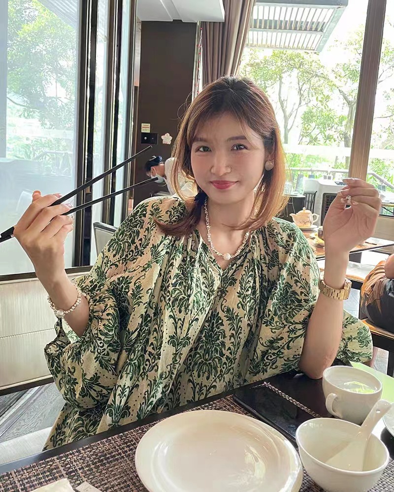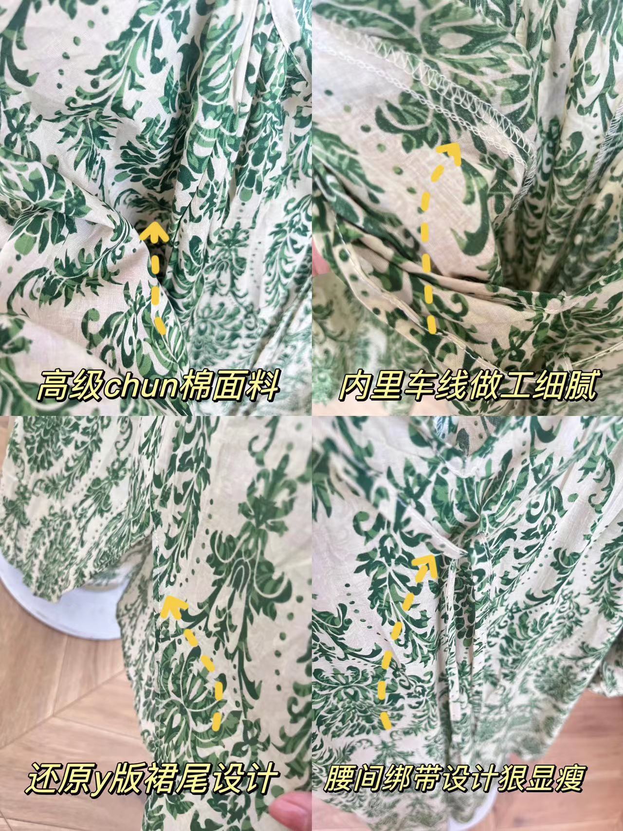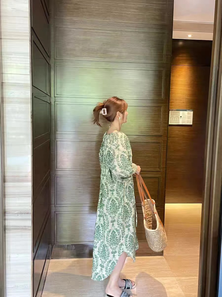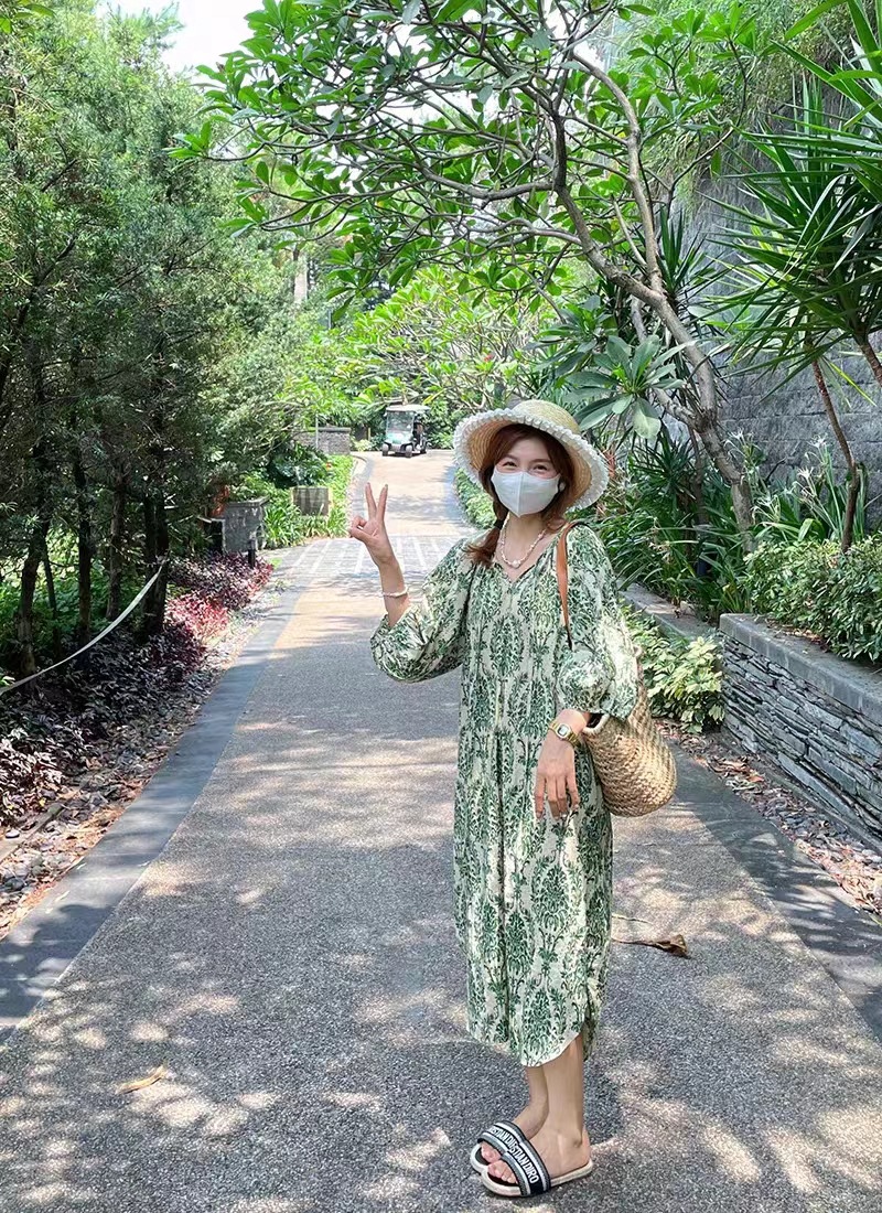 标题:现货 会呼吸的面料2023夏季旅行度假风碎花薄绿高级感大码连衣裙