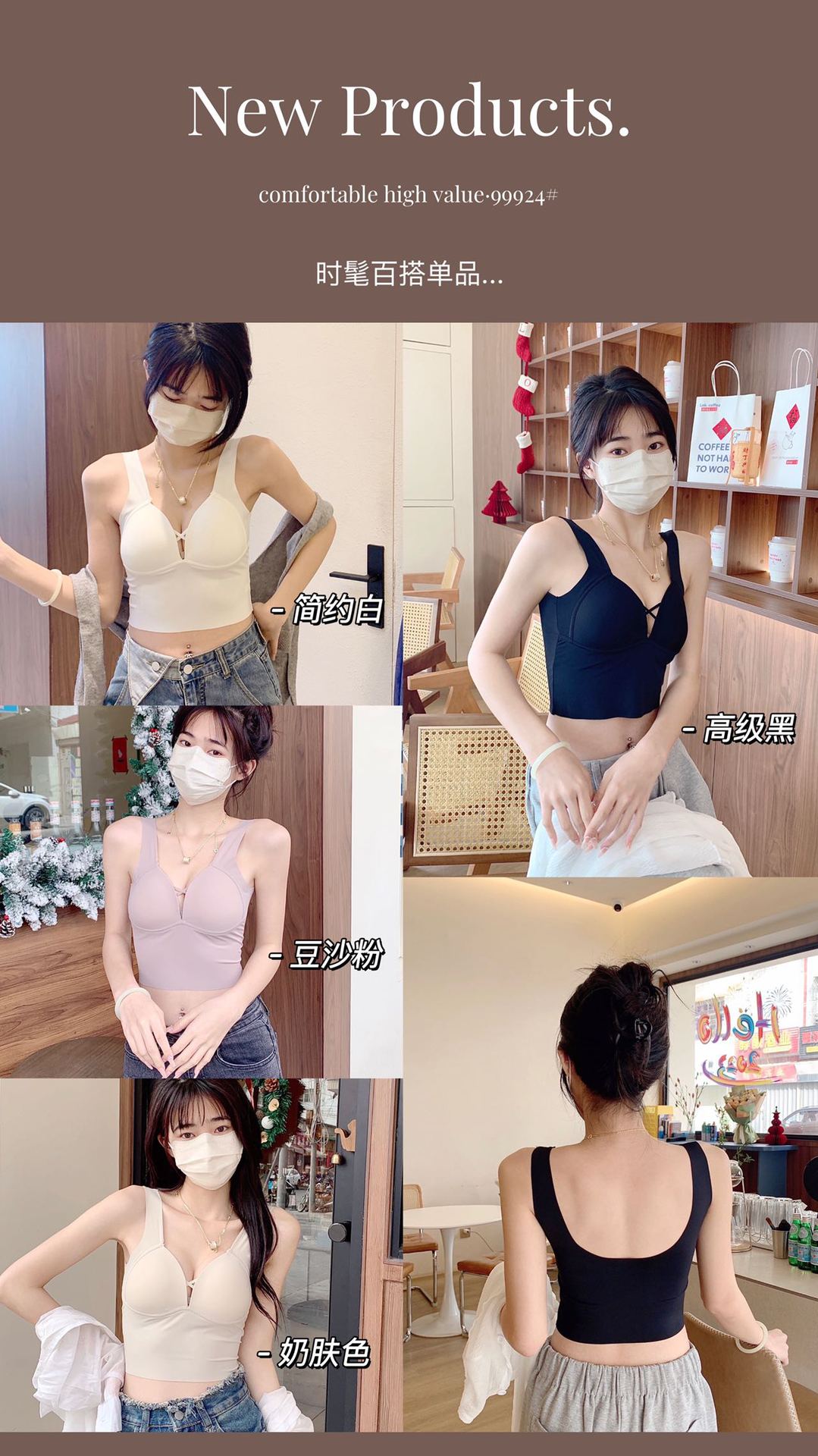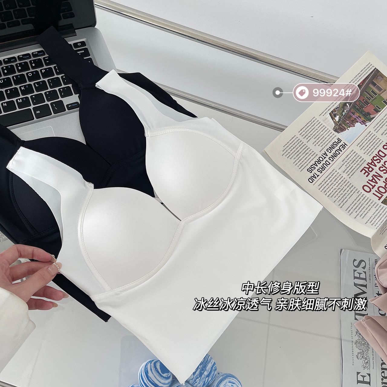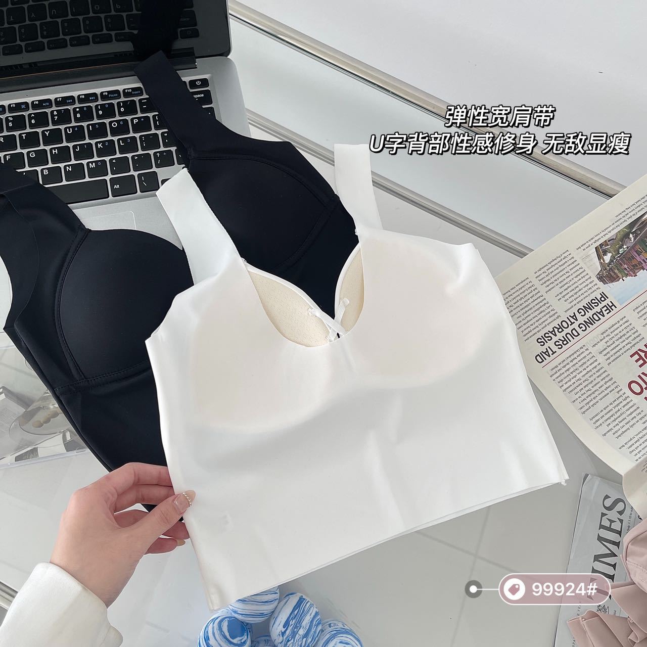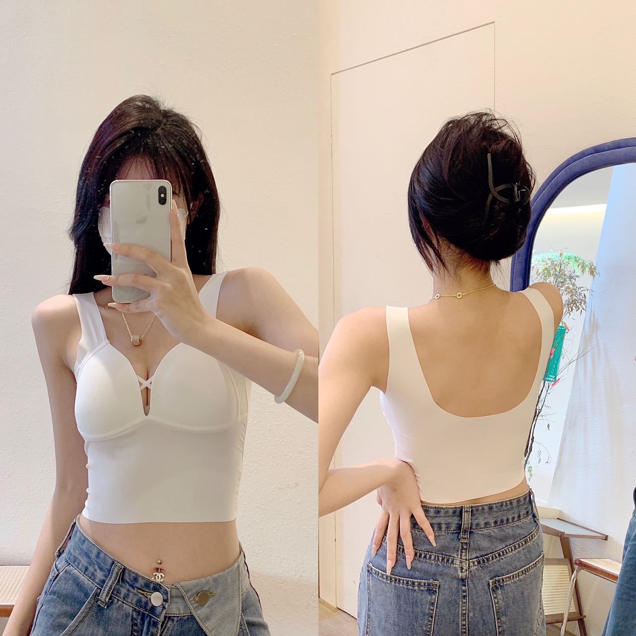 标题:冰丝无痕吊带背心女春夏装2023新款设计感性感亲肤带胸垫内搭上衣