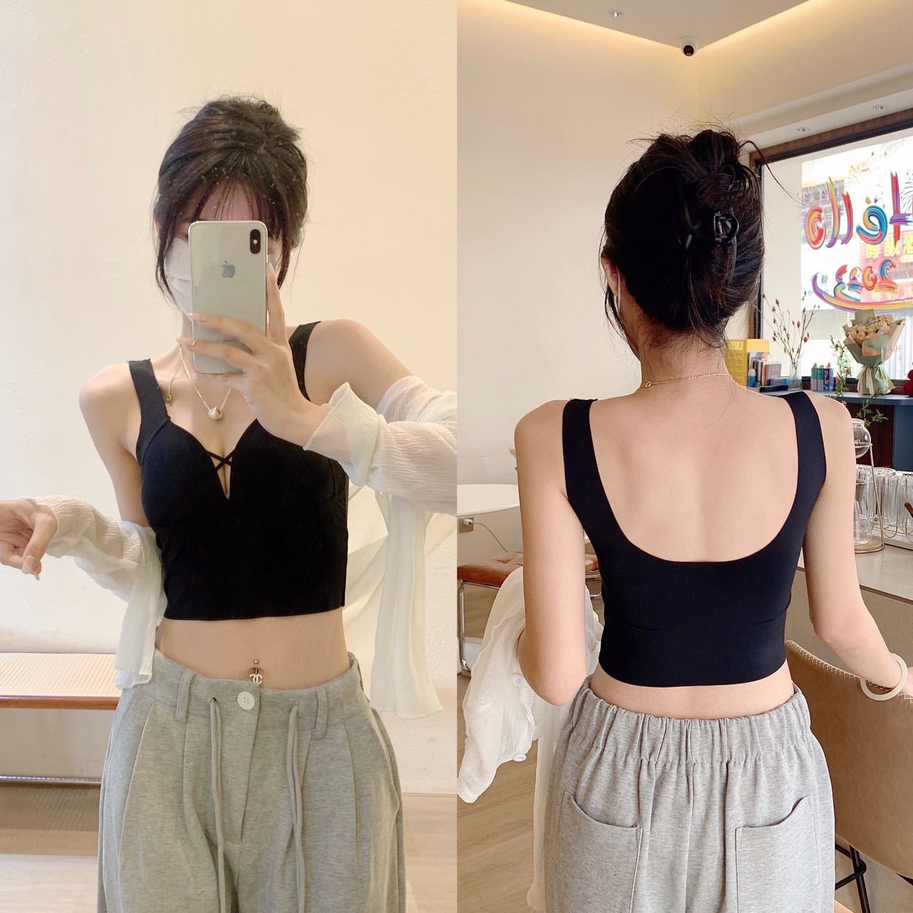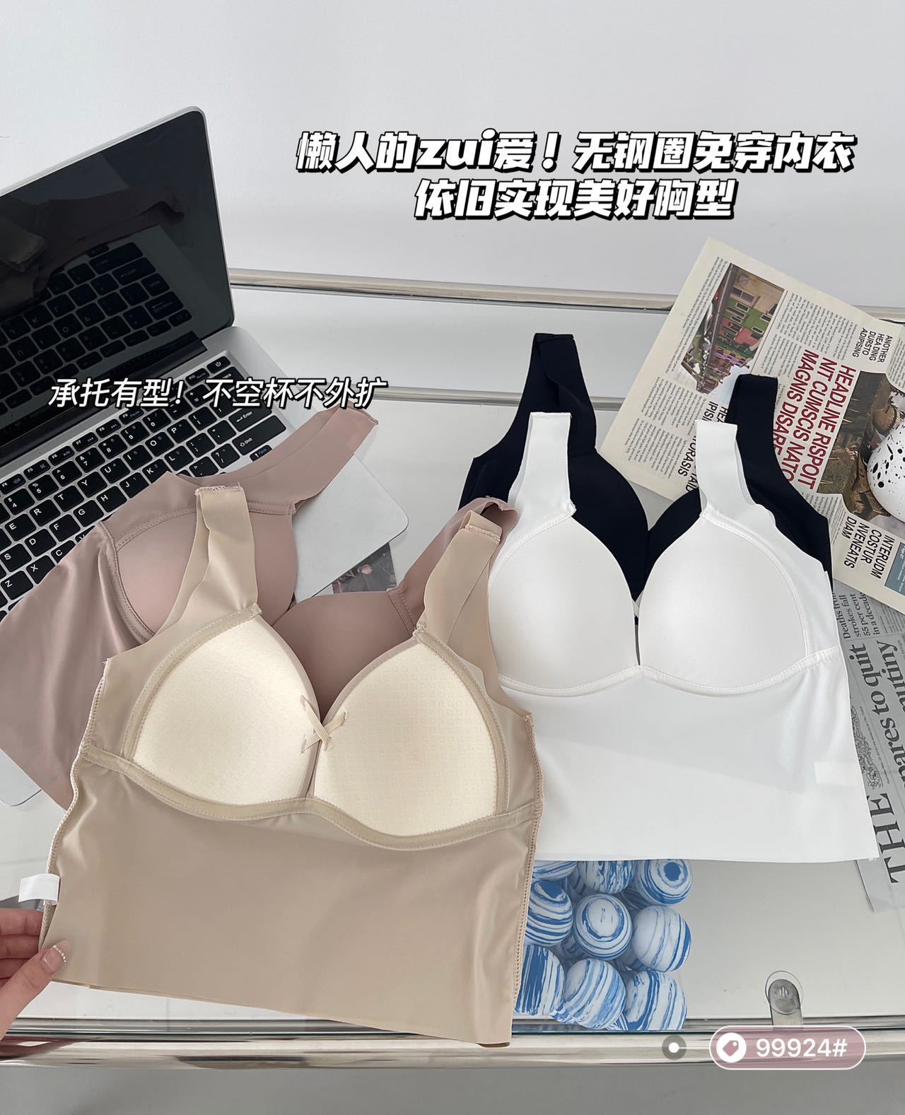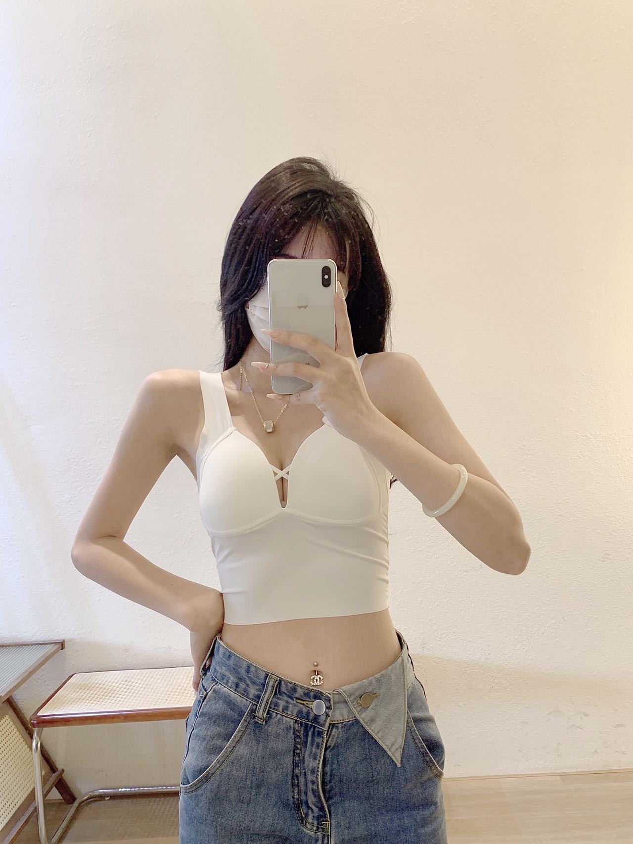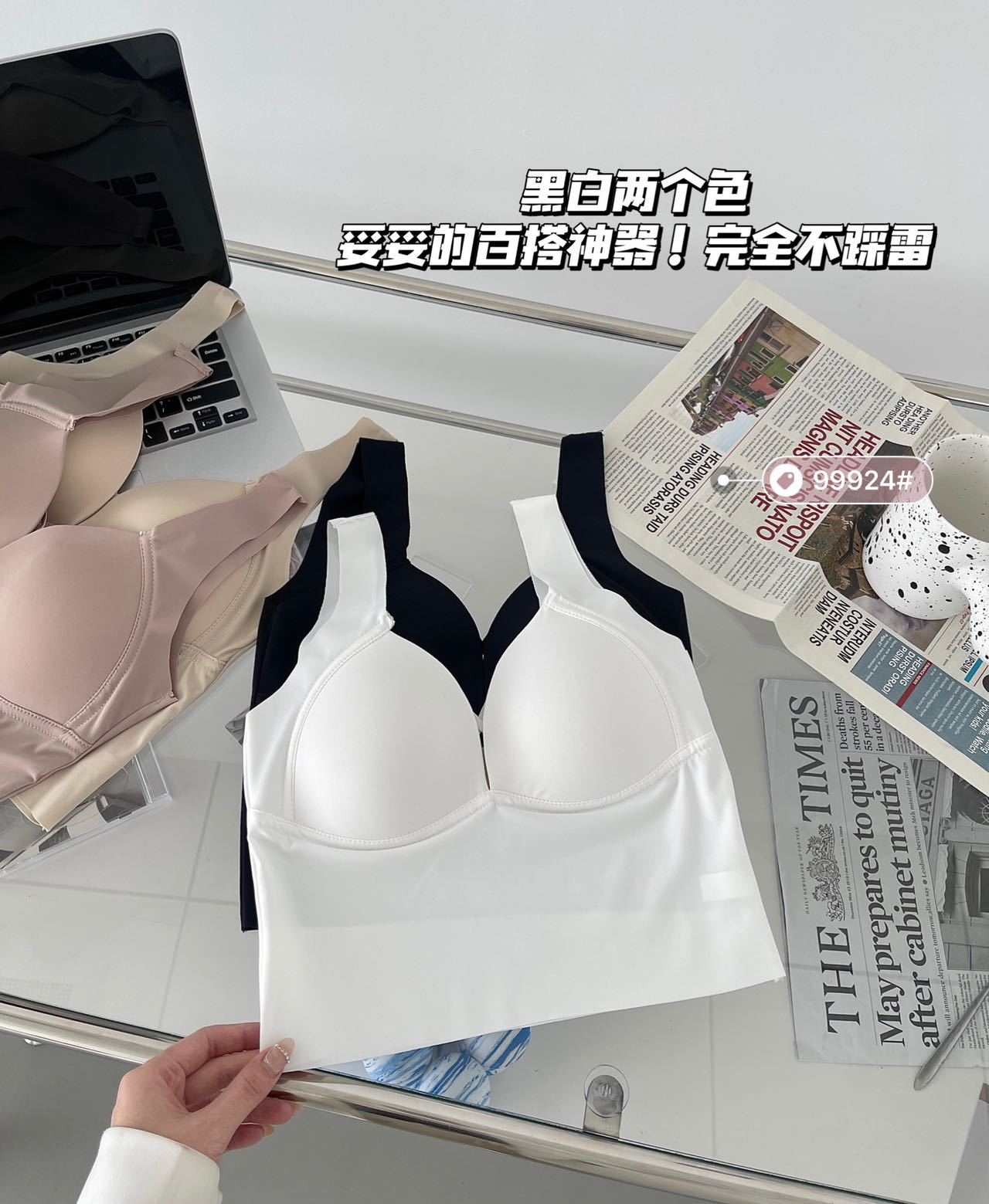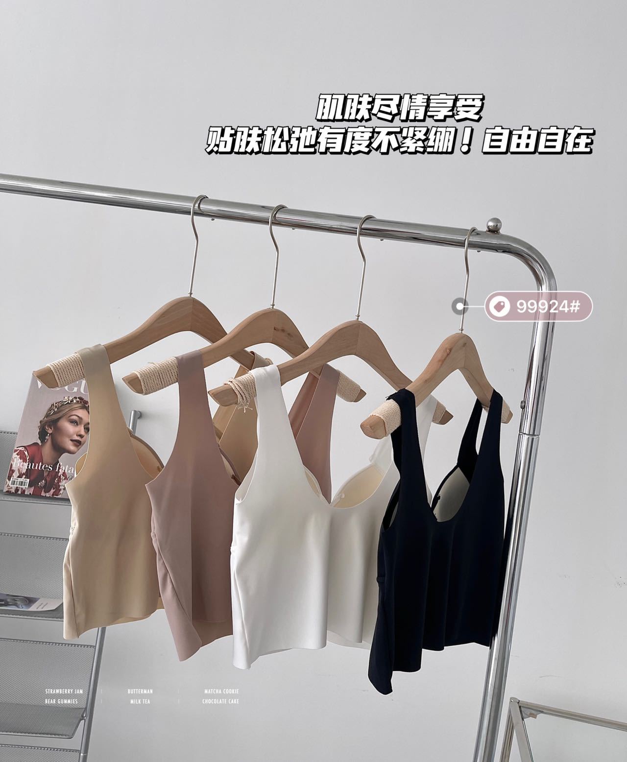 标题:冰丝无痕吊带背心女春夏装2023新款设计感性感亲肤带胸垫内搭上衣