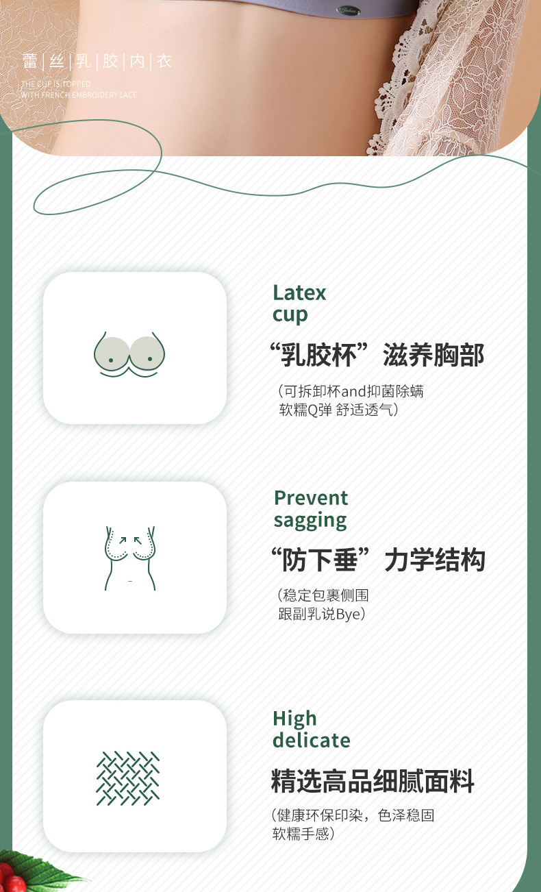 标题:乳胶杯蕾丝美背无痕大码文胸女 聚拢无钢圈收副乳背心式运动内衣