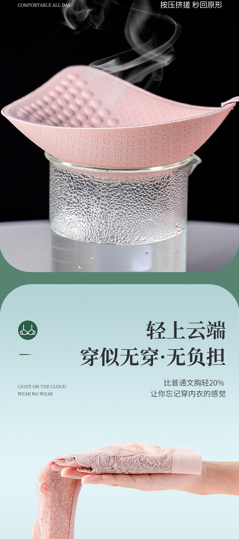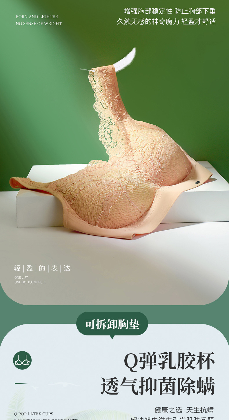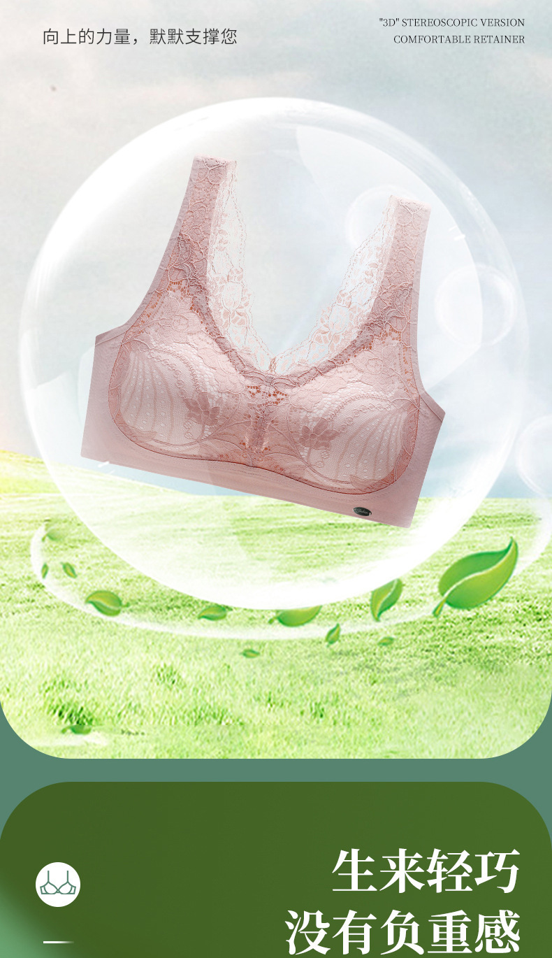 描述:功能:聚拢,无痕,透气,上托,无缝,美背,吸汗,防走光,调整型,舒适,侧收,收副乳,货号:023#,品牌:幽香汝,主面料成分:锦纶/尼龙,面料名称:蕾丝,主面料成分的含量:75,里料成分:锦纶/尼龙,里料成分含量:75,款式:背心式,产地:汕头,是否有钢圈:无钢圈,罩杯型:3/4罩杯,模杯类型:中模杯,肩带类型:固定双肩带,排扣类型:无排扣,最低贴牌量:200,颜色:粉色,灰色,绿色,黑色,肤色,焦糖色,尺码:M(95斤以下),L(95~110斤),XL(110~125斤),2XL(125~140斤),3XL(140~155斤),是否跨境出口专供货源:是,上市时间:2022年夏季,适用年龄段:青年(18-40周岁),误差范围:1cm,主面料成分含量:80%(含)-90%(不含),风格:奢华高贵,