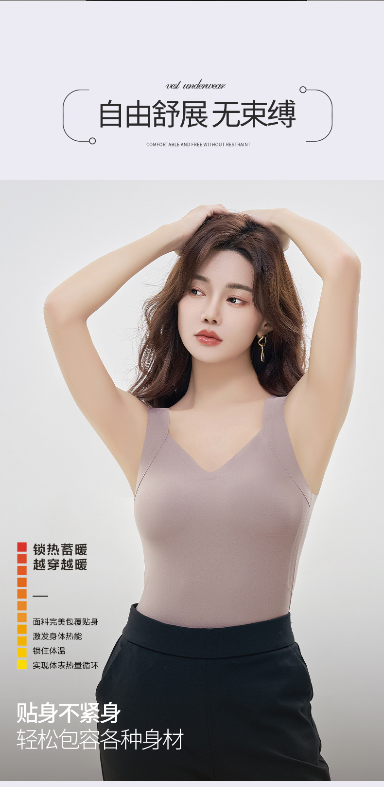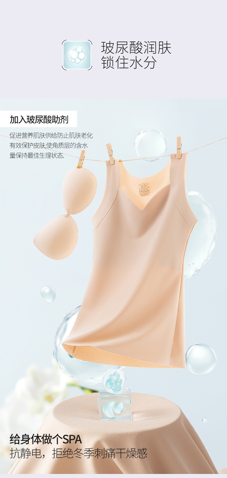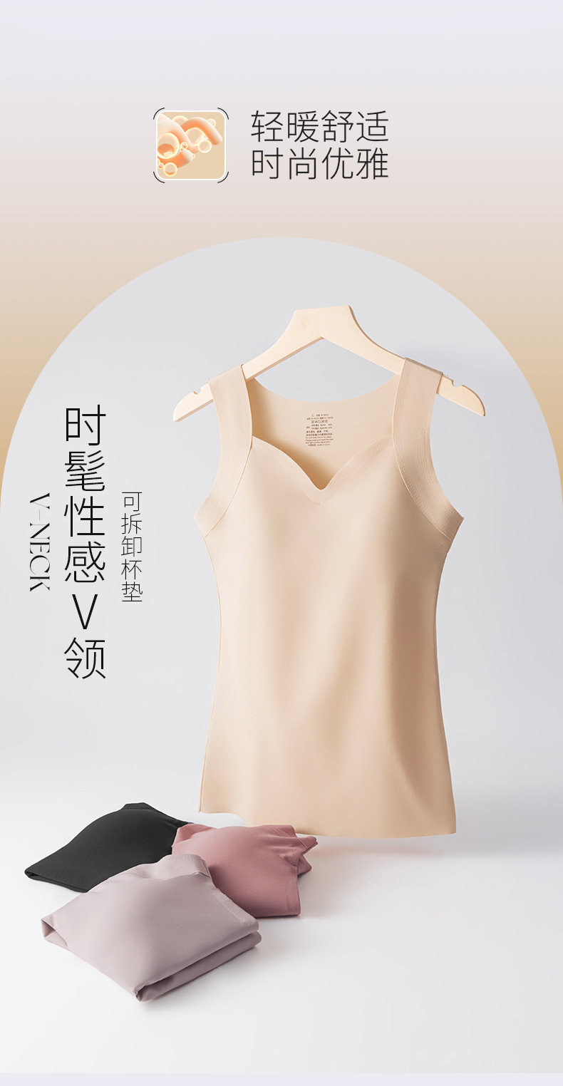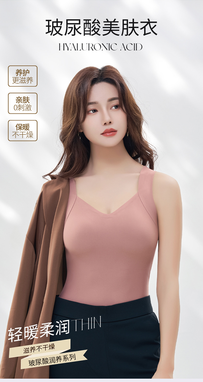 标题:玻尿酸女士保暖内衣无袖可拆卸胸垫乳胶杯美背蓄热百搭长款内衣女
