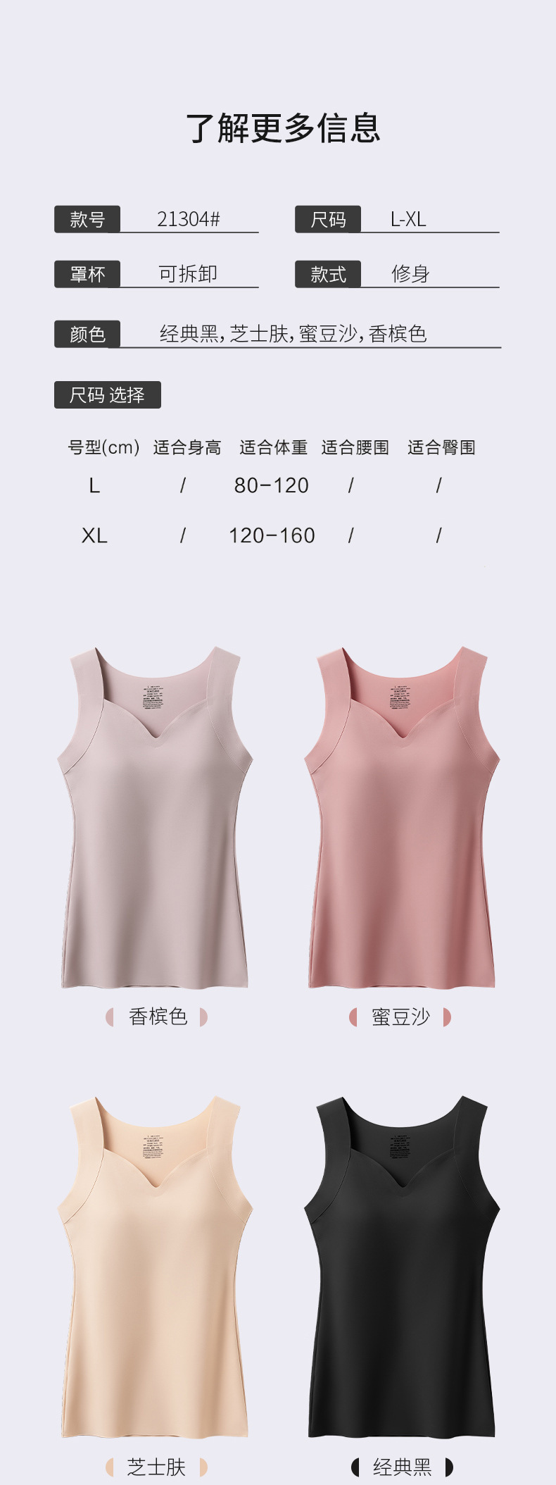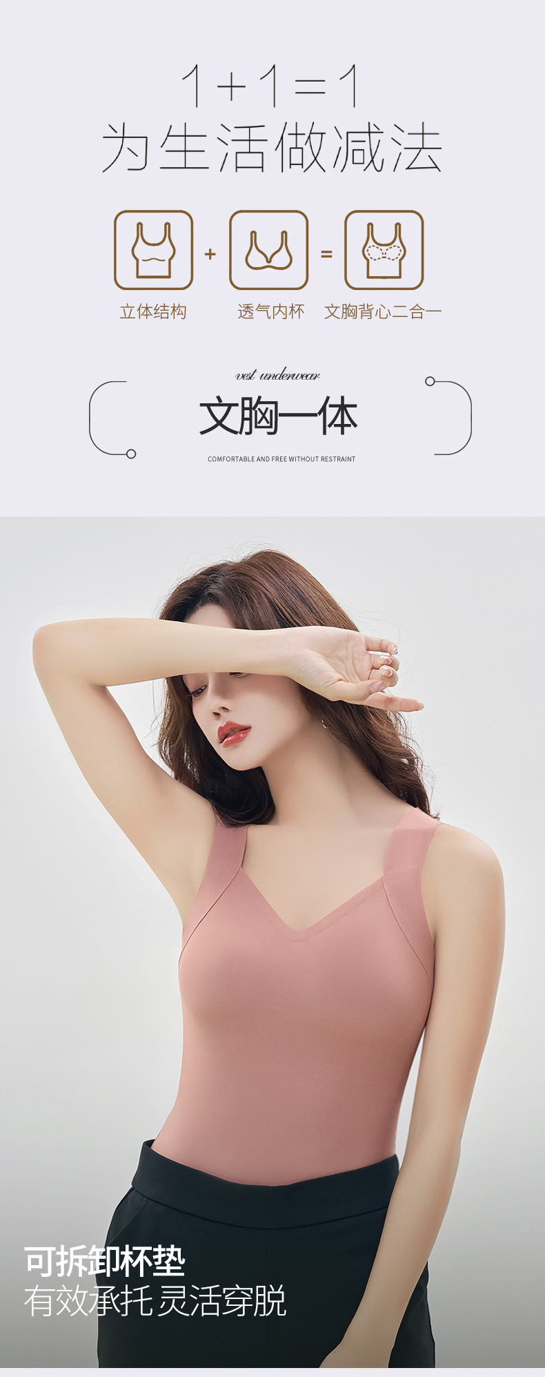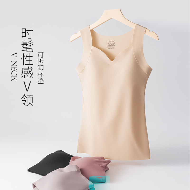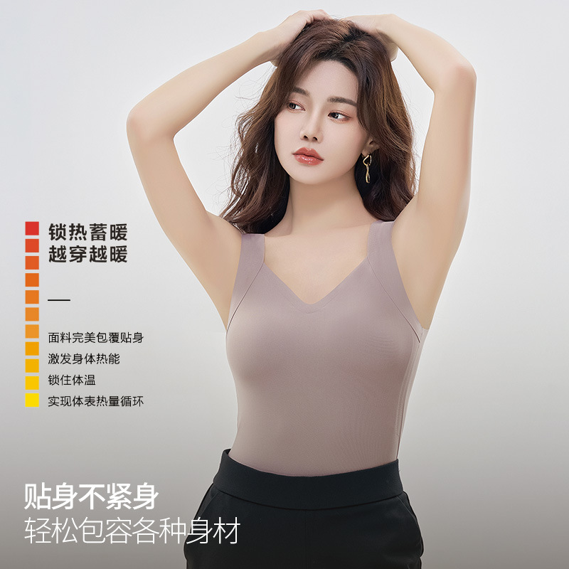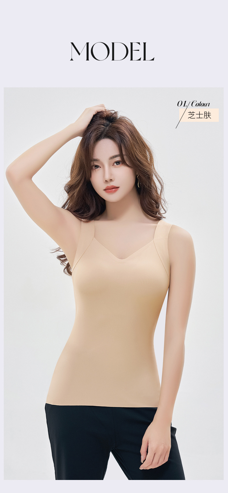 标题:玻尿酸女士保暖内衣无袖可拆卸胸垫乳胶杯美背蓄热百搭长款内衣女