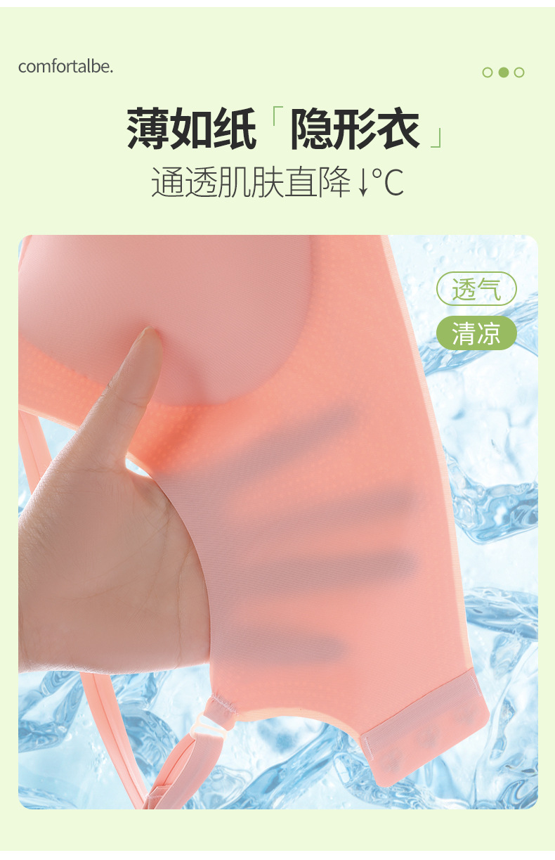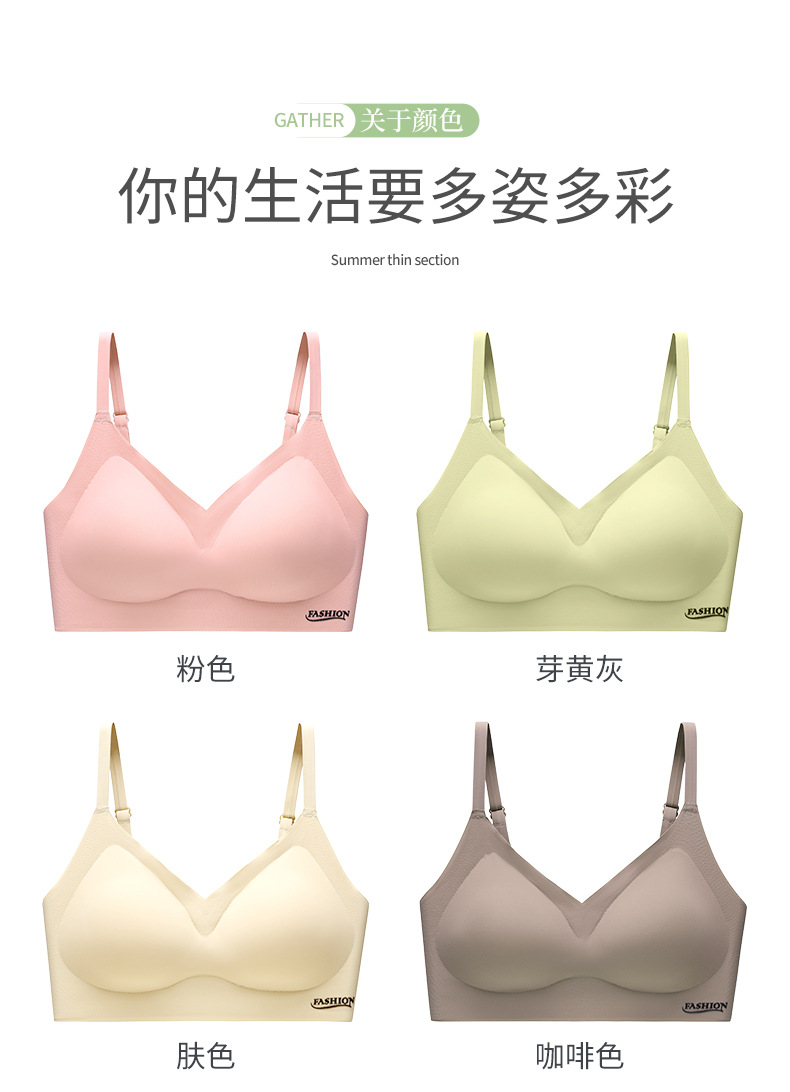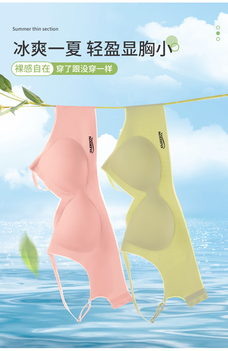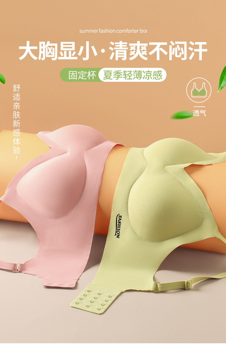 标题:夏季冰丝美背文胸无痕内衣薄款小胸聚拢无钢圈固定杯大胸显小胸罩