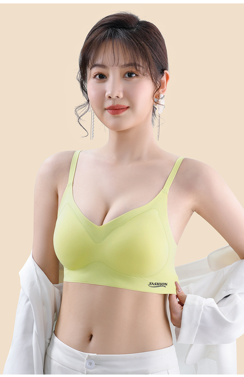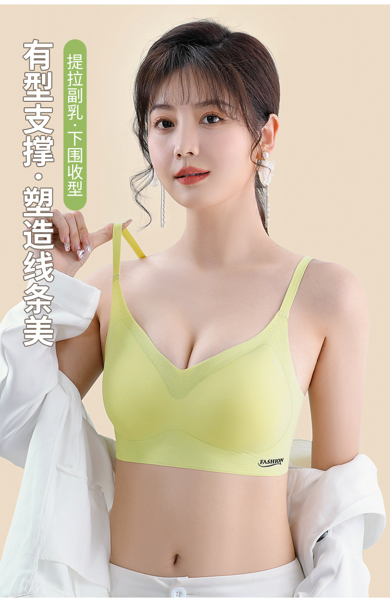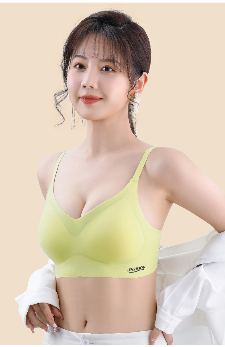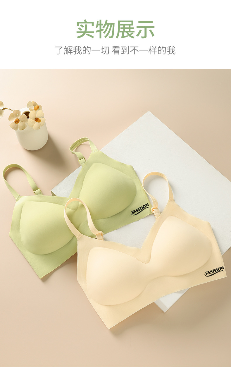 标题:夏季冰丝美背文胸无痕内衣薄款小胸聚拢无钢圈固定杯大胸显小胸罩