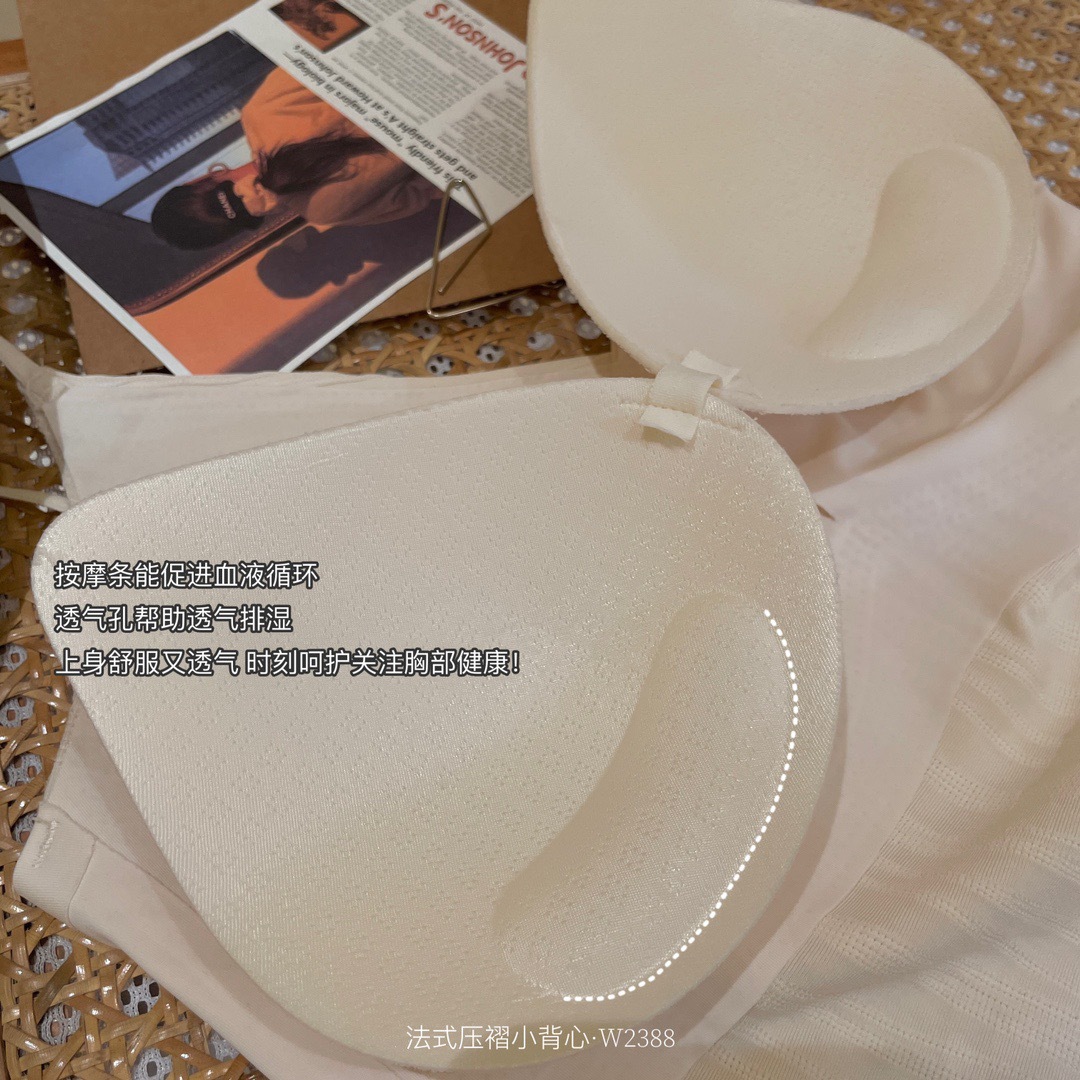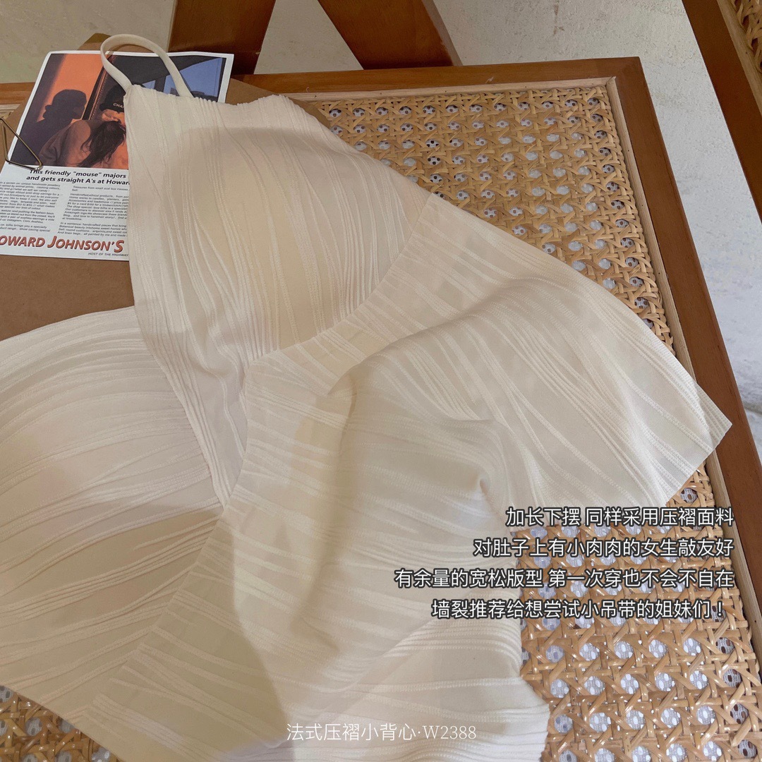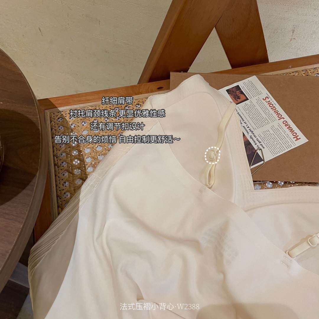 标题:法式压褶吊带背心带胸垫外穿内搭一体V领美背文胸打底内衣轻奢风