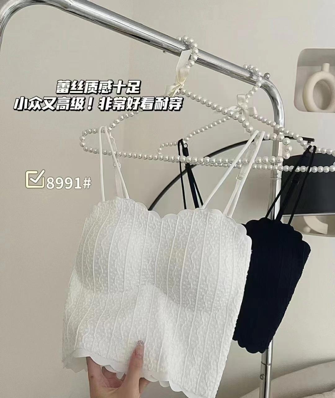 标题:2023新款蕾丝吊带背心带胸垫冰丝美背内衣女内搭打底辣妹外穿抹胸