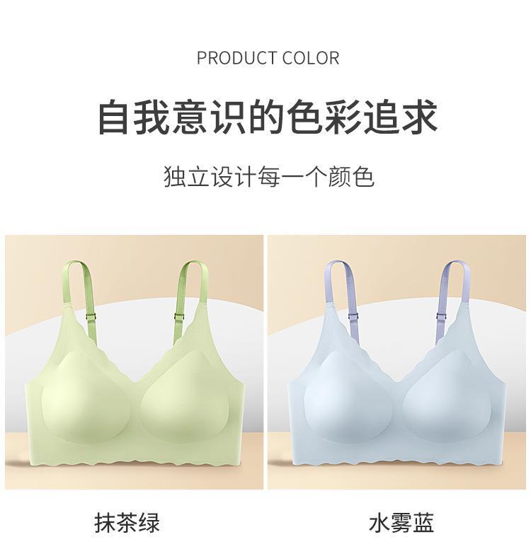 标题:精品撞色无痕美背无钢圈女士无感软支撑聚拢上托乳胶透气胸垫文胸