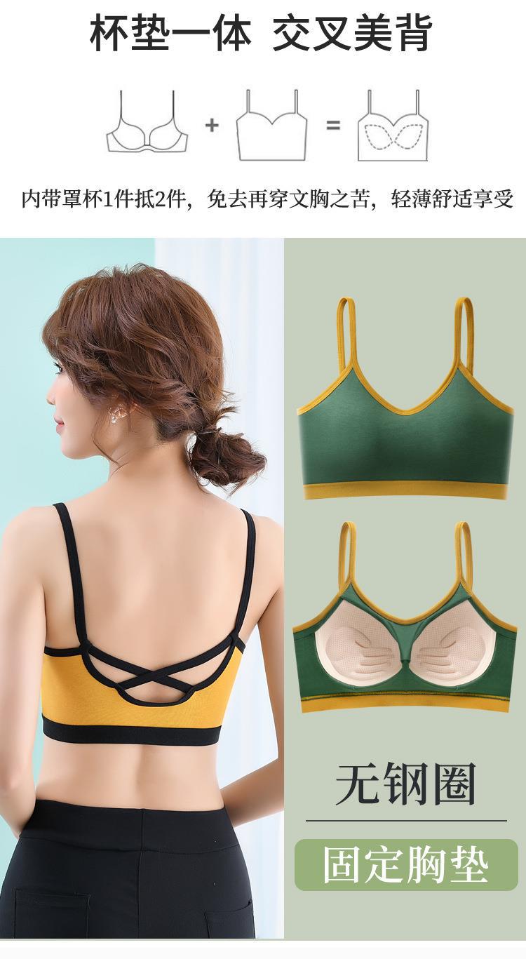 标题:无钢圈美背吊带内衣一体文胸学生少女打底裹胸聚拢上托抹胸背心式