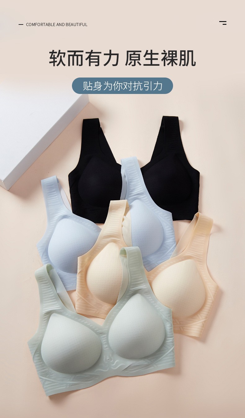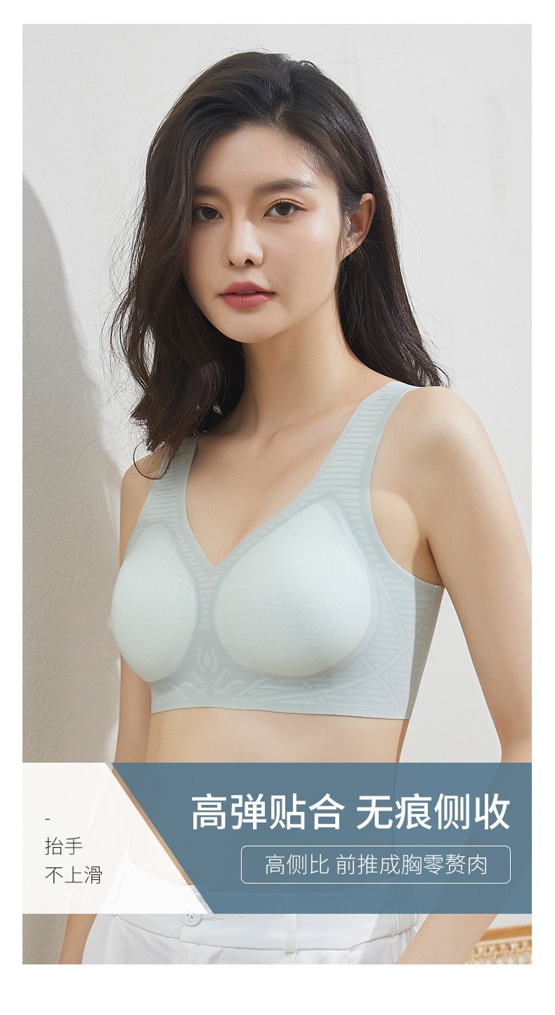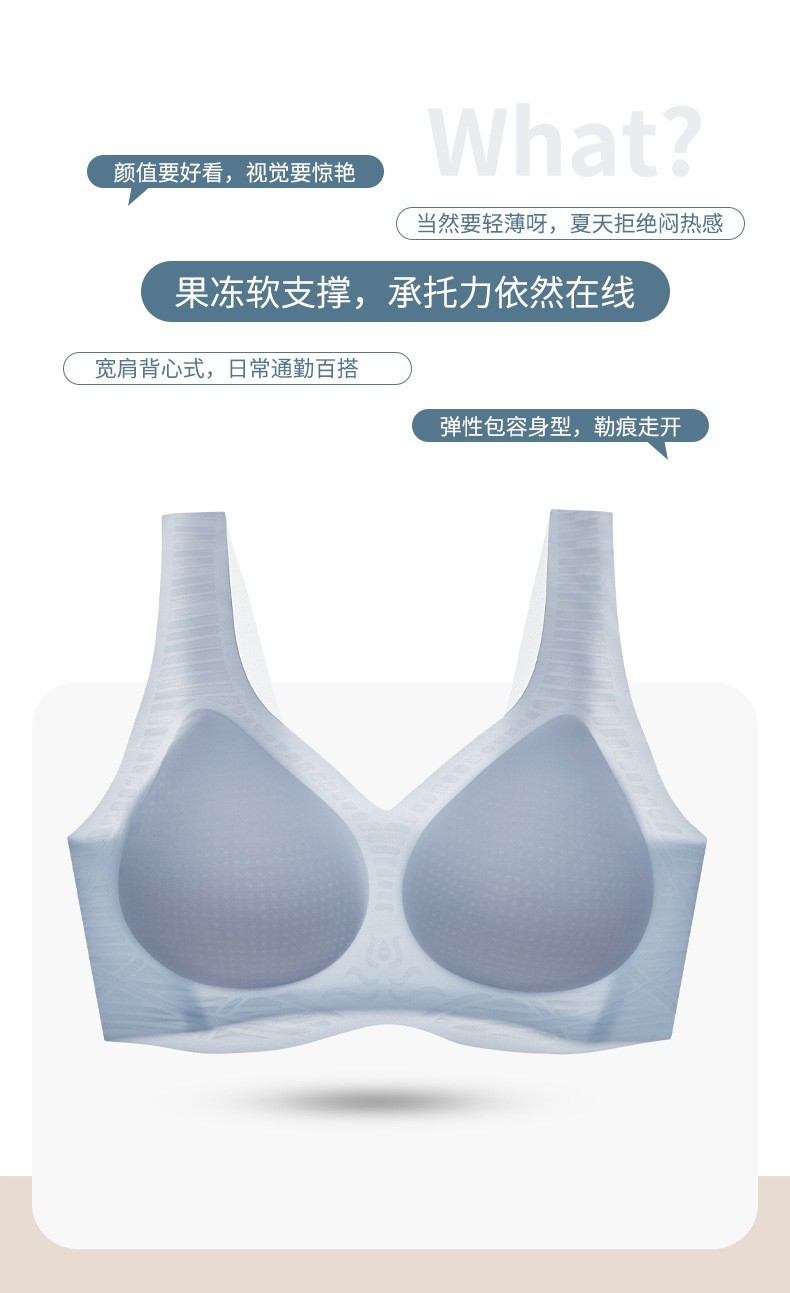 标题:夏季超薄冰丝无痕内衣女大胸显小胸背心式果冻软支撑聚拢美背文胸