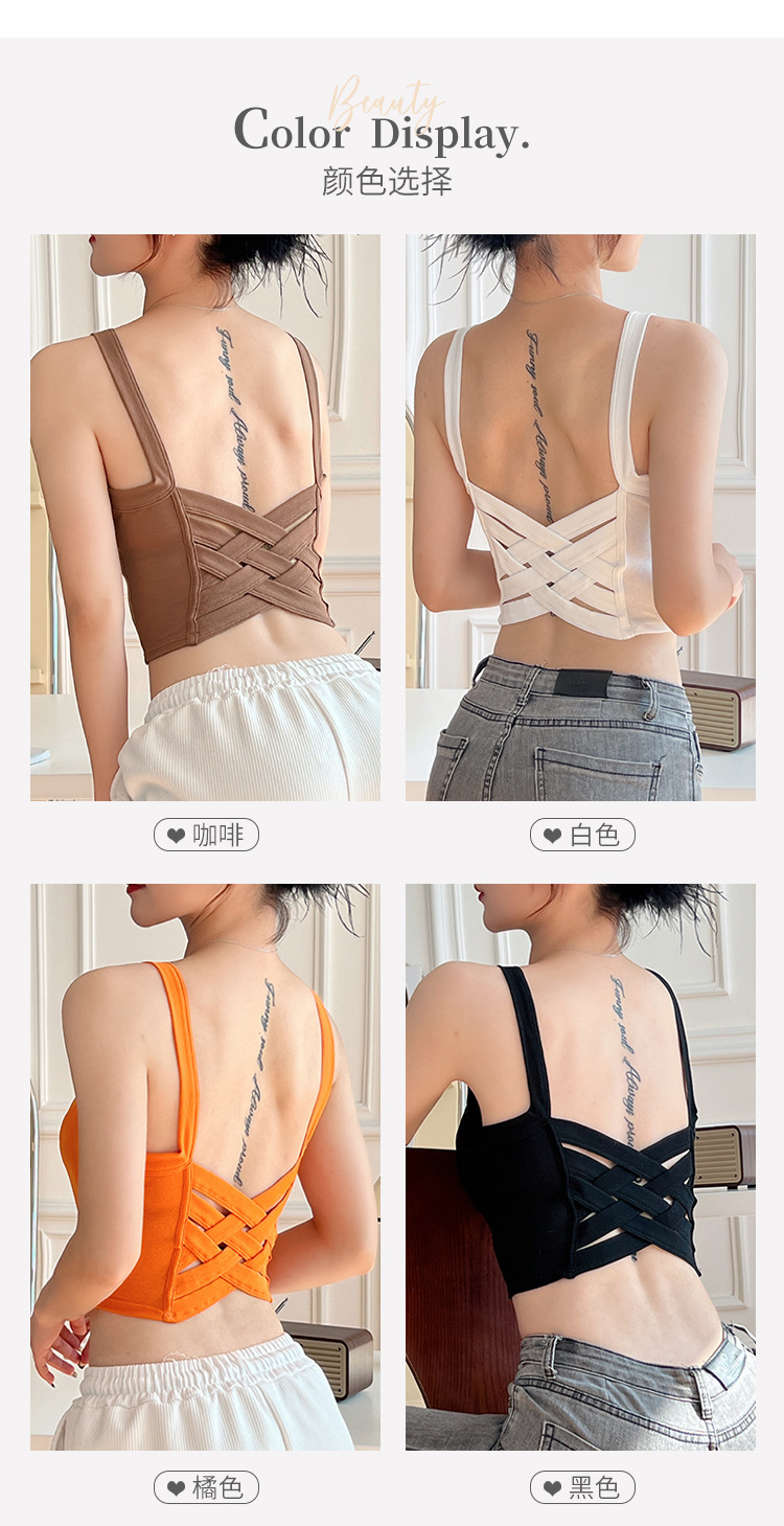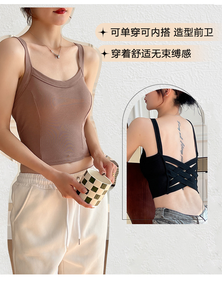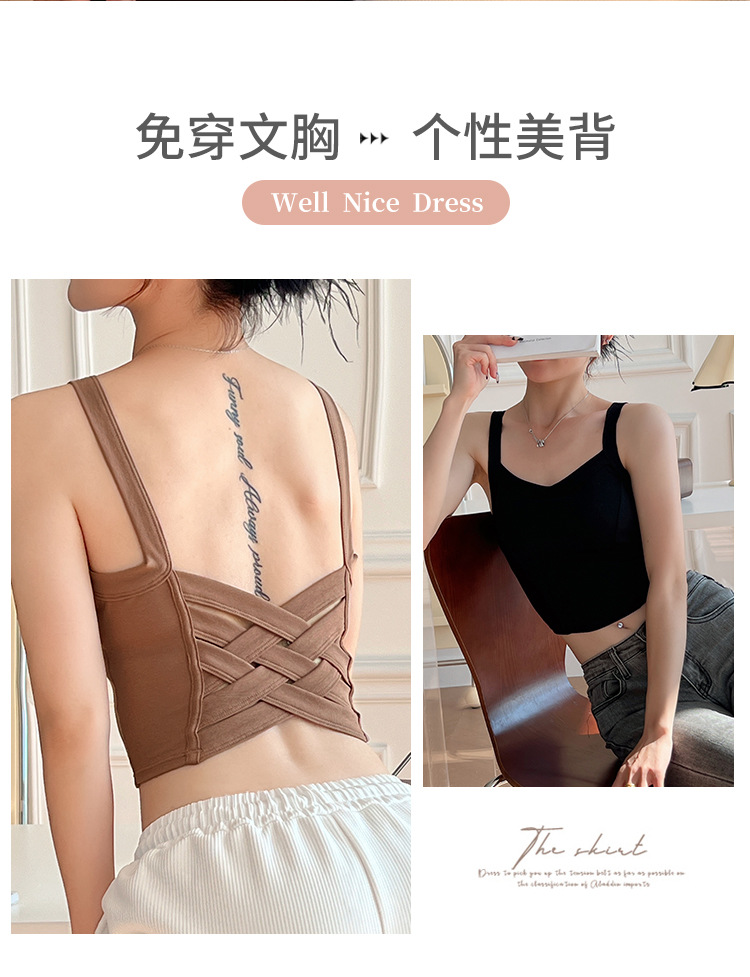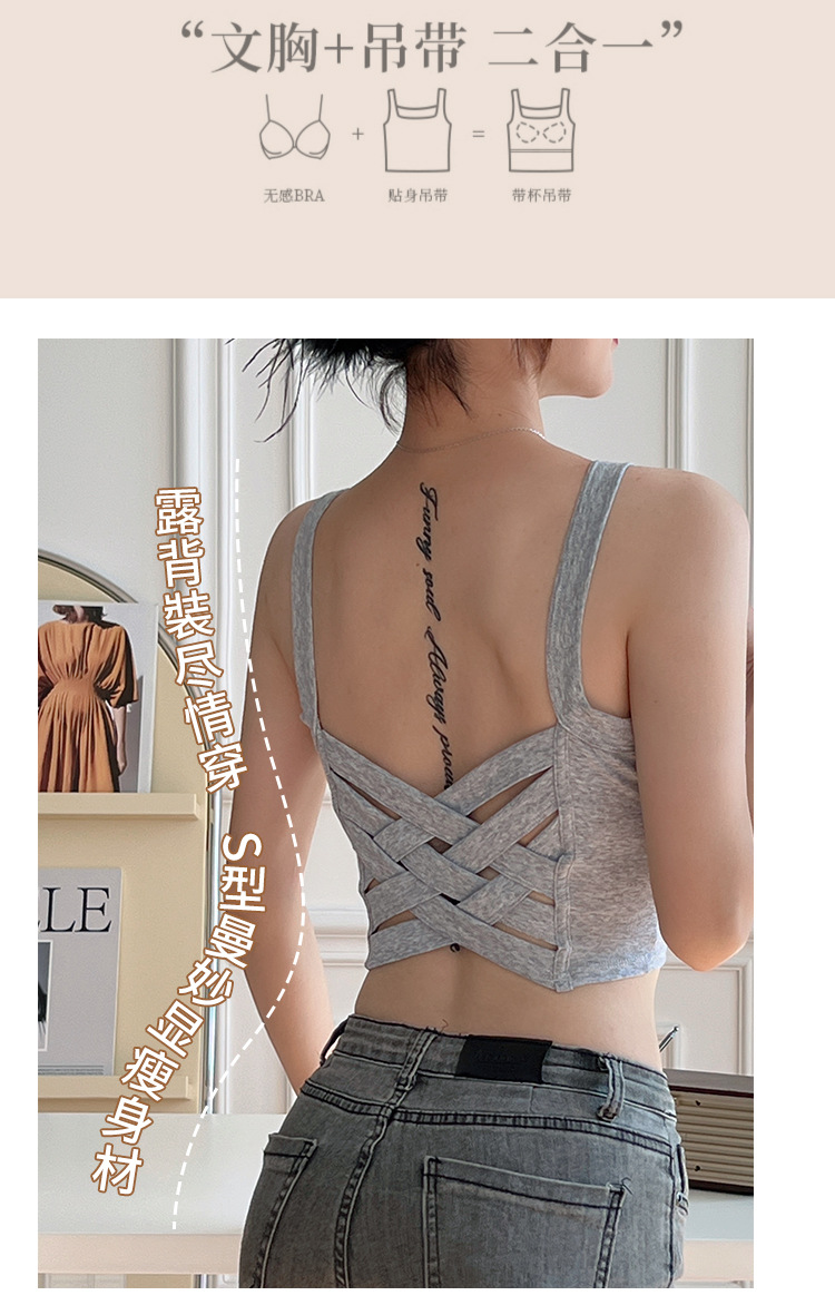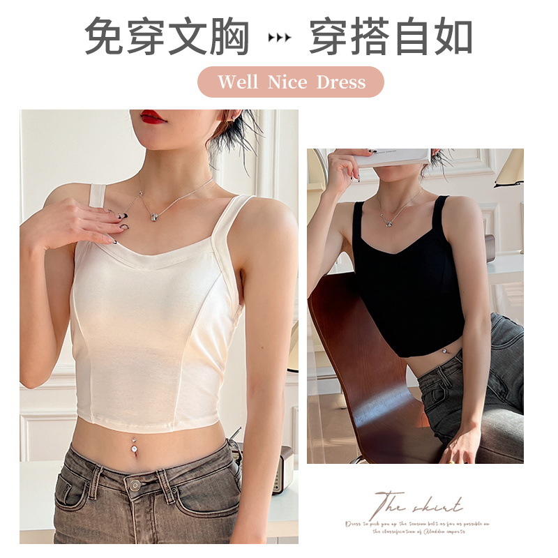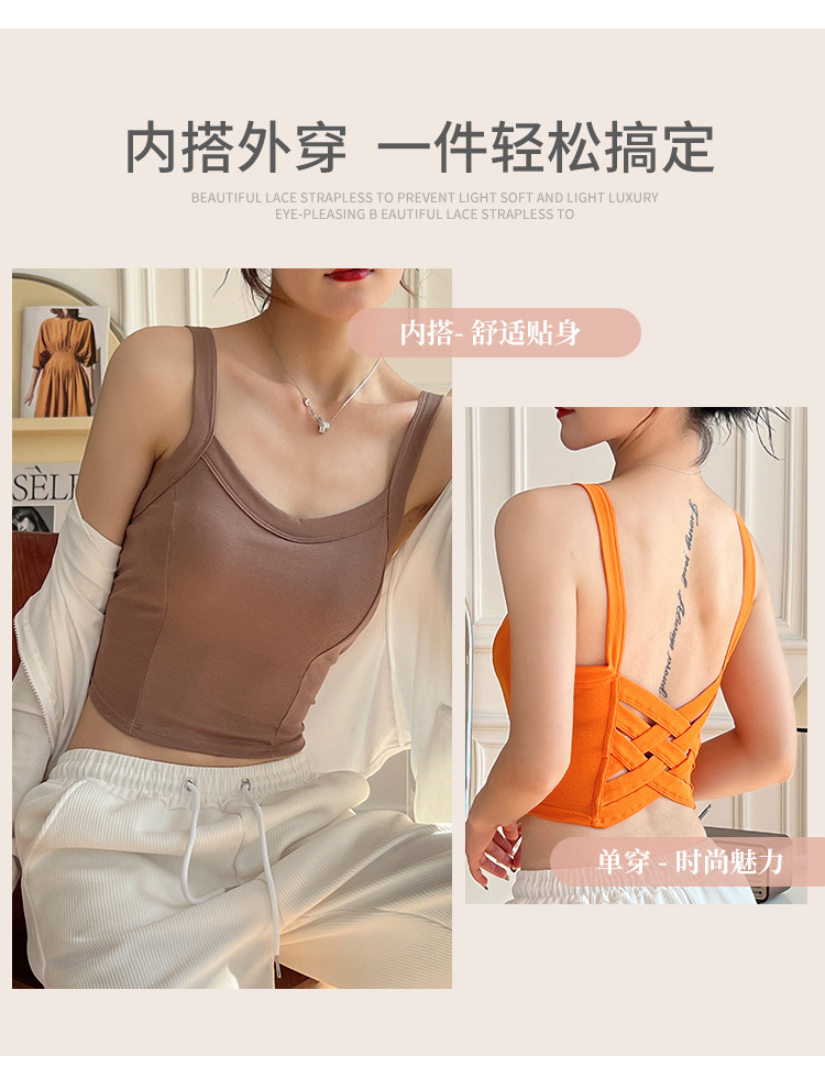 标题:女生美背吊带背心带胸垫一体背心自带Bra文胸显瘦短款打底上衣