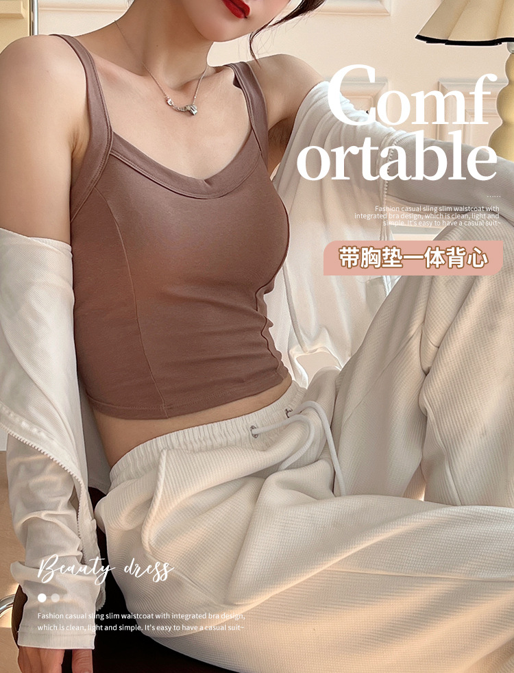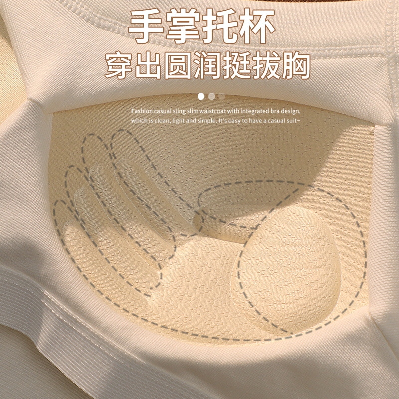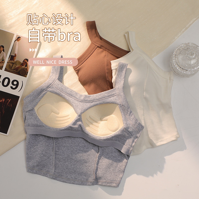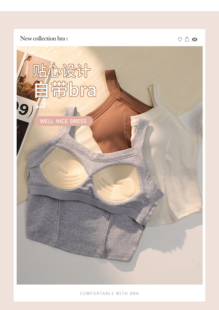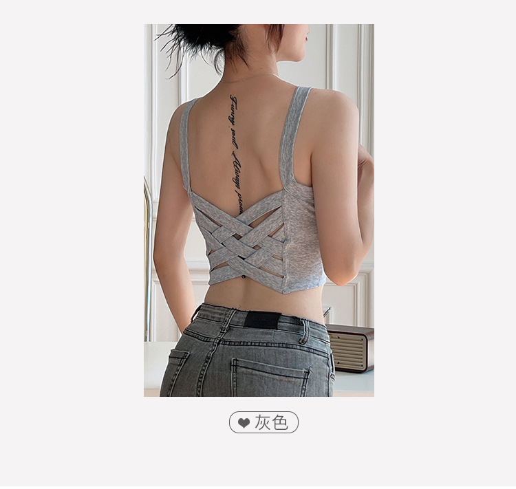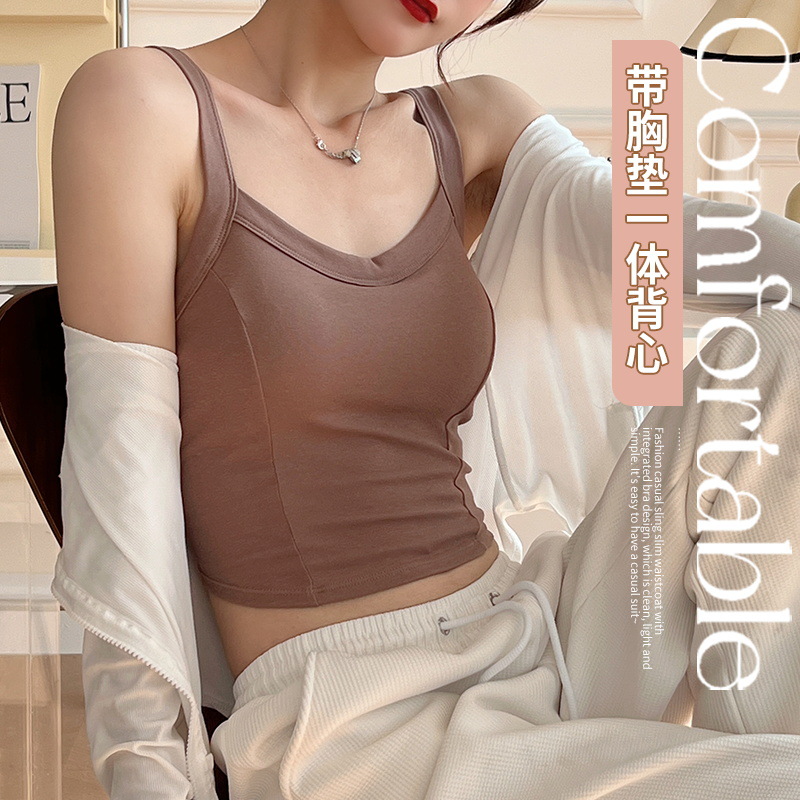 标题:女生美背吊带背心带胸垫一体背心自带Bra文胸显瘦短款打底上衣