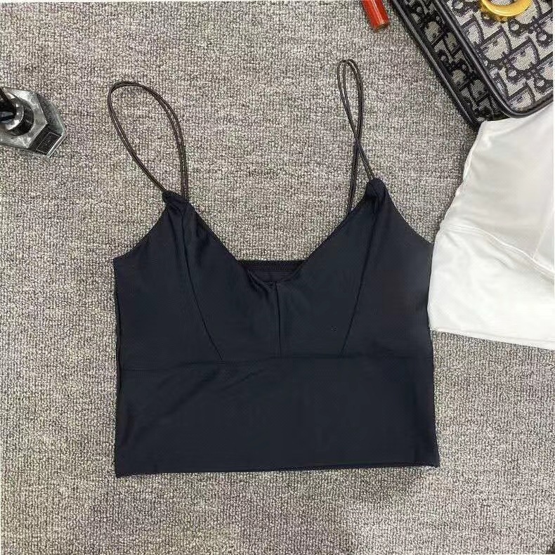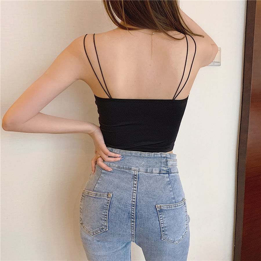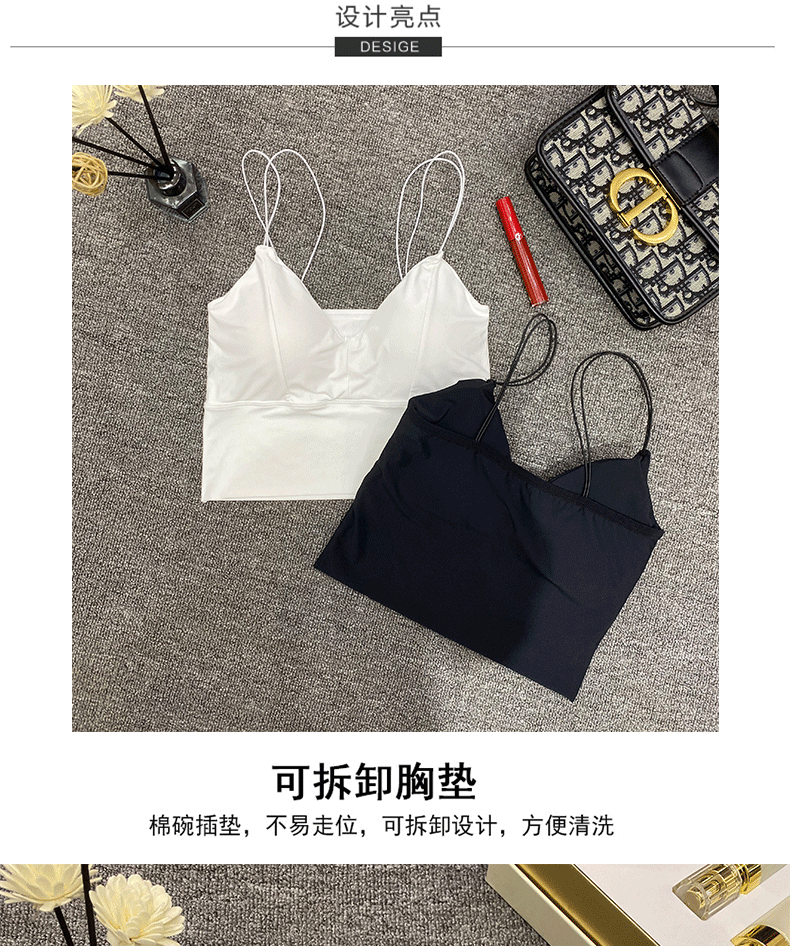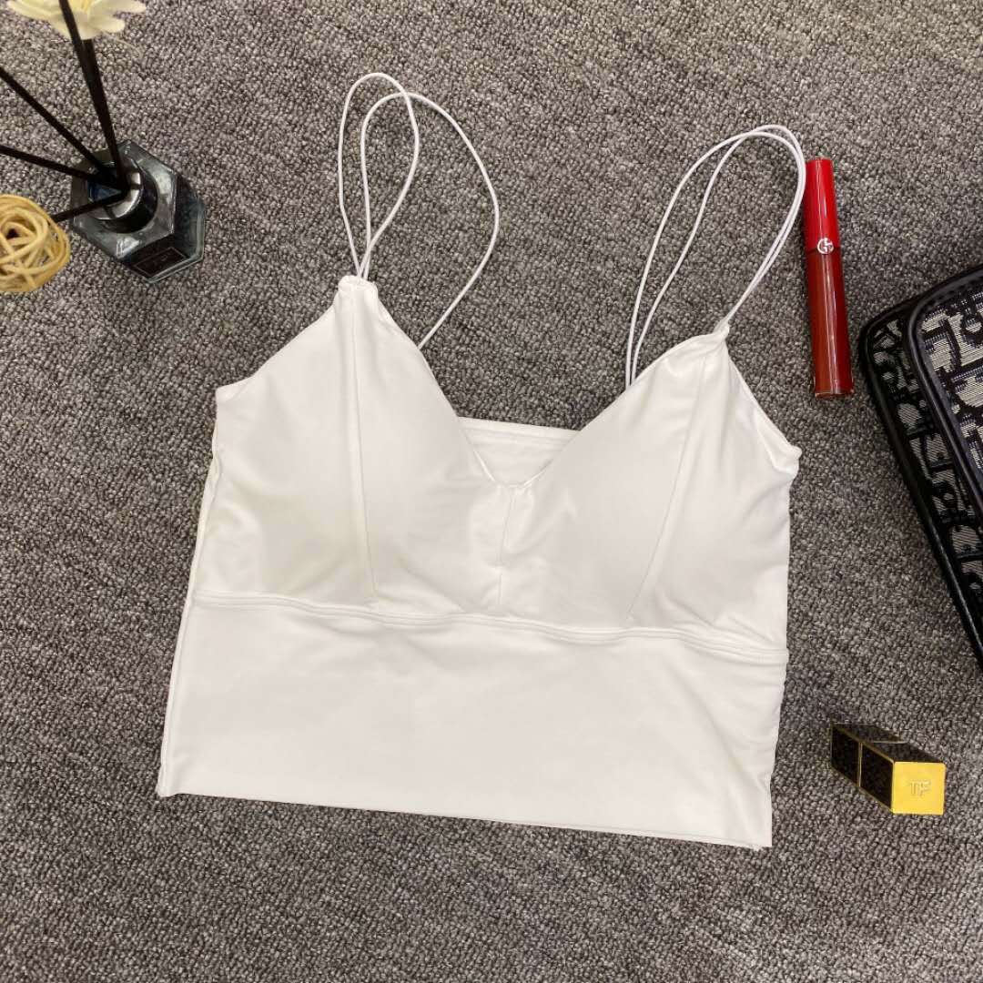 标题:冰丝卡卡背心女细带V领裹胸美背吊带抹胸带胸垫女士内衣外搭内穿