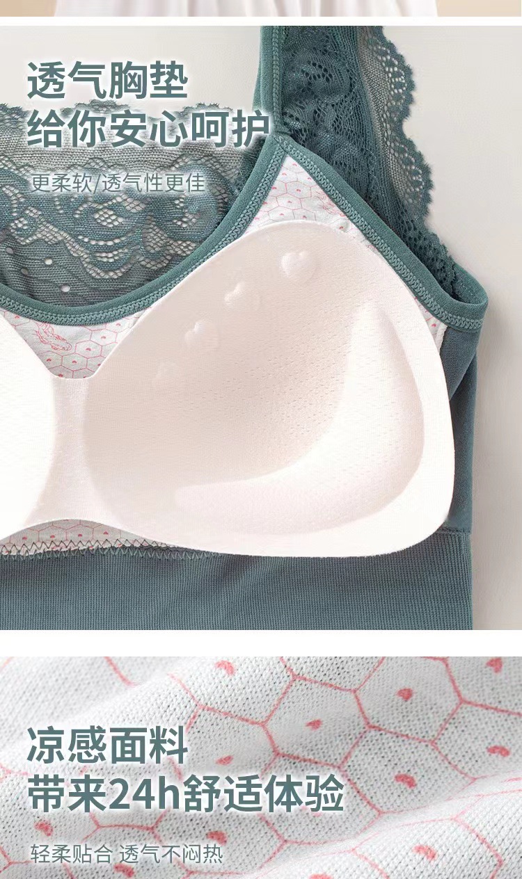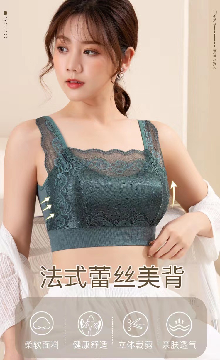 标题:新款性感蕾丝背心宽肩带美背文胸无痕无钢圈聚拢防下垂抹胸内衣女