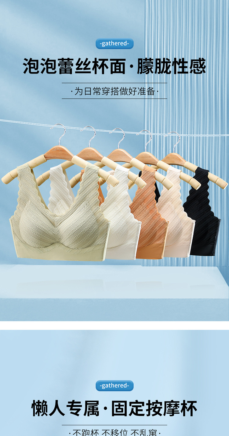 标题:夏季无痕冰丝亲氧38蕾丝裸感背心式内衣聚拢无钢圈美背上托文胸女