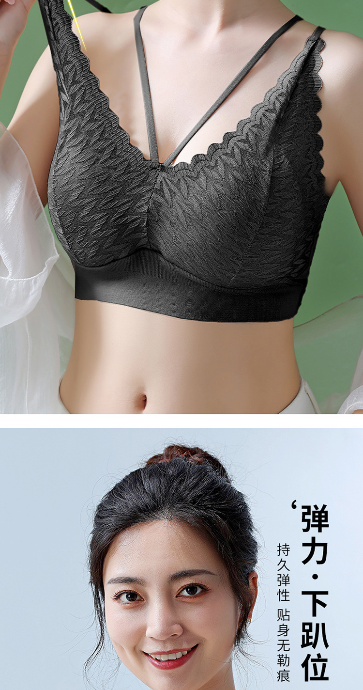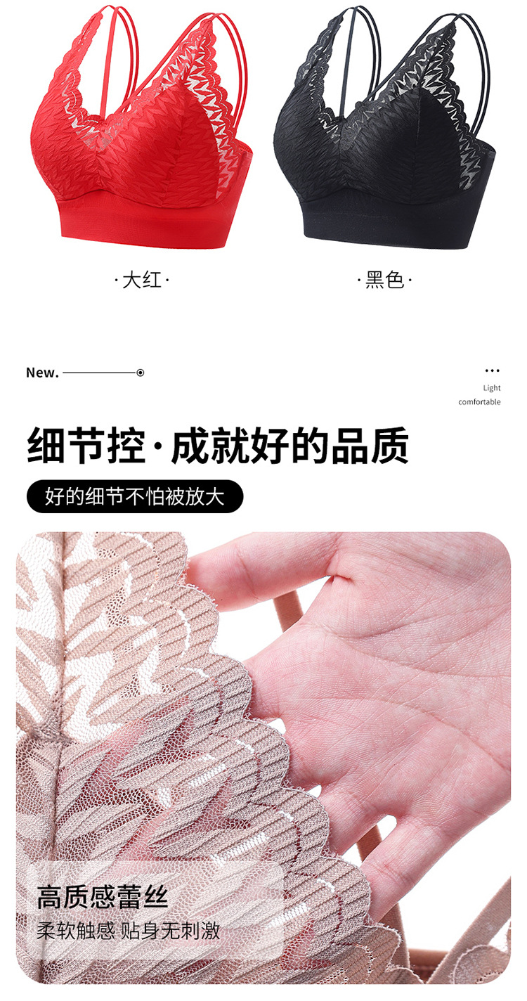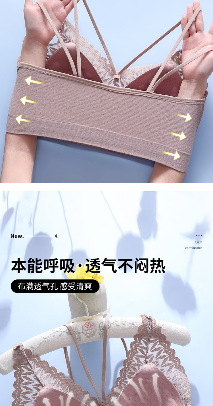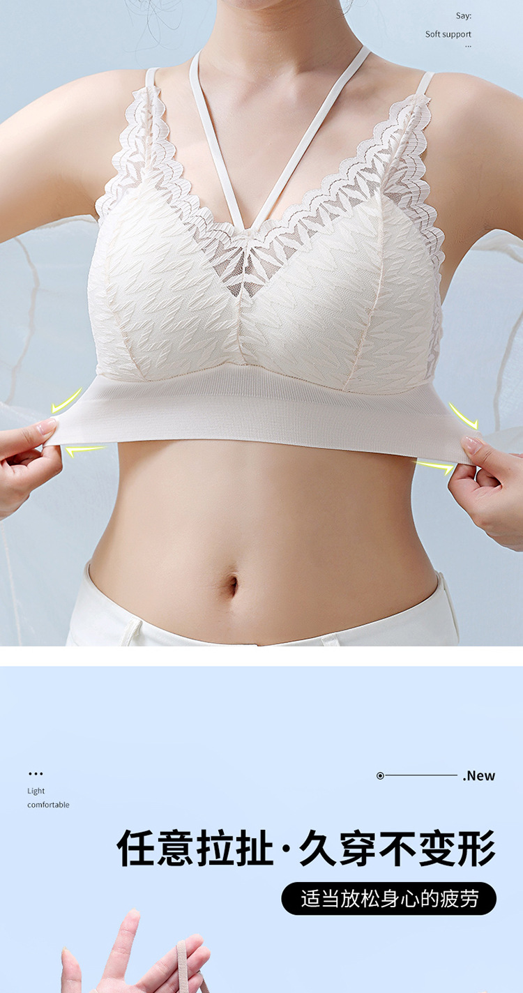 标题:2023新款蕾丝美背抹胸法式吊脖V领纯欲聚拢无钢圈收副乳无缝内衣