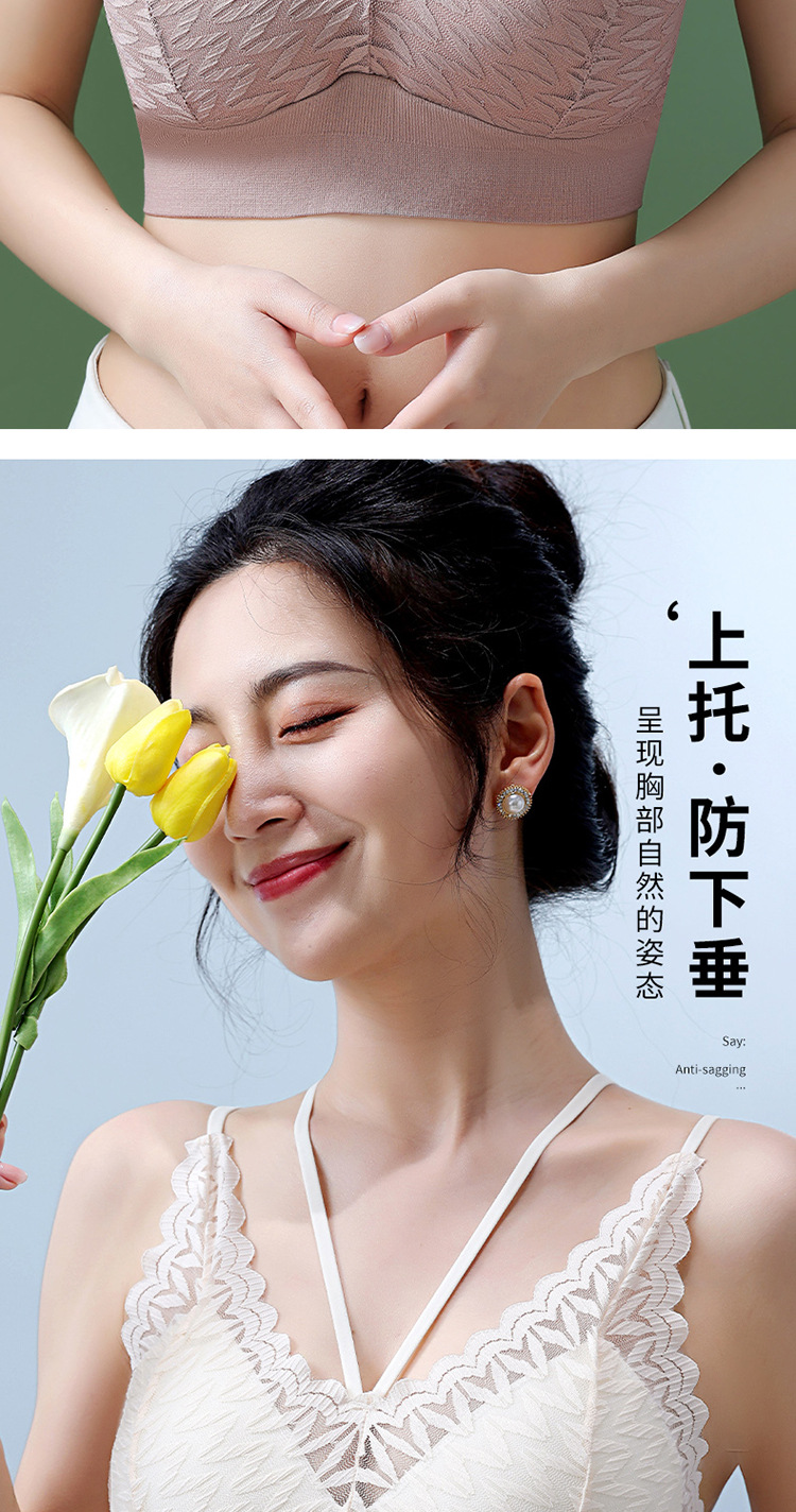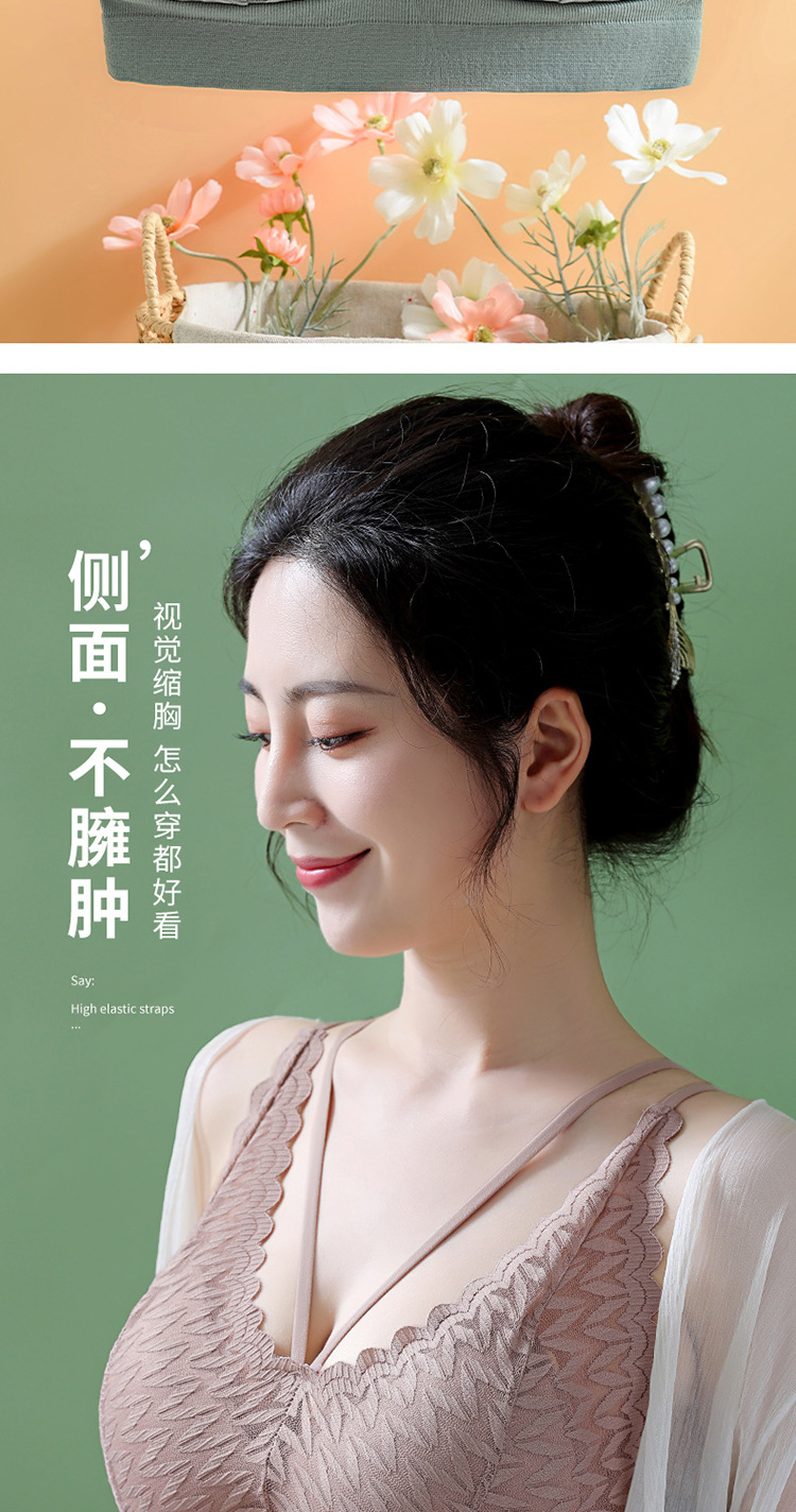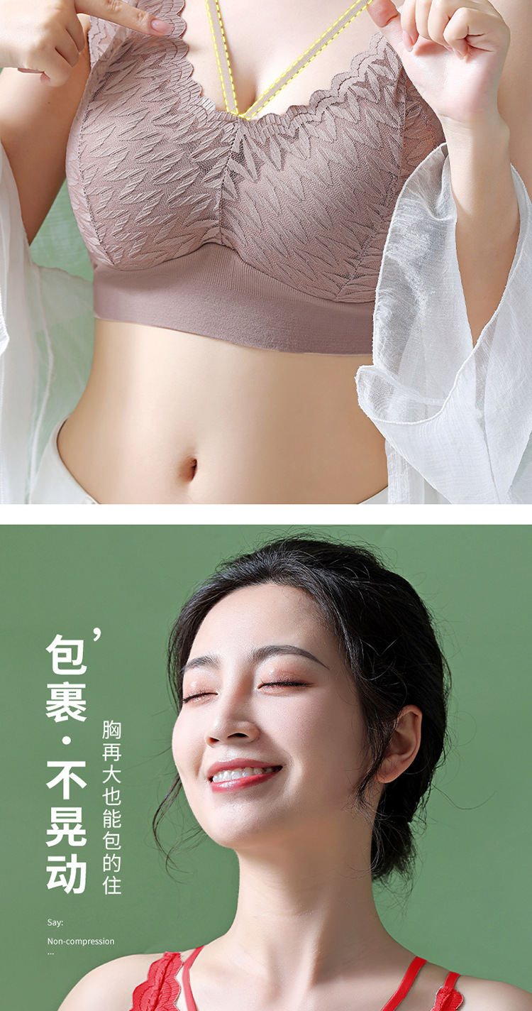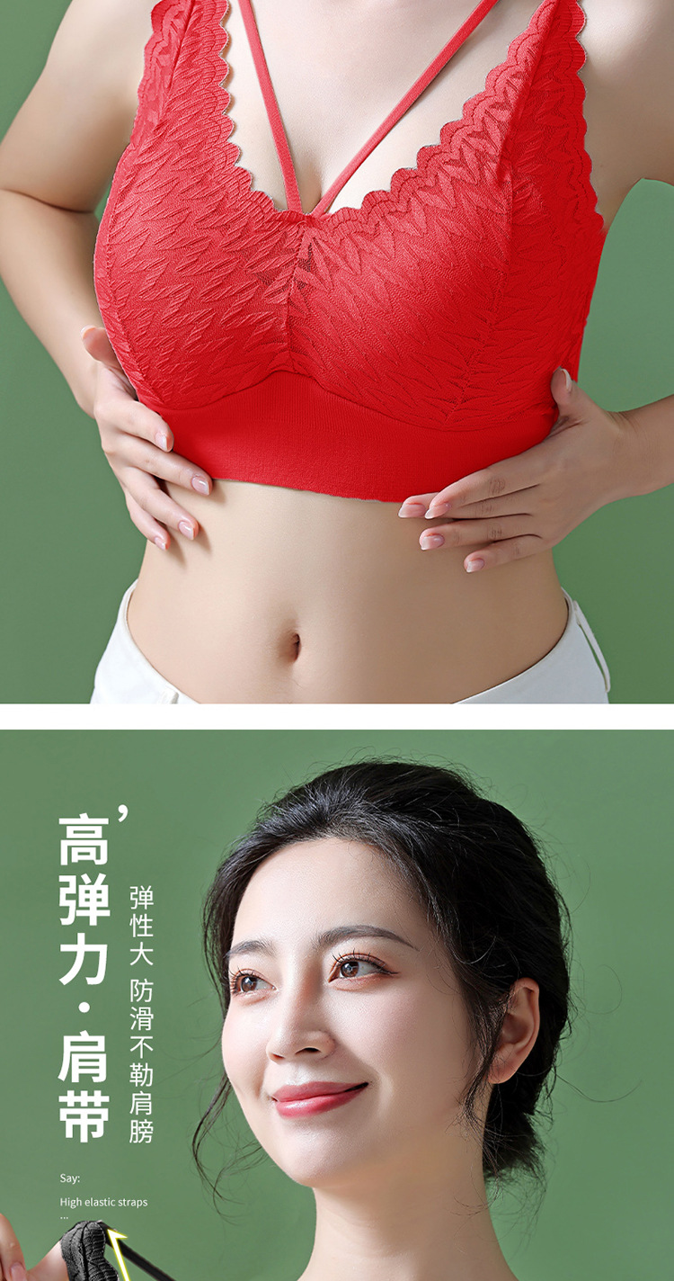 标题:2023新款蕾丝美背抹胸法式吊脖V领纯欲聚拢无钢圈收副乳无缝内衣
