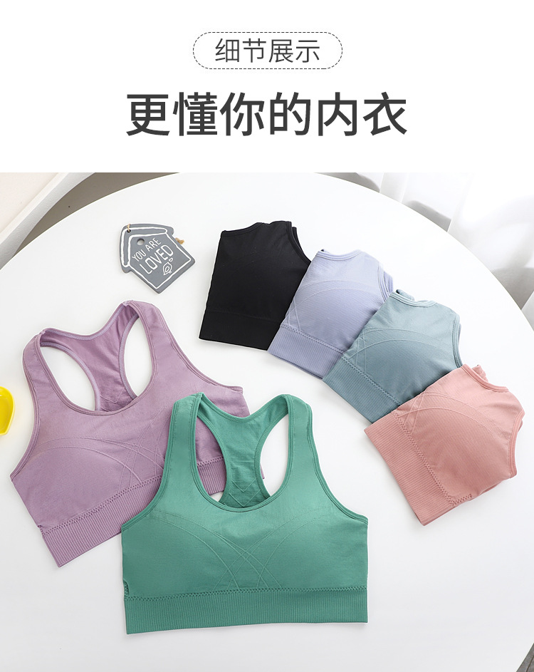 标题:跨境无缝运动内衣女健身文胸聚拢防震背心透气裹胸工字外穿美背女