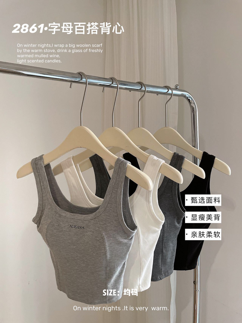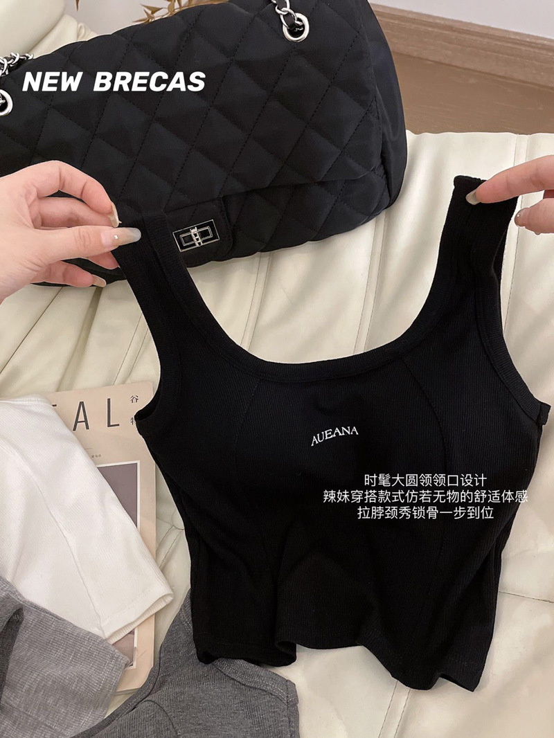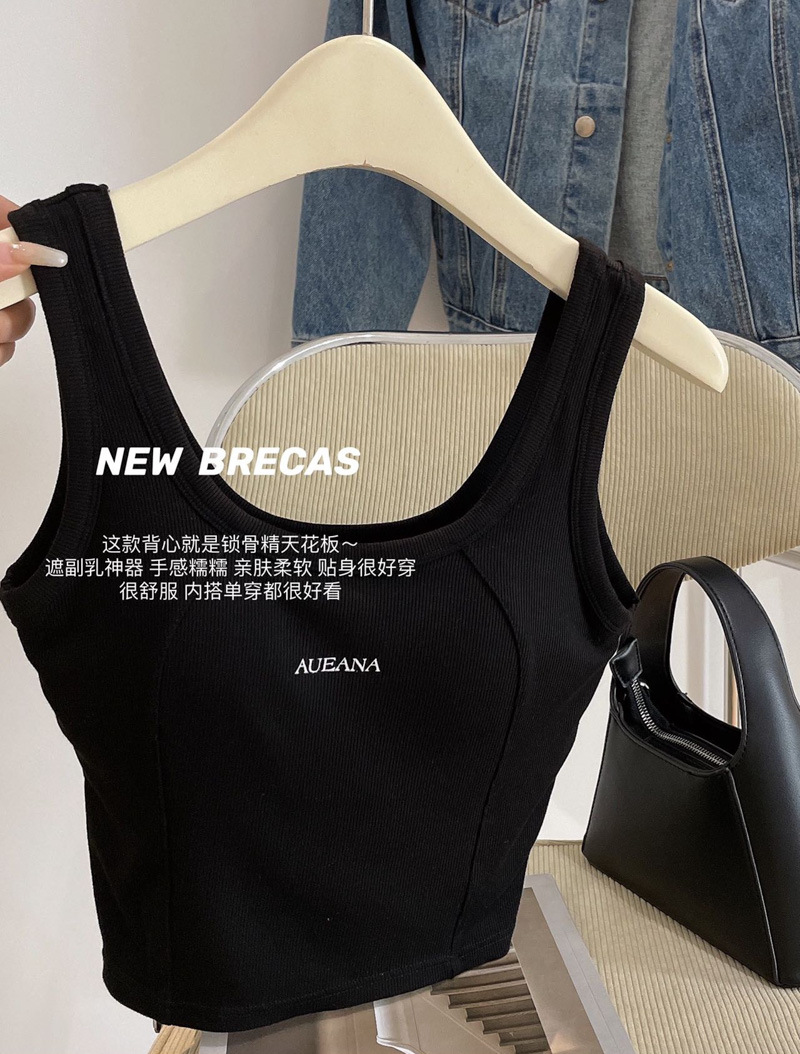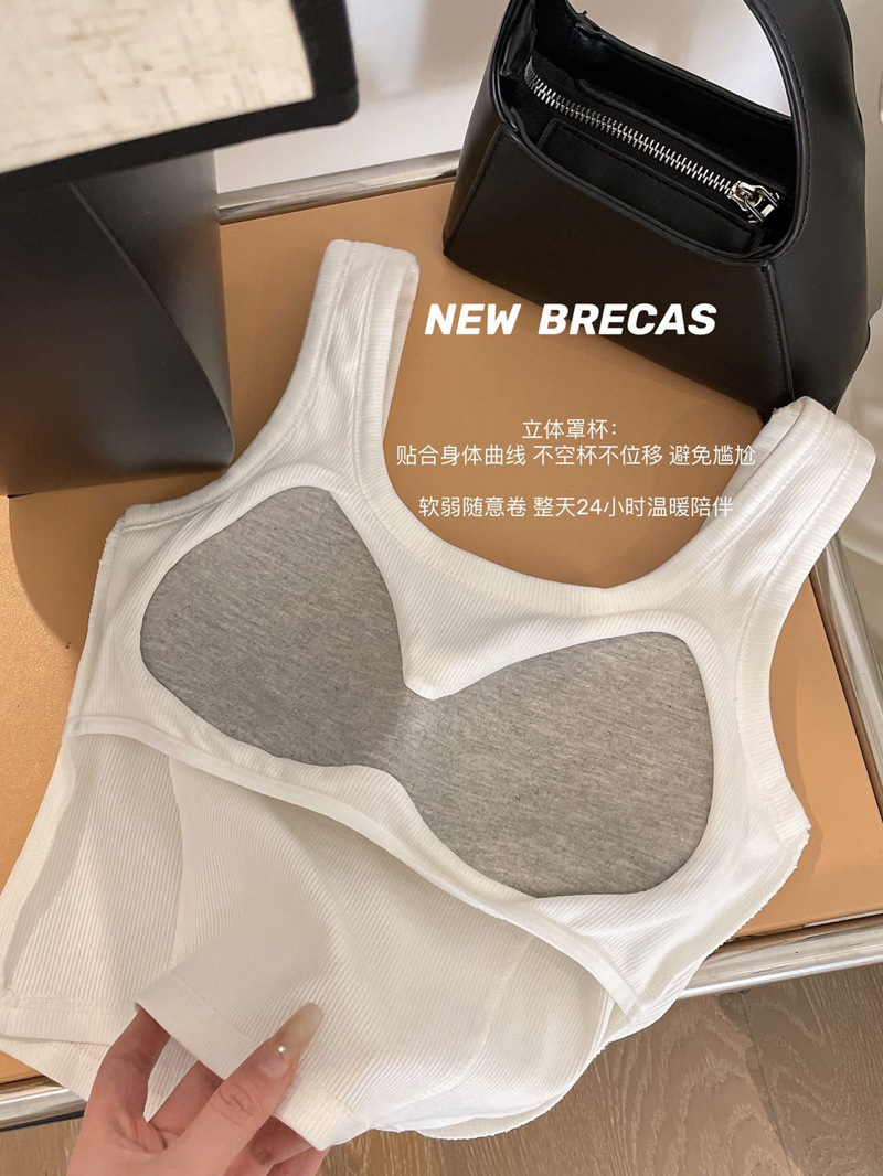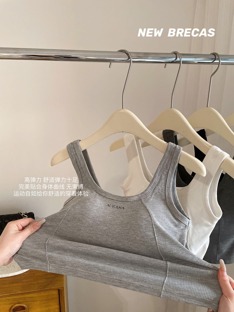 标题:纯棉螺纹背心女内搭针织打底带胸垫一体式文胸字母外穿内衣