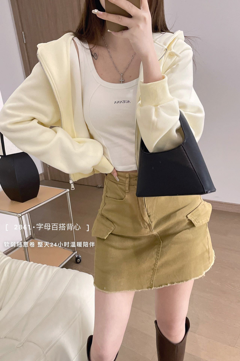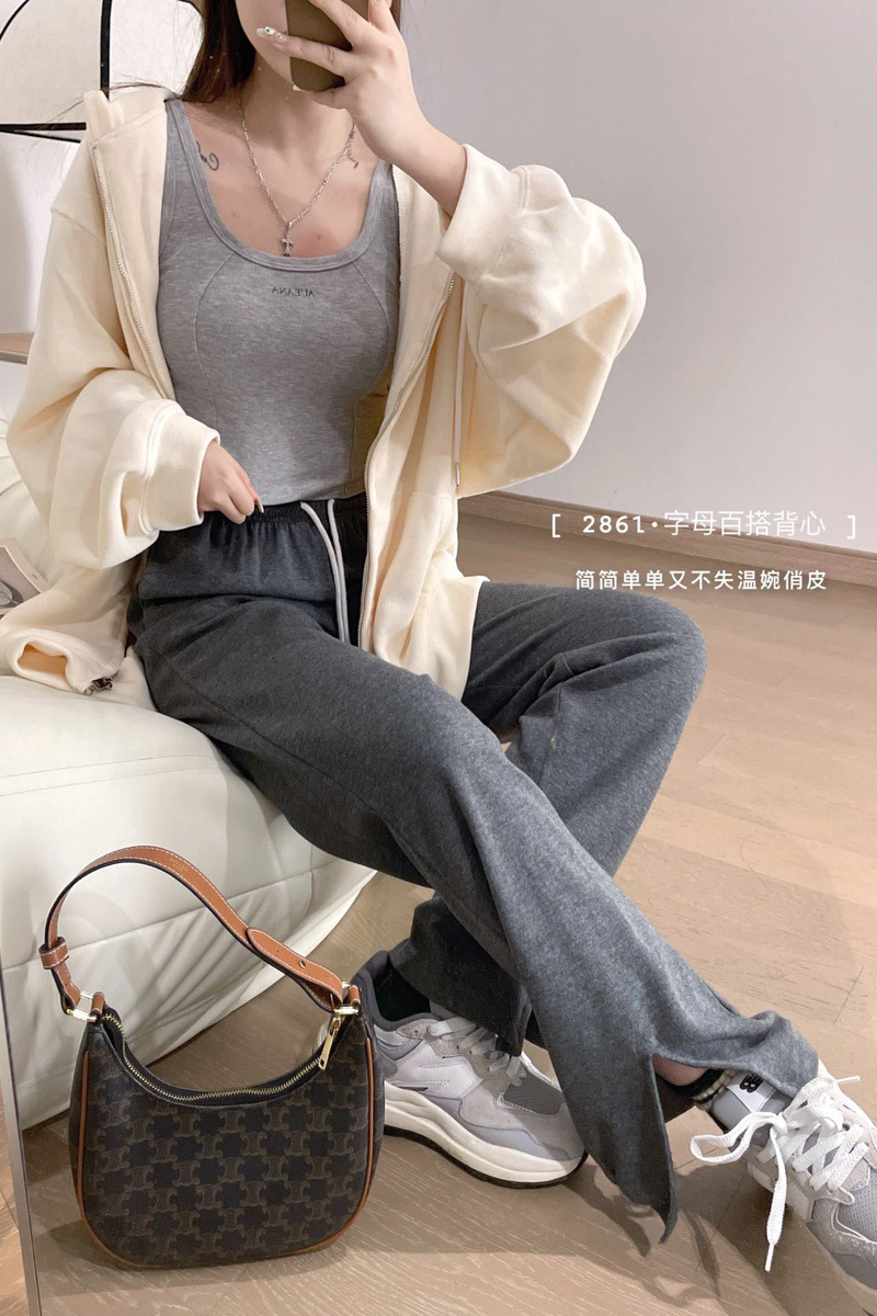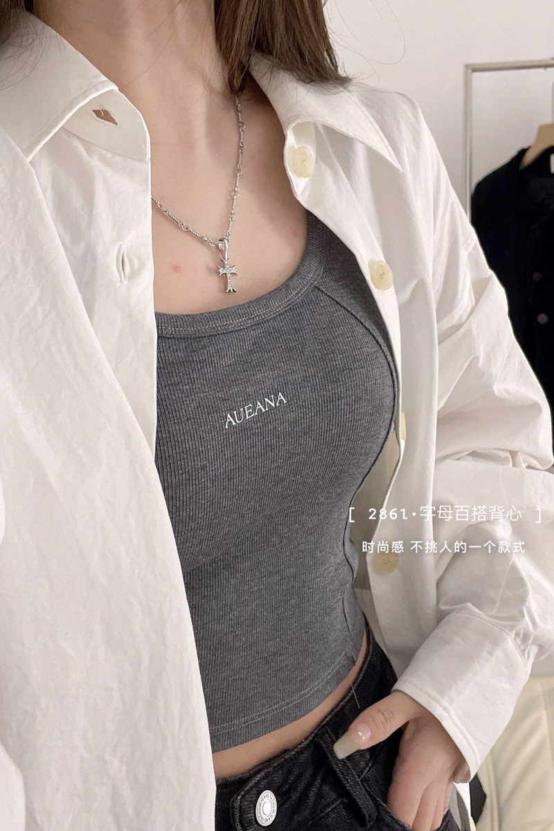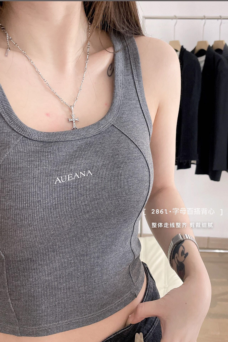 标题:纯棉螺纹背心女内搭针织打底带胸垫一体式文胸字母外穿内衣