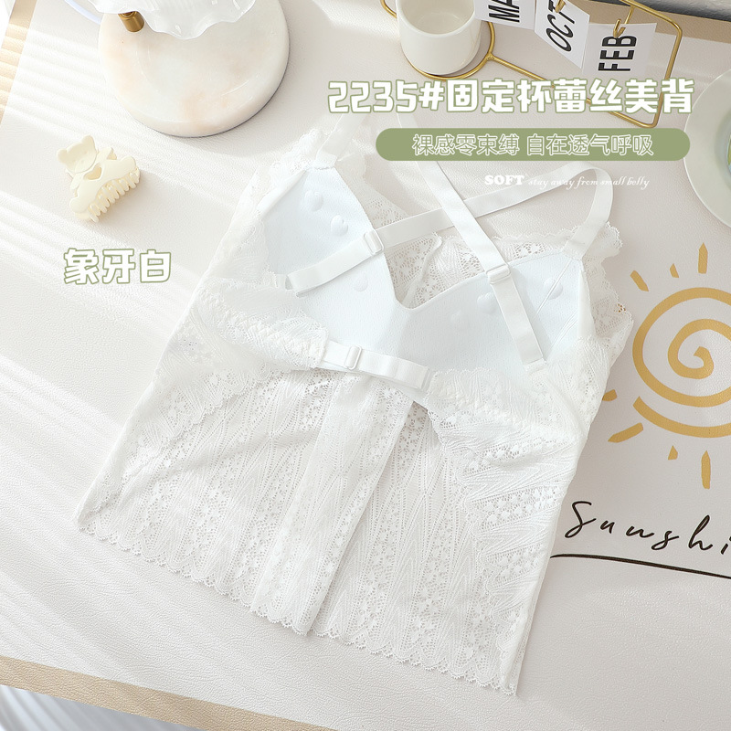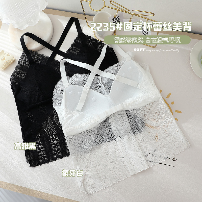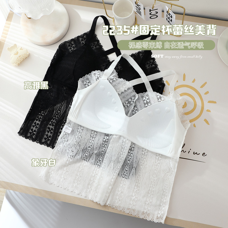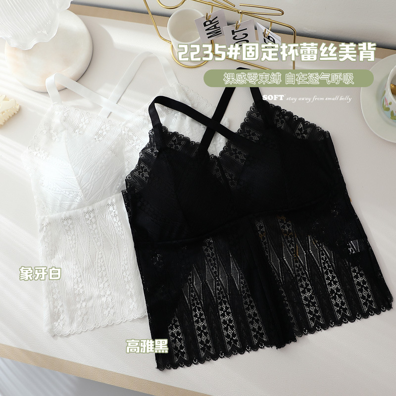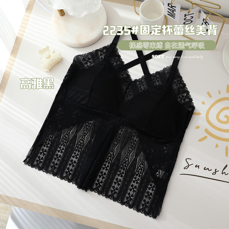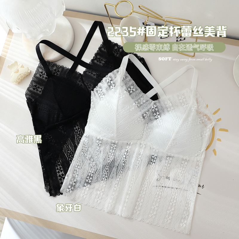 标题:蕾丝美背性感交叉吊带打底内搭薄款背心女一体式胸垫内衣
