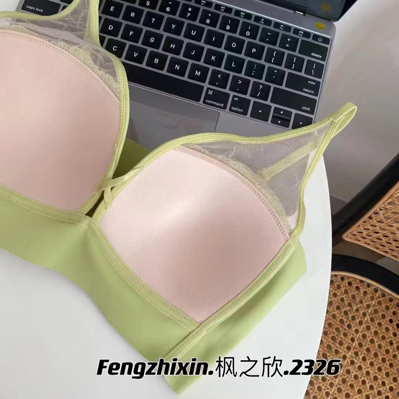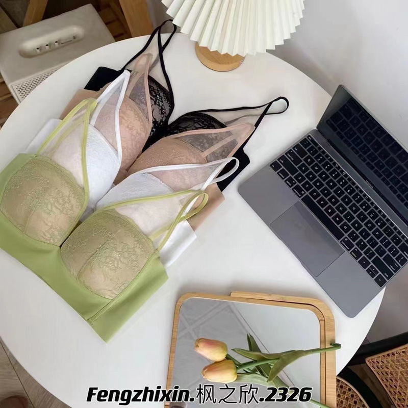 标题:蕾丝美背吊带背心女一体式胸垫无钢圈聚拢文胸薄款乳胶内衣收副乳