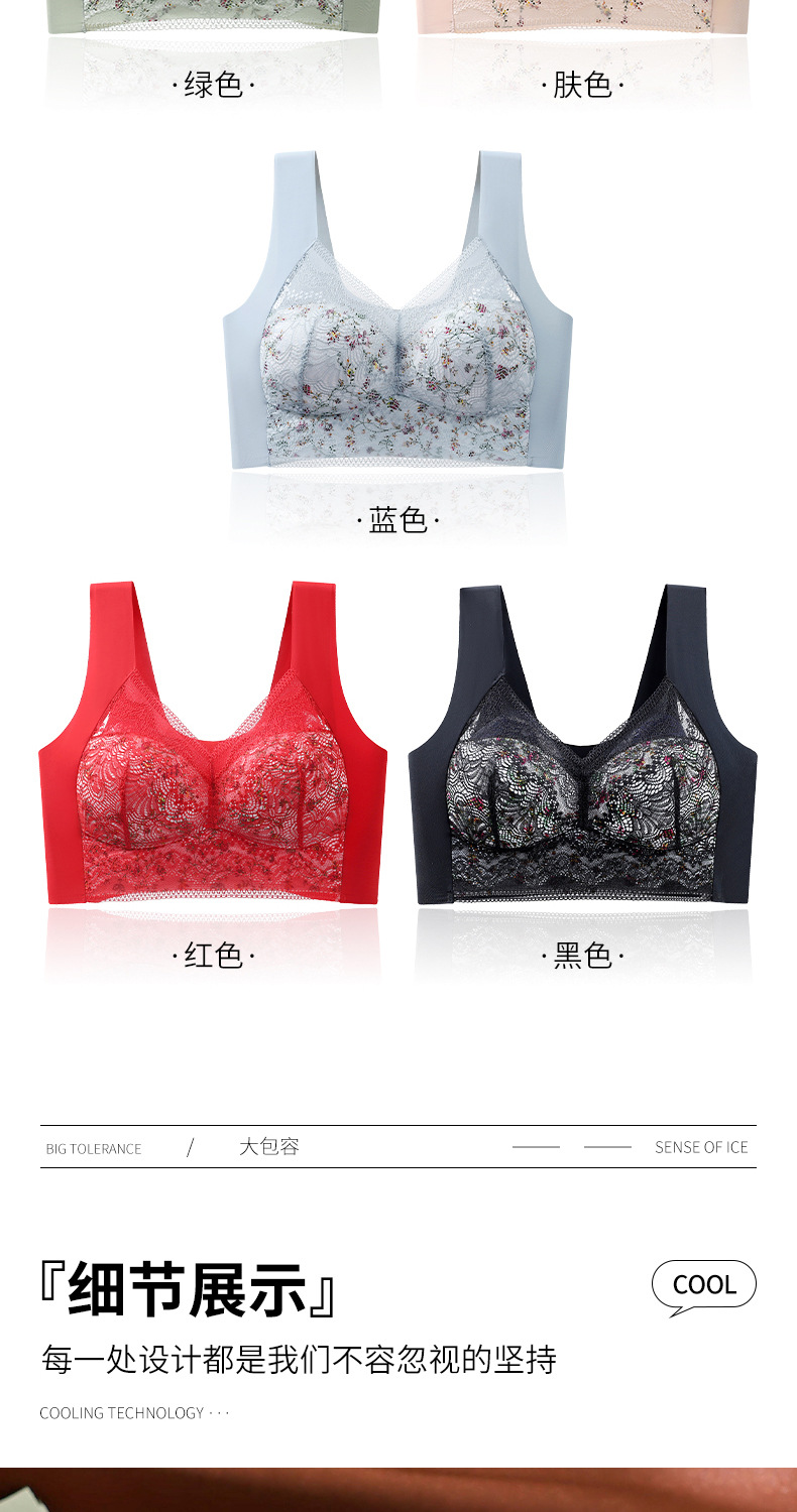 描述:面料名称:蕾丝,主面料成分:锦纶,产品类别:裹胸/抹胸,货号:9911#,功能:聚拢,无痕,美背,产地:汕头,衣长:及胸,颜色:绿色,肤色,蓝色,黑色,大红,尺码:M码(80-100斤),L码(100-120斤),2L码(120-140斤),3L码(140-160斤),4L(160-175斤),5L(175-190斤),是否跨境出口专供货源:是,上市时间:2023年春季,适用年龄段:青年(18-40周岁),款式:背心式,风格:性感风,模杯类型:薄模杯,罩杯型:3/4罩杯,主面料成分含量:80%(含)-90%(不含),