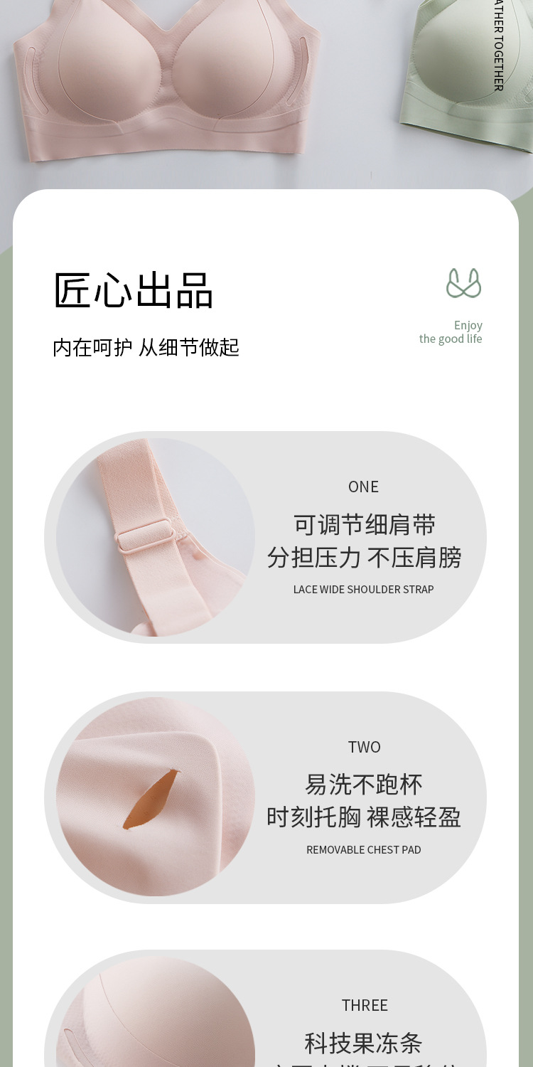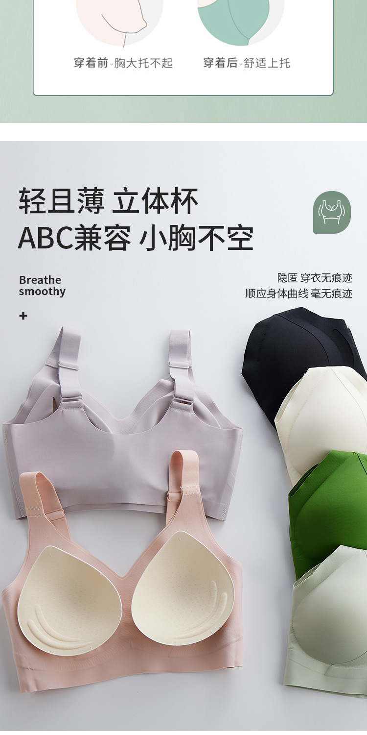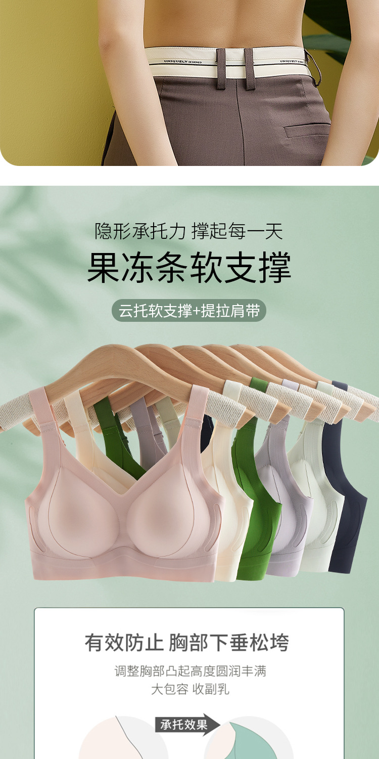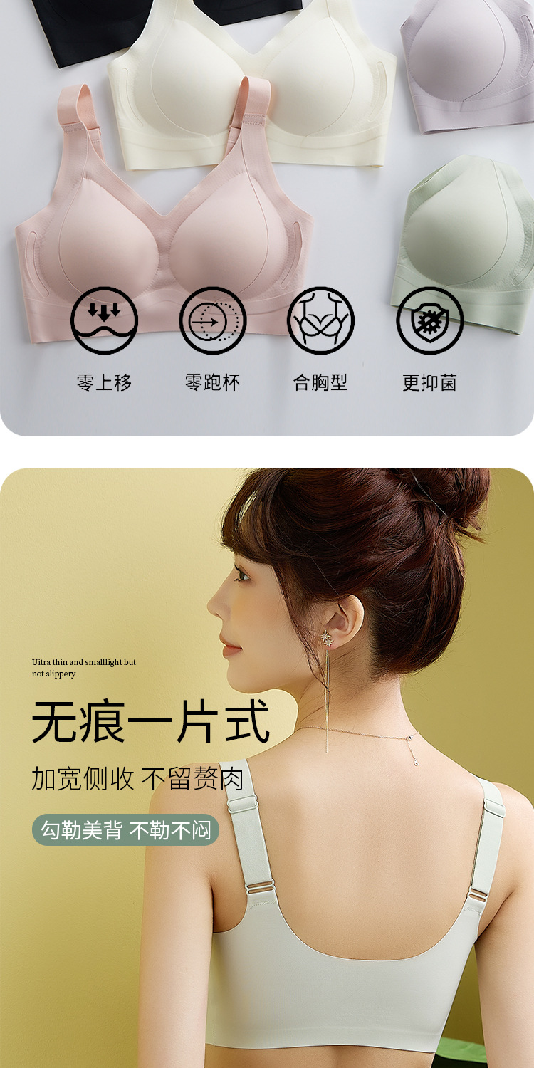 标题:果冻条氧肤2.0无痕内衣女调整型裸感聚拢上托一片式无钢圈文胸罩