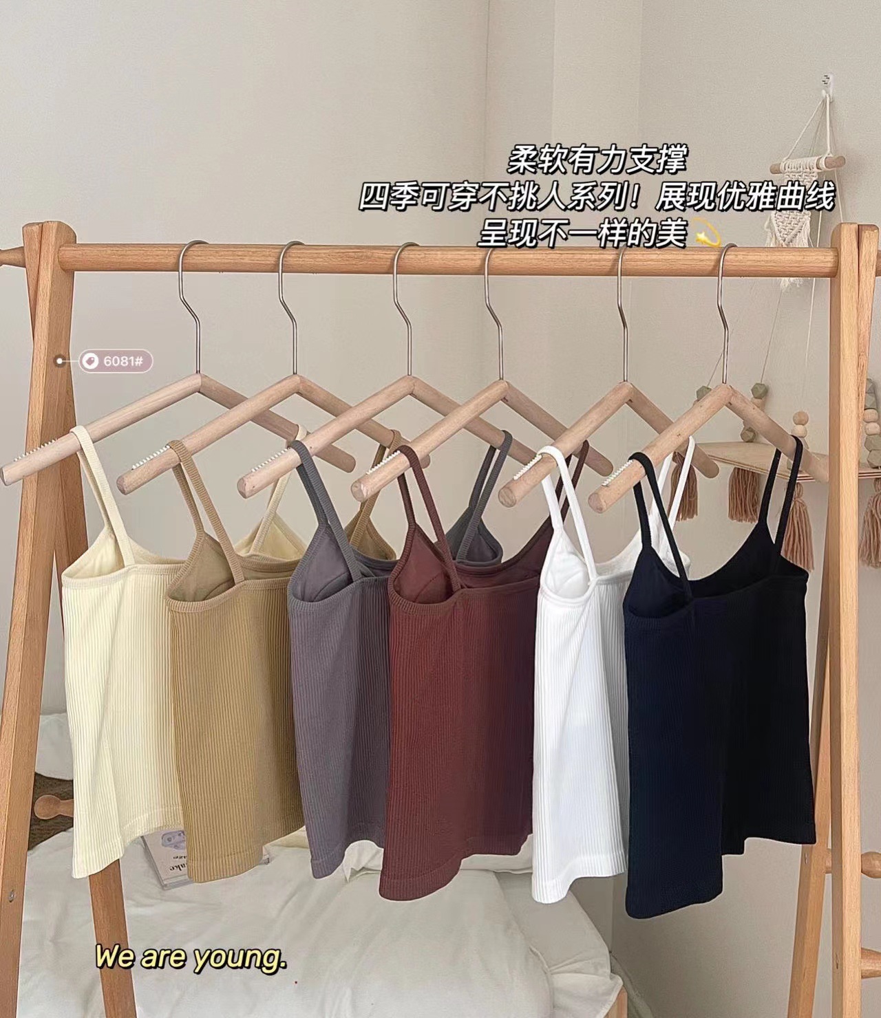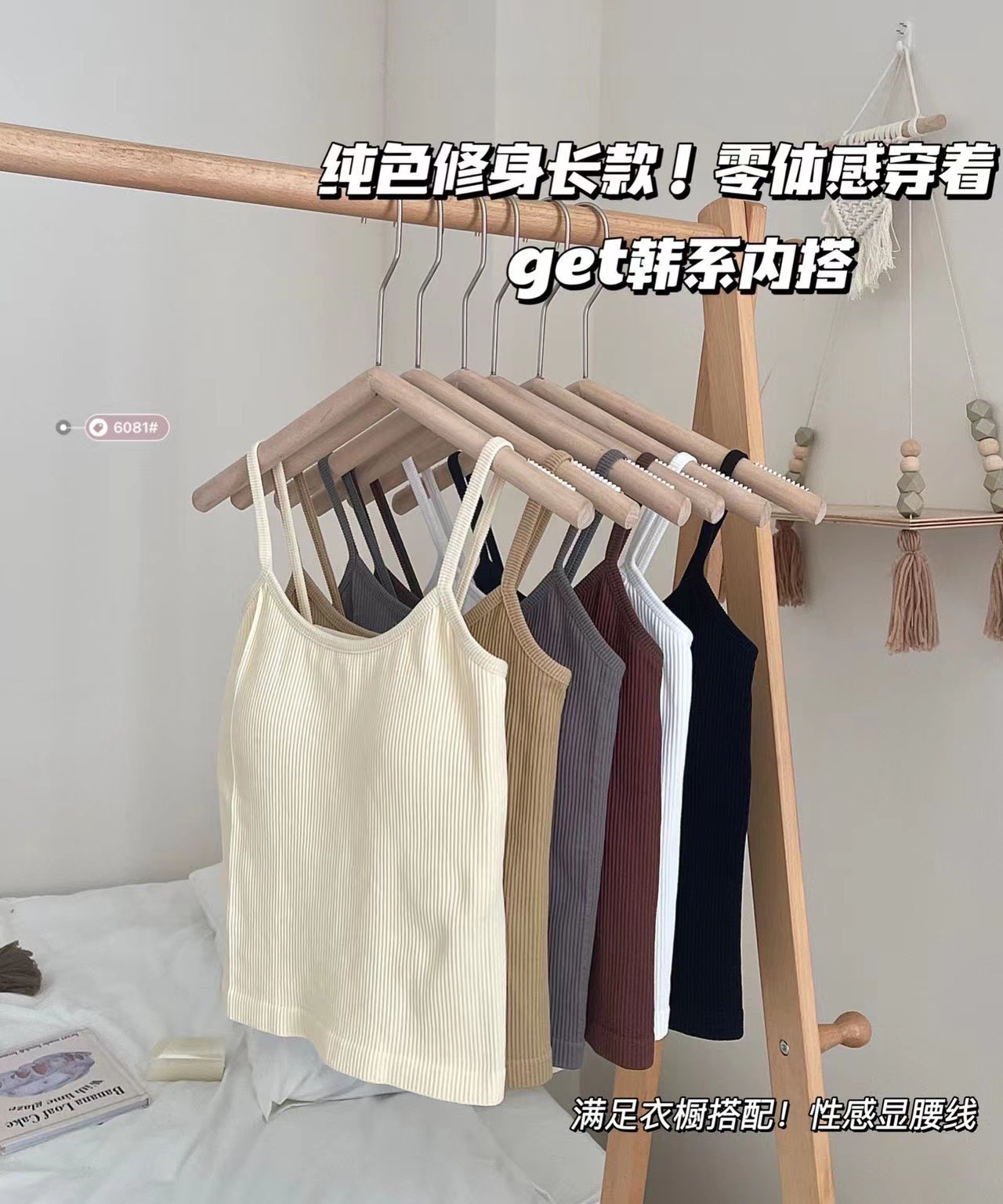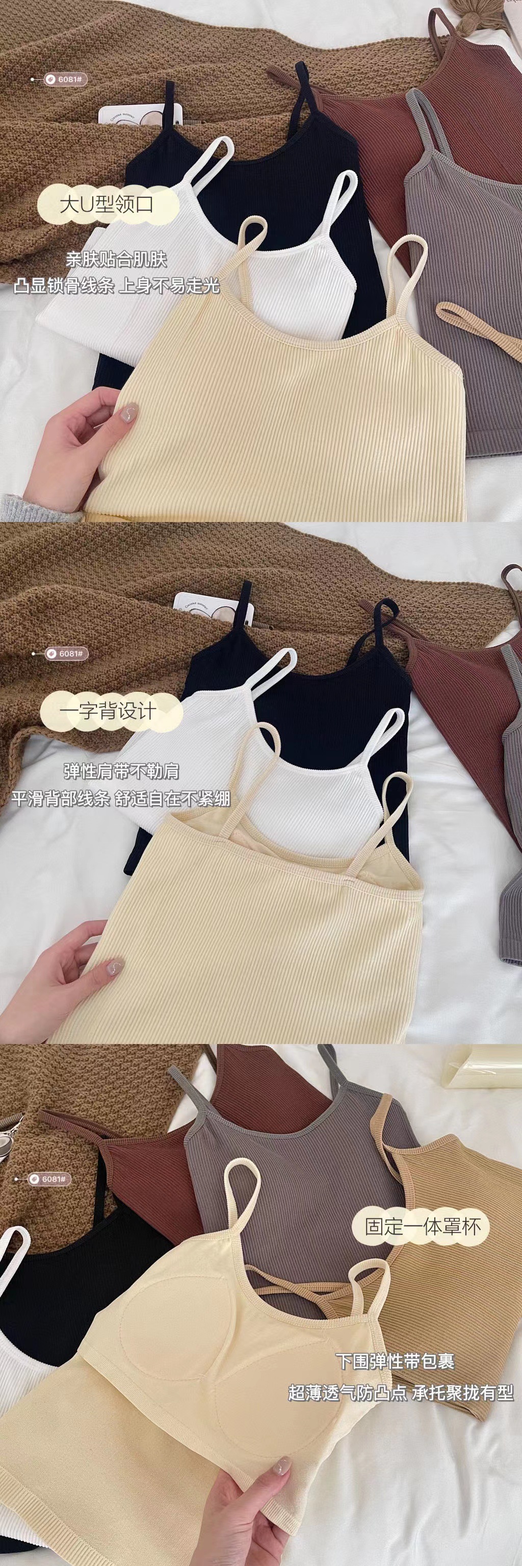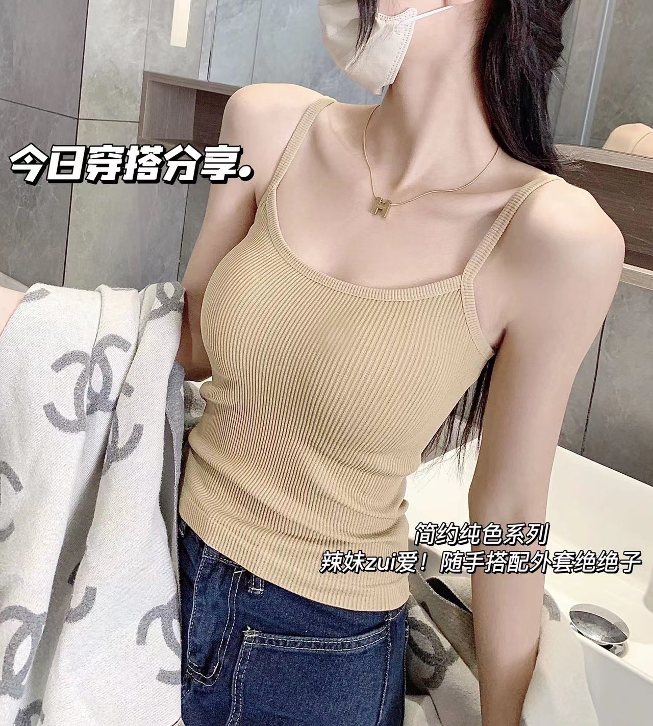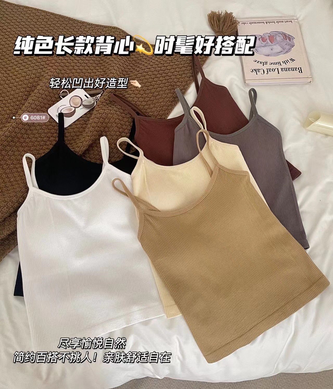 标题:无缝美背螺纹吊带长款背心女固定罩杯内搭外穿修身百搭吊带小背心