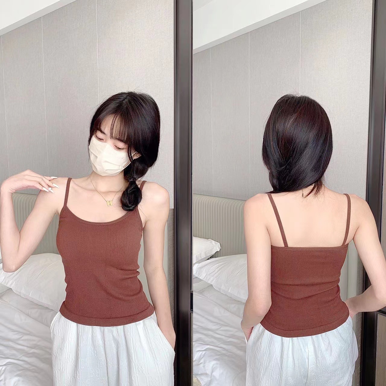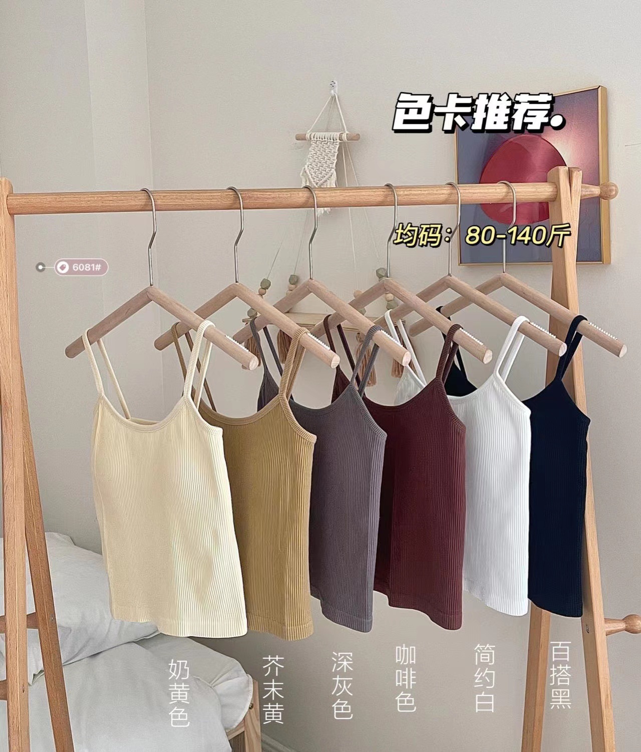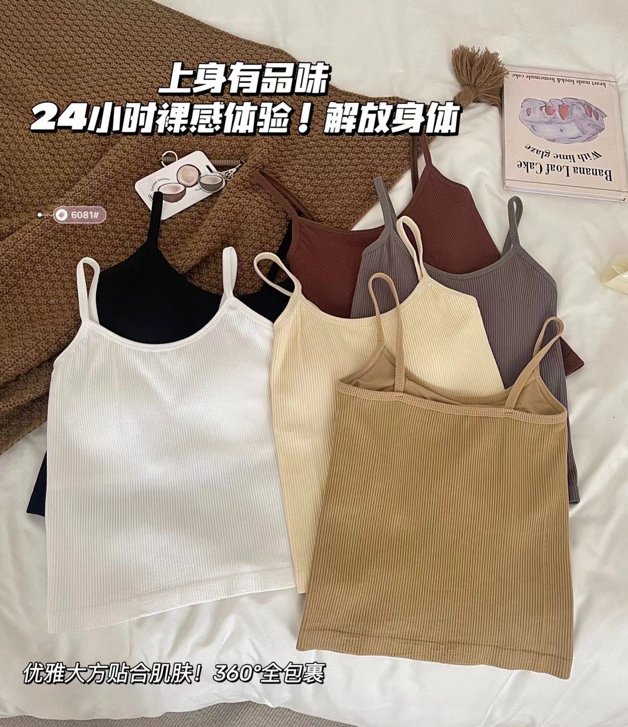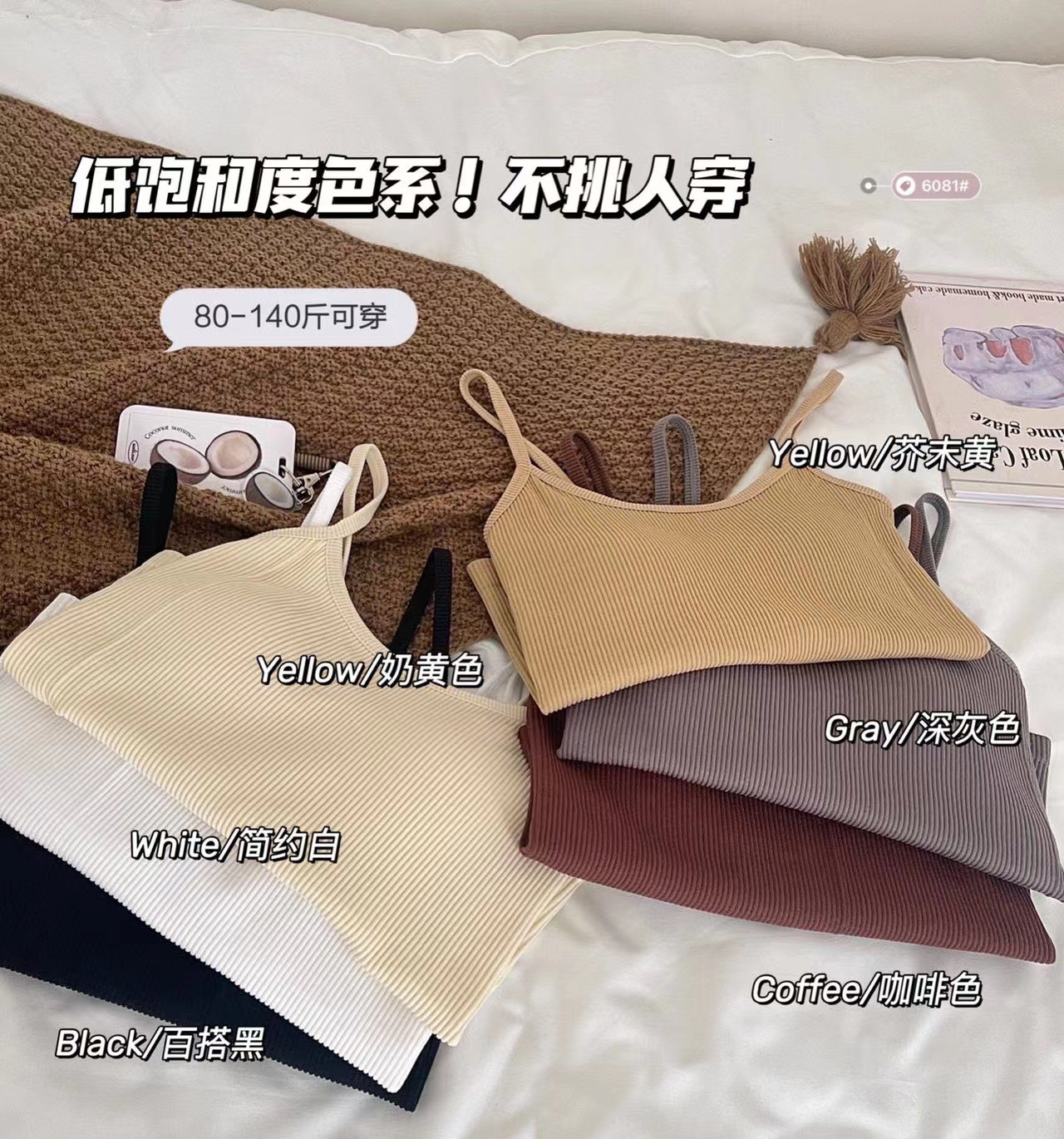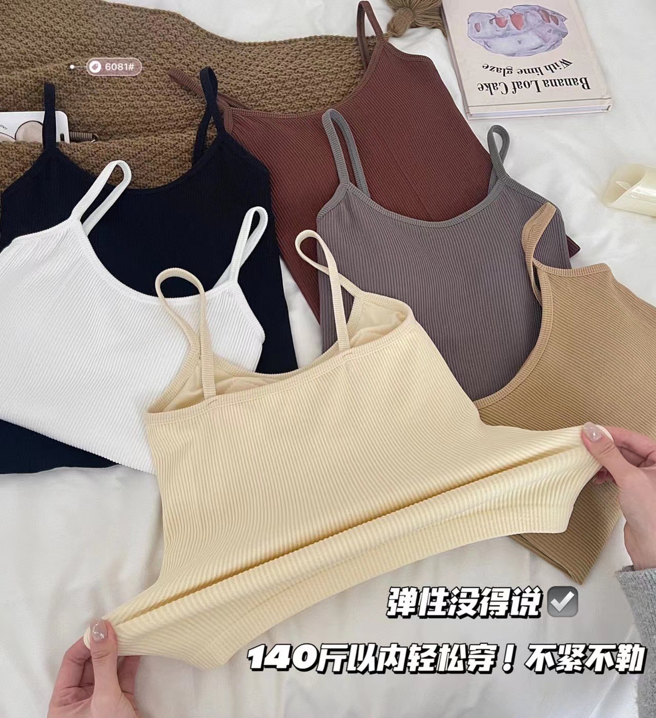 标题:无缝美背螺纹吊带长款背心女固定罩杯内搭外穿修身百搭吊带小背心