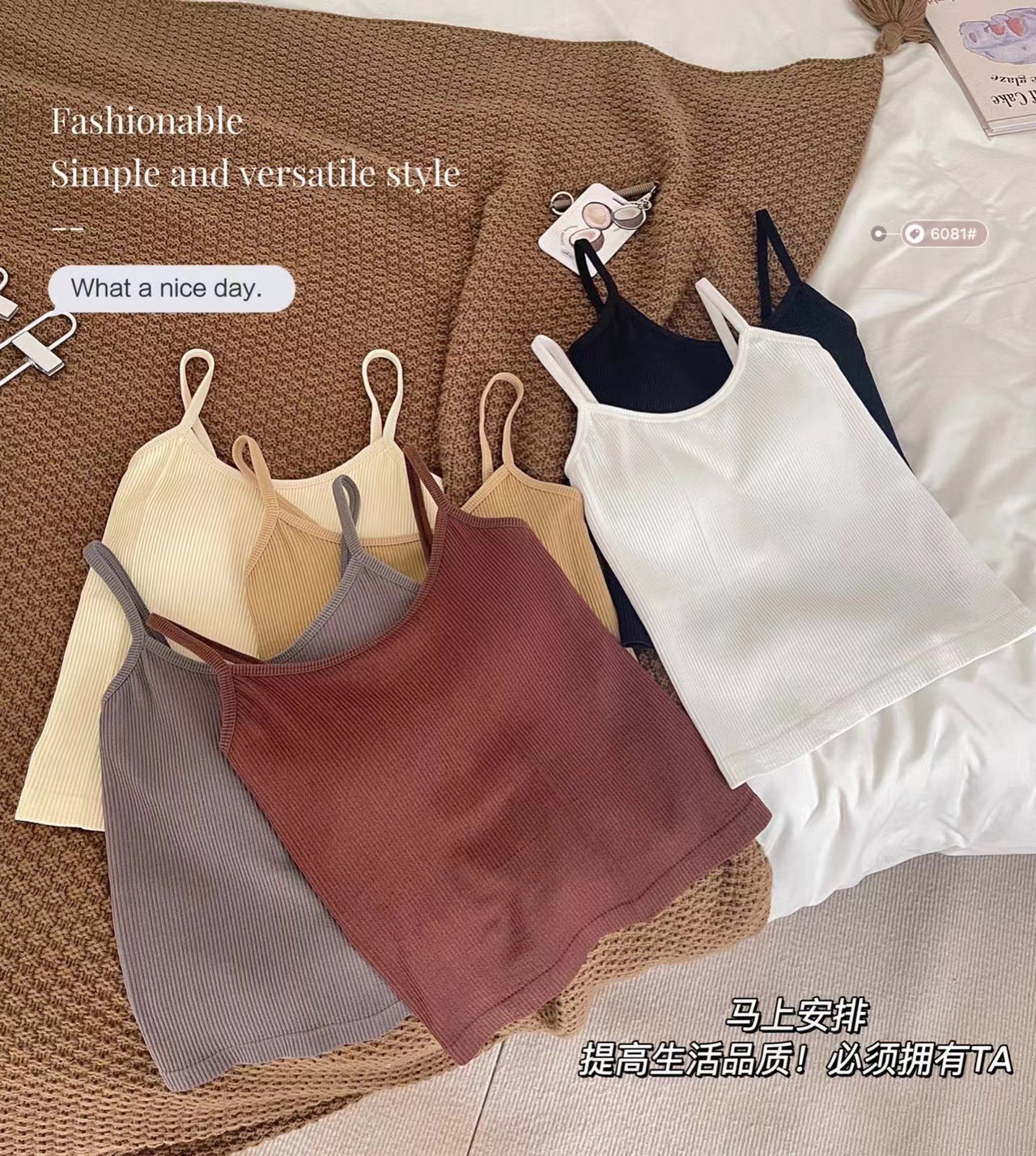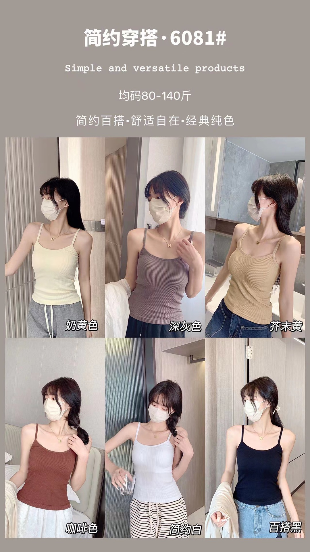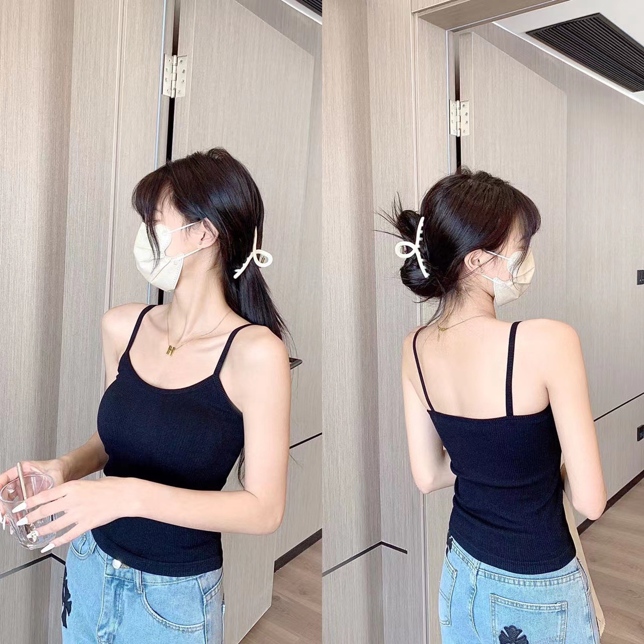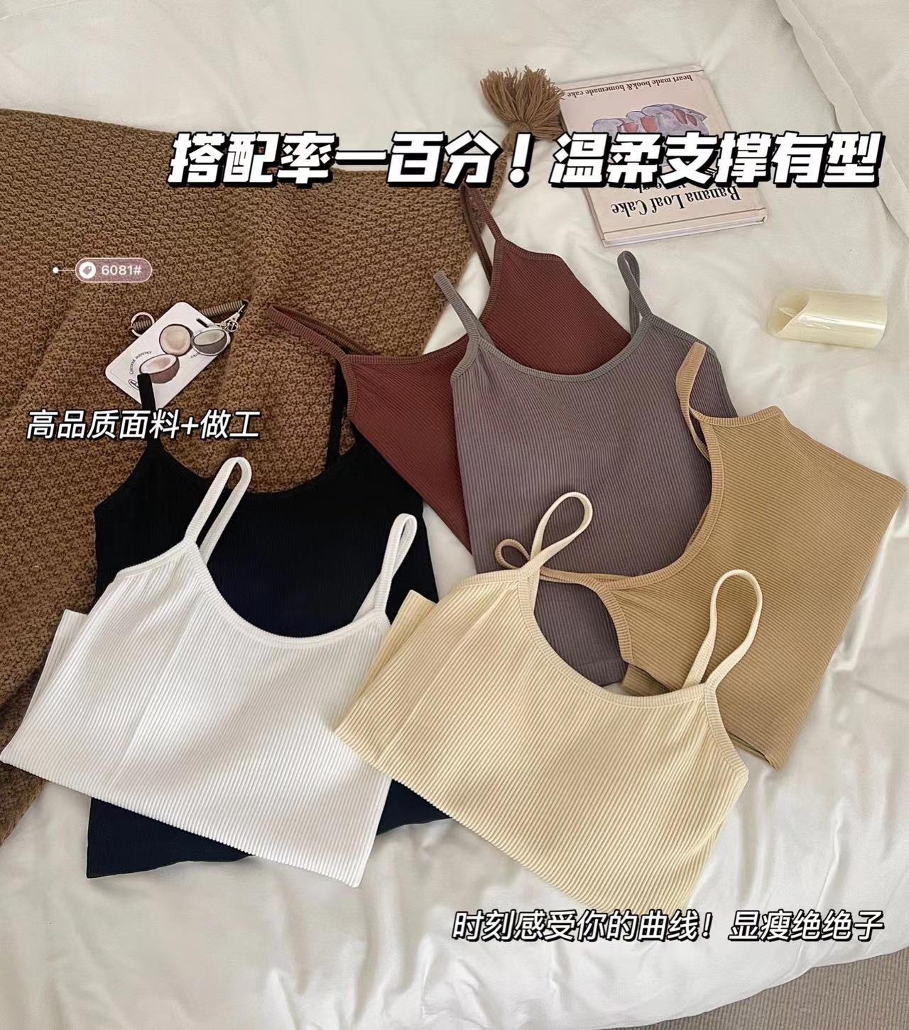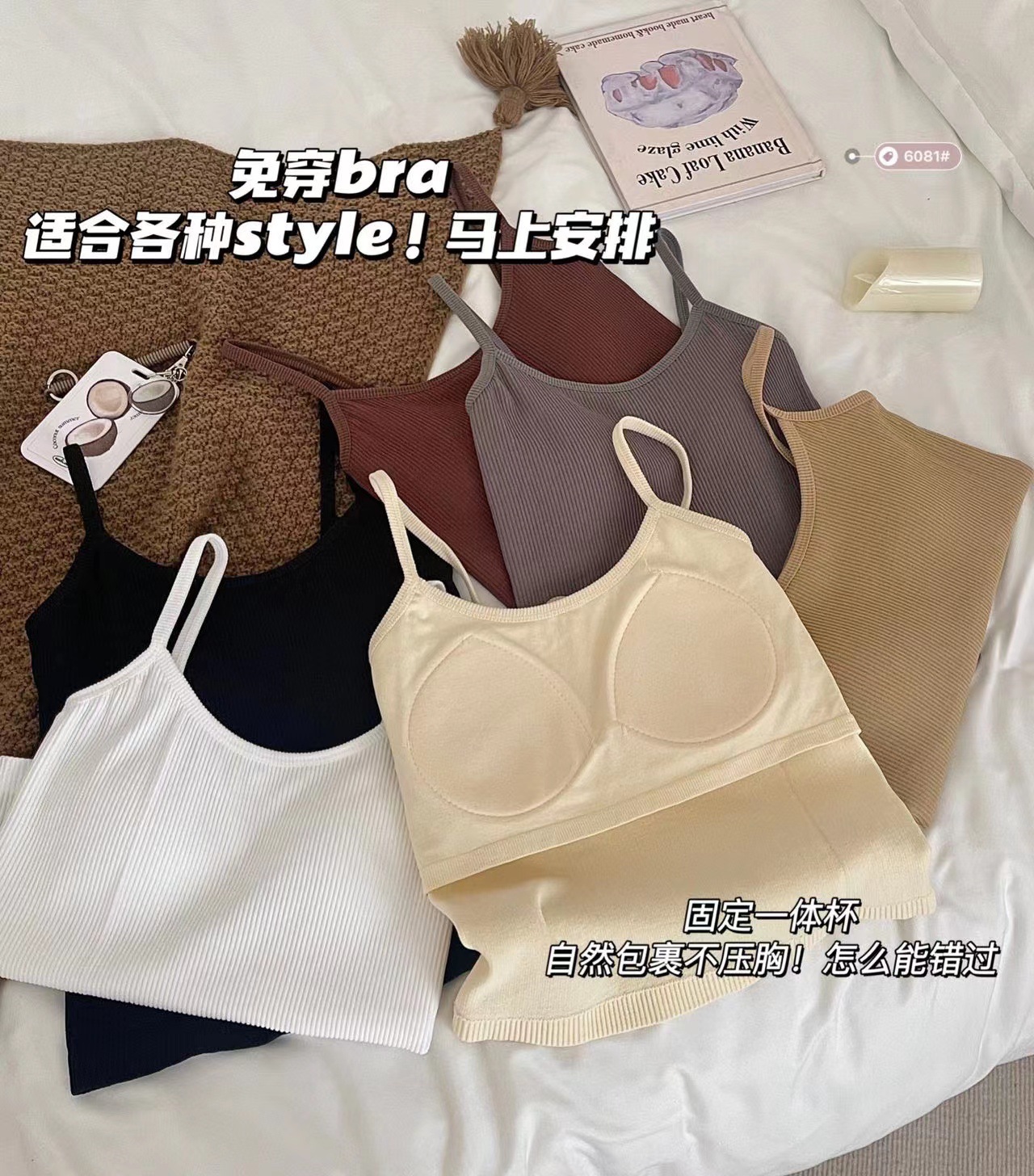 标题:无缝美背螺纹吊带长款背心女固定罩杯内搭外穿修身百搭吊带小背心