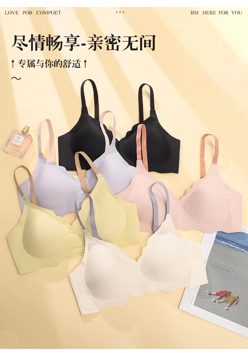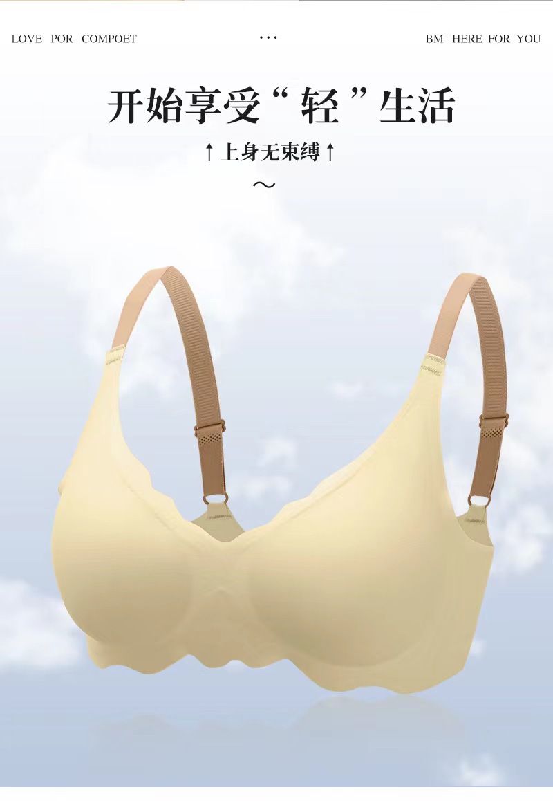 标题:水晶果冻软支撑无痕美背内衣甜美撞色肩带无钢圈女士文胸