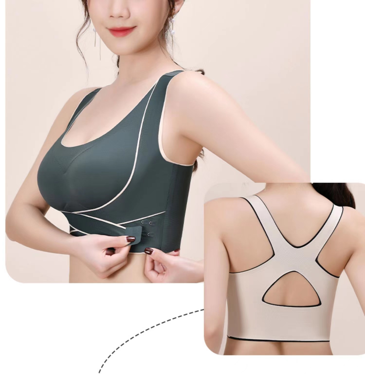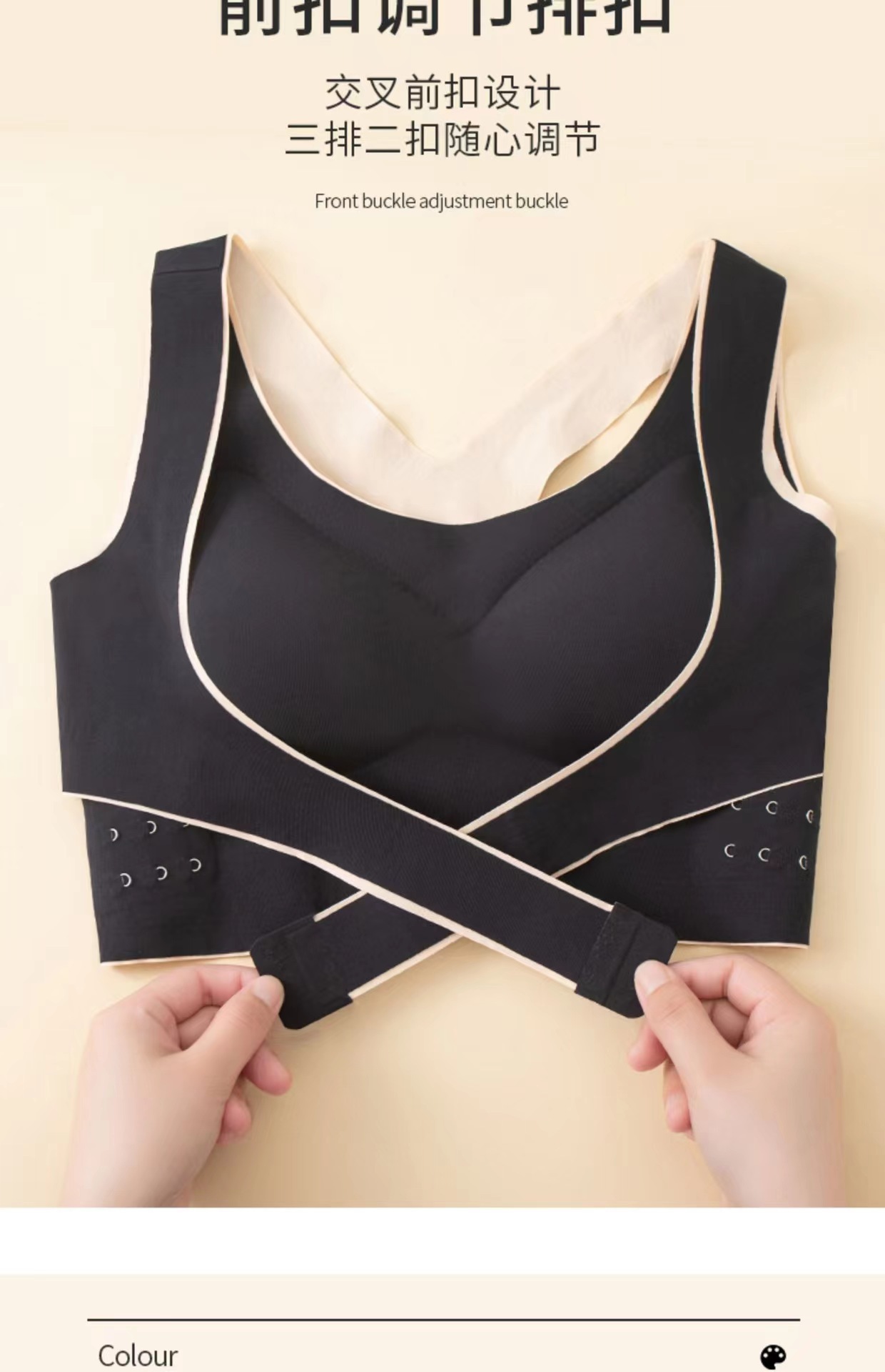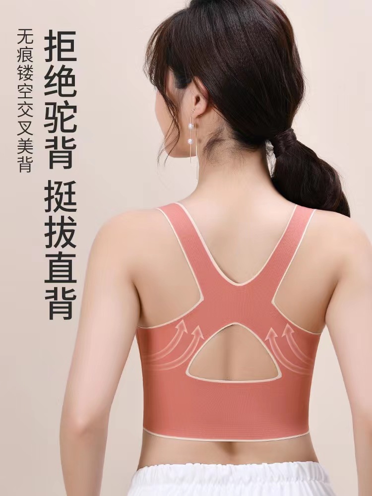 标题:新款交叉侧扣无痕美背背心大码内衣无钢圈聚拢防下垂女士运动文胸