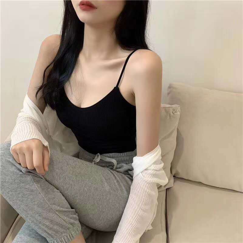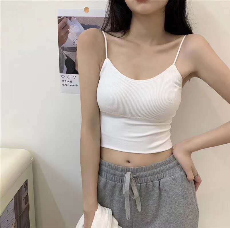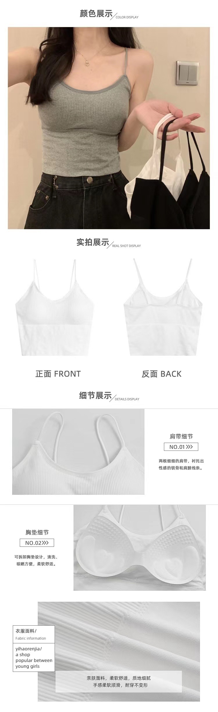 标题:白色小吊带背心女带胸垫夏外穿打底短款美背性感辣妹网红打底上衣
