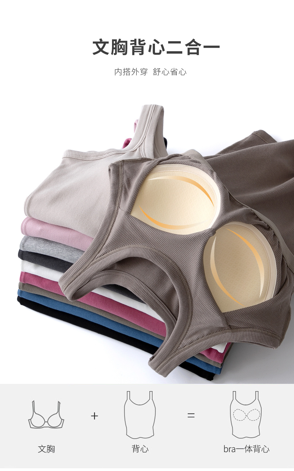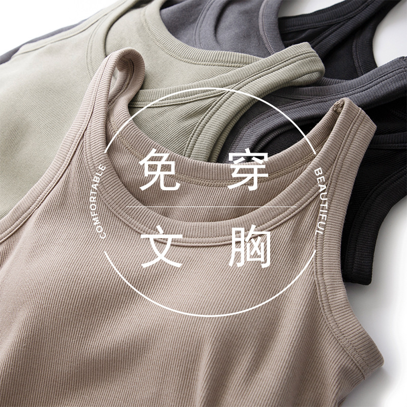 标题:背心女带胸垫一体式美背棉螺纹打底吊带夏季内搭运动文胸大码外穿