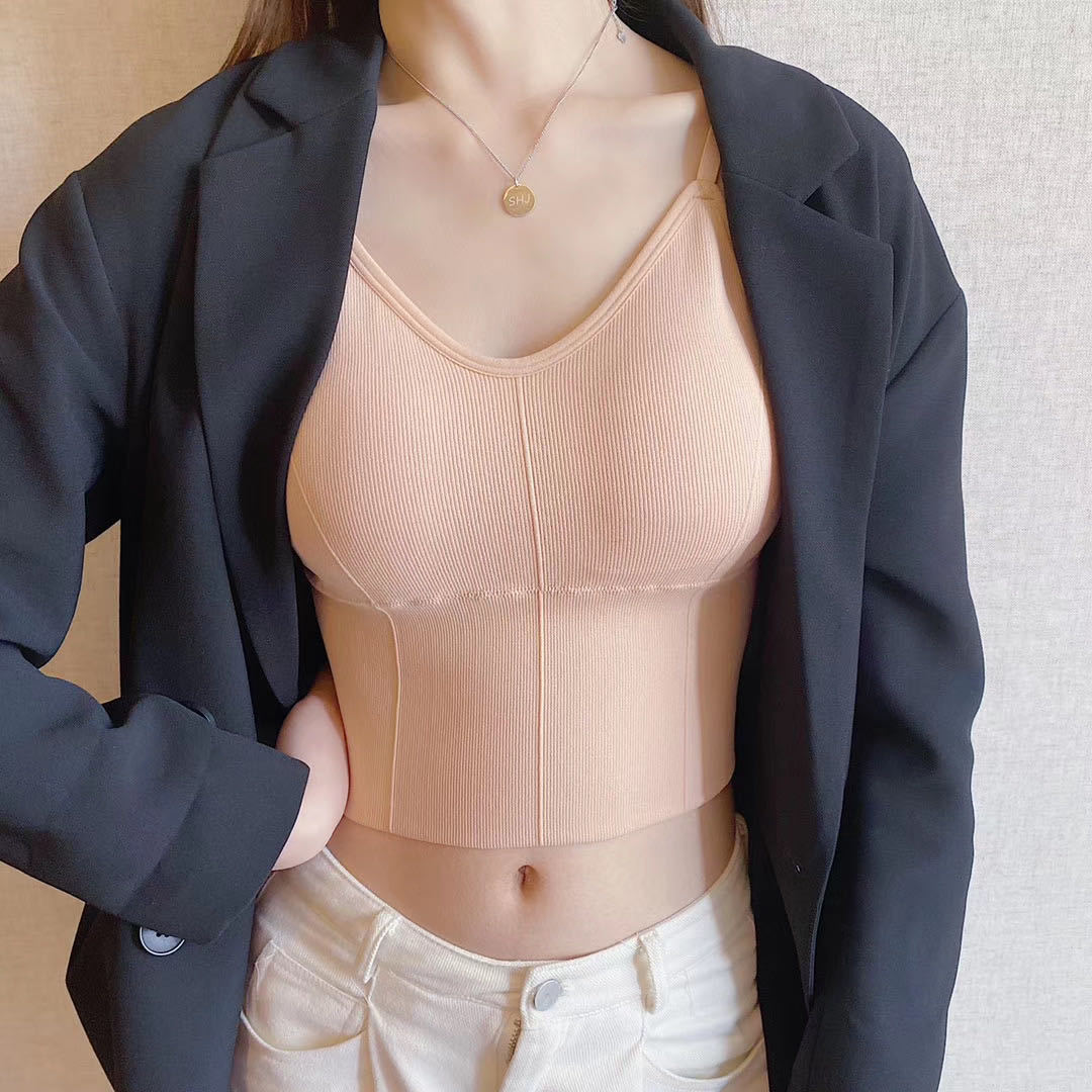 标题:卡卡同款加长版美背内衣女士运动吊带背心无缝裹胸聚拢无钢圈文胸