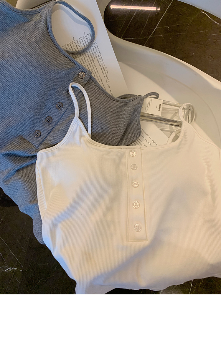 标题:带胸垫吊带女纽扣螺纹棉内搭外穿打底背心美背内衣文胸一体式上衣