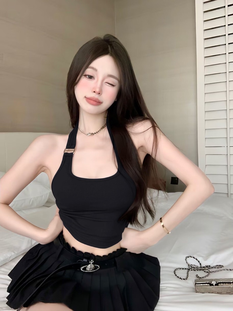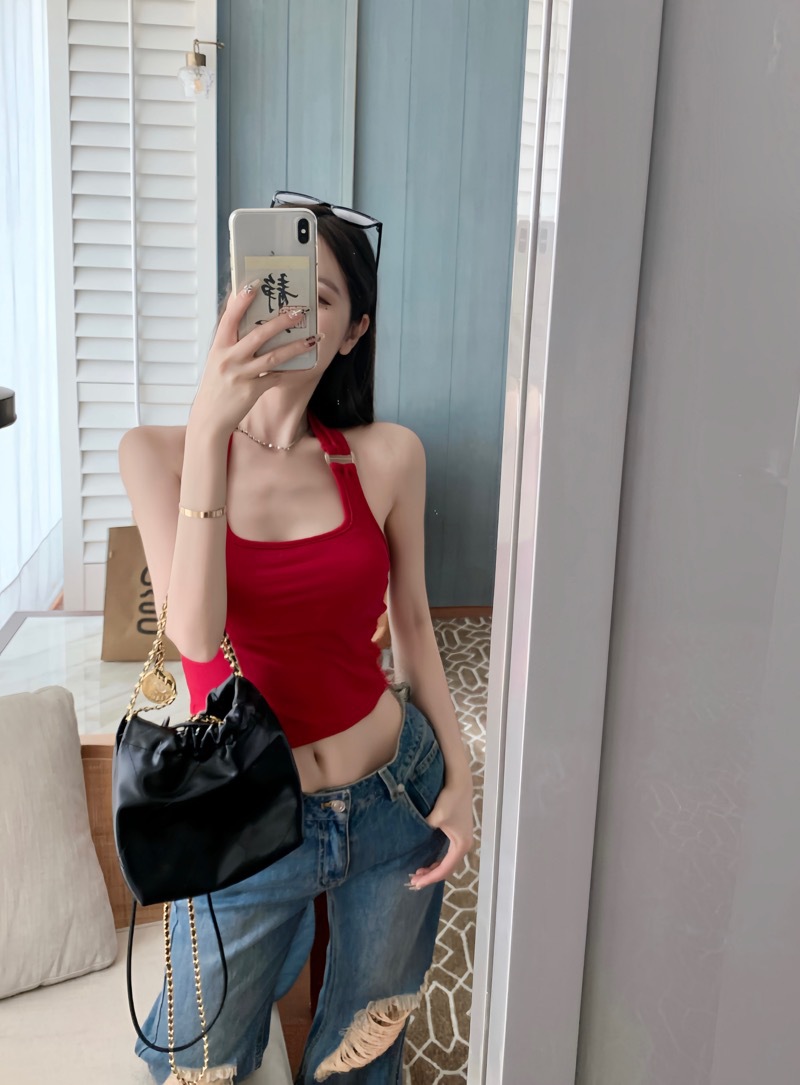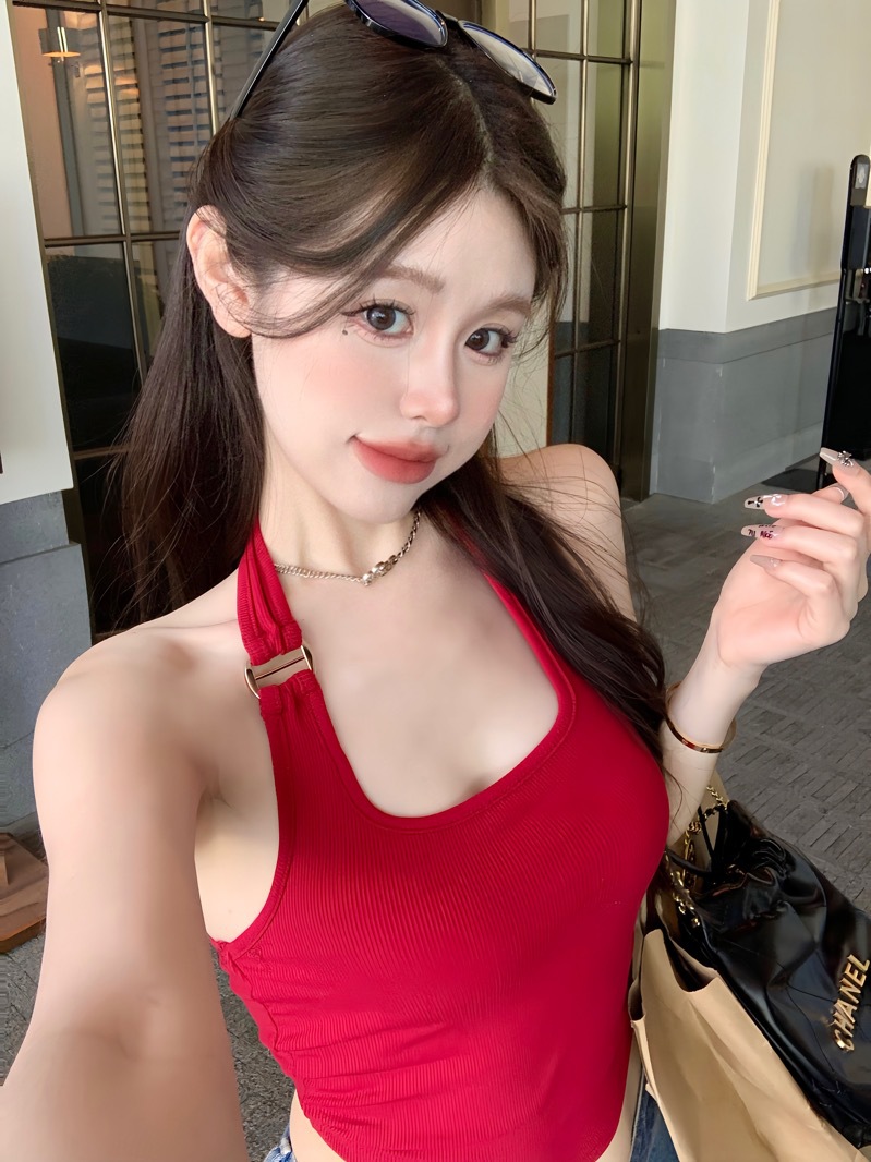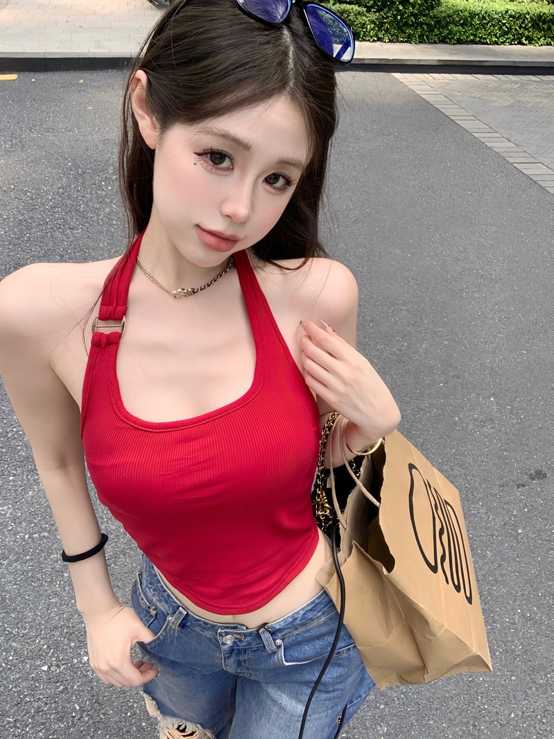 标题:性感红色挂脖小背心女夏季外穿短款无袖露背吊带辣妹紧身内搭上衣